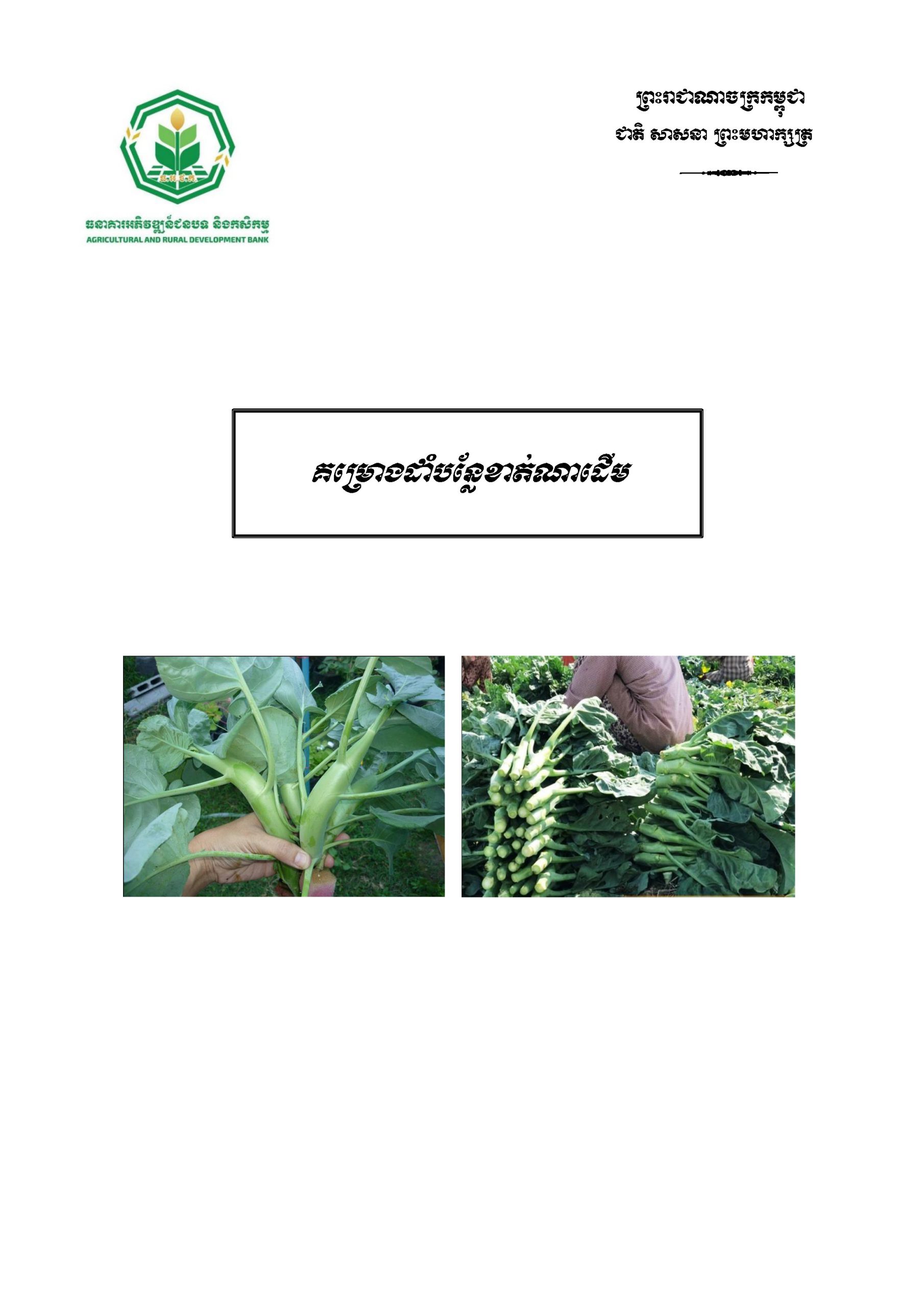 25 March 2022 គម្រោងដាំបន្លែខាត់ណាដើម Click on this to visit Khmer(PDF,384.32 KB) Post navigation Previous គម្រោងចិញ្ចឹមគោបំប៉នយកសាច់លក្ខណៈគ្រួសារចំនួន៤៣ក្បាលNext គម្រោងចិញ្ចឹមត្រីអណ្តែងក្នុងតង់