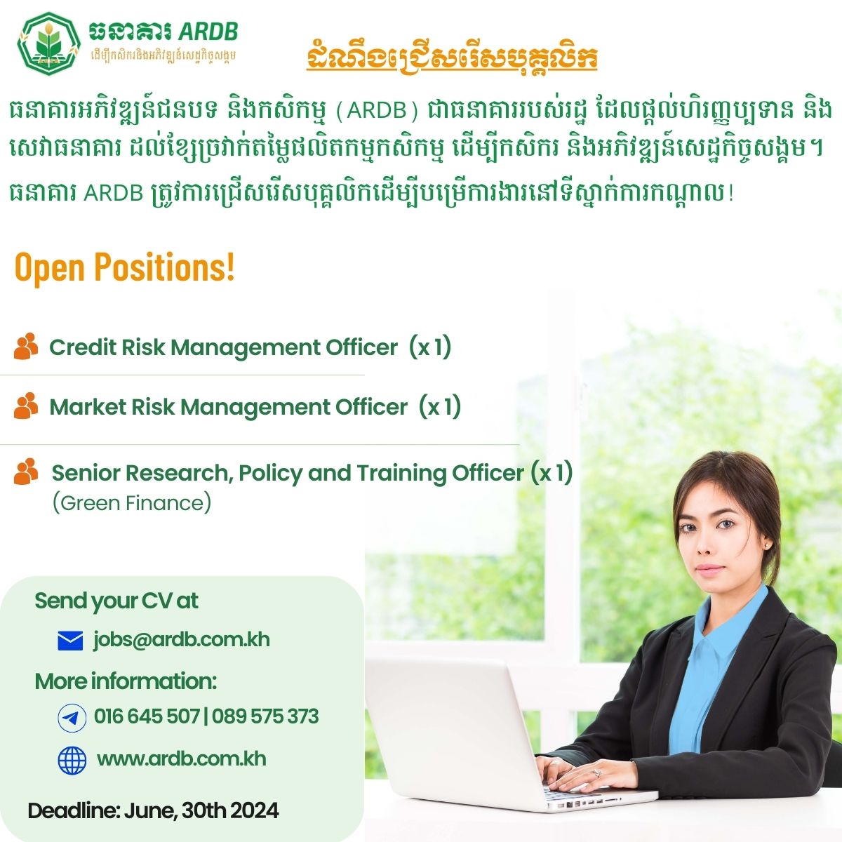 បេក្ខជនដែលមានចំណាប់អារម្មណ៍ សូមផ្ញើ CV មកតាមរយៈ jobs@ardb.com.kh ឬពិនិត្យមើលព័ត៌មានលម្អិត.