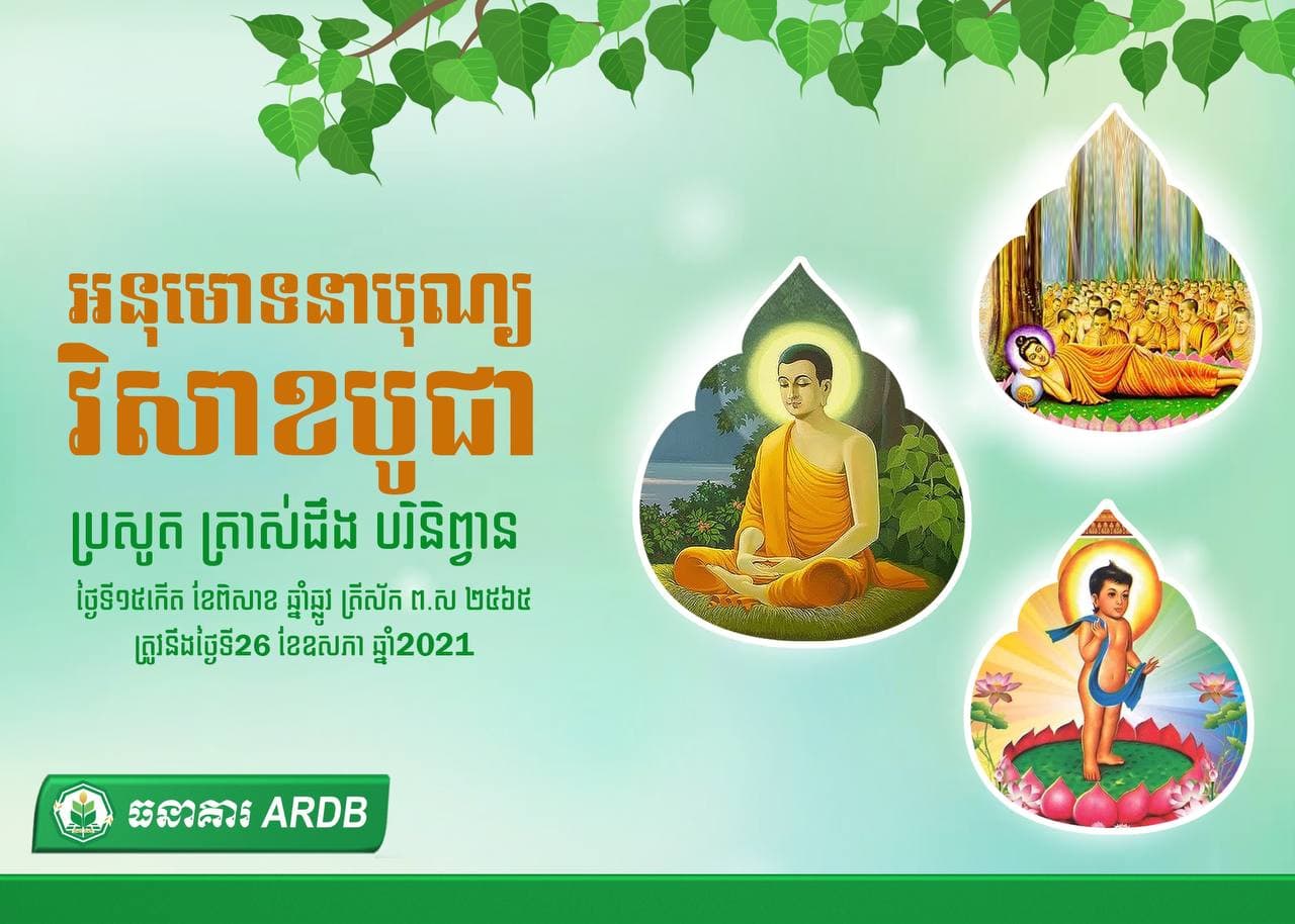 26 មេសា 2021 អនុមោទនាបុណ្យវិសាខបូជា ថ្ងៃទី២៦ ខែឧសភា ឆ្នាំ២០២១ Post navigation Previous អបអរសាទរឆ្នាំថ្មី ប្រពៃណីខ្មែរ ឆ្នាំឆ្លូវ ត្រីស័ក ព.ស ២៥៦៥Next ARDB Mobile App