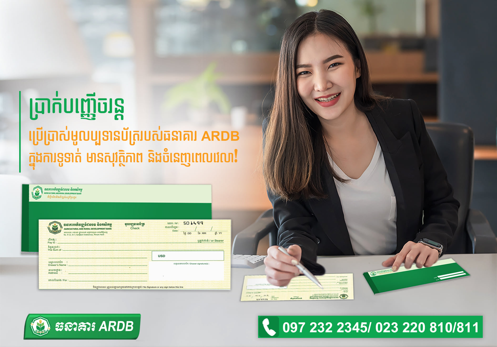 លោកអ្នកអាចទូទាត់សាច់ប្រាក់ដោយប្រើប្រាស់មូលប្បទានប័ត្រ មានសុវត្ថិភាពខ្ពស់ និងចំណេញពេលវេលា។
