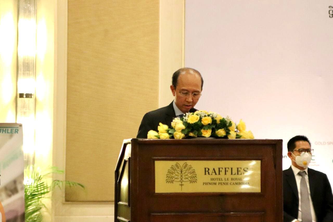 ភ្នំពេញ៖ ថ្ងៃពុធ ៧ រោច ខែមាឃ ឆ្នាំឆ្លូវ ត្រីស័ក ព.ស.២៥៦៥ ត្រូវនឹងថ្ងៃទី២៣ ខែកុម្ភៈ ឆ្នាំ២០២២ វេលាម៉ោង ២ រសៀល ឯកឧត្តមបណ្ឌិត កៅ ថាច ប្រតិភូរាជរដ្ឋាភិបាលទទួលបន្ទុកជា អគ្គនាយកធនាគារអភិវឌ្ឍន៍ជនបទ និងកសិកម្ម បានអញ្ជើញចូលរួម និងផ្តល់បទអន្តរាគមន៍គន្លឹះ អំពីឥណទានដល់វិស័យស្រូវ-អង្ករ ក្នុងសន្និបាតបូកសរុបការងារឆ្នាំ២០២១ និងទិសដៅឆ្នាំ២០២២ របស់សហព័ន្ធស្រូវអង្ករកម្ពុជា នៅសណ្ឋាគារ Raffles Hotel Le Royal Phnom Penh ក្រោមអធិបតីភាពដ៏ខ្ពង់ខ្ពស់ពីសំណាក់ ឯកឧត្តម ប៉ាន់ សូរសក្តិ រដ្ឋមន្ត្រីក្រសួងពាណិជ្ជកម្ម។