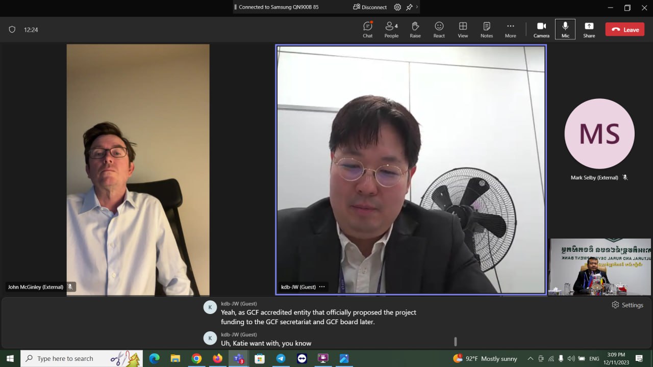 នាថ្ងៃទី១១ ខែធ្នូ ឆ្នាំ២០២៣ ឯកឧត្តមបណ្ឌិត កៅ ថាច ប្រតិភូរាជរដ្ឋាភិបាលទទួលបន្ទុកជាអគ្គនាយកធនាគារអភិវឌ្ឍន៍ជនបទ និងកសិកម្ម (ARDB) អមដោយសហការី បានទទួលជួបប្រជុំជាមួយតំណាងធនាគារ KDB (ដែលជាស្ថាប័នទទួលស្គាល់ដោយមូលនិធិអាកាសធាតុបៃតង, Accredited Entity) និងតំណាងក្រុមហ៊ុន Mekong Strategic Capital (MSC) ដើម្បីពិភាក្សាការងារជាជំហានបន្ទាប់ក្នុងក្របខ័ណ្ឌនៃការអនុវត្តគម្រោងហិរញ្ញប្បទានអាកាសធាតុនៅកម្ពុជា (Cambodian Climate Financing Facility, CCFF) ដែលគម្រោងនេះទទួលបានការគាំទ្រអនុវត្តដោយរាជរដ្ឋាភិបាលកម្ពុជា។