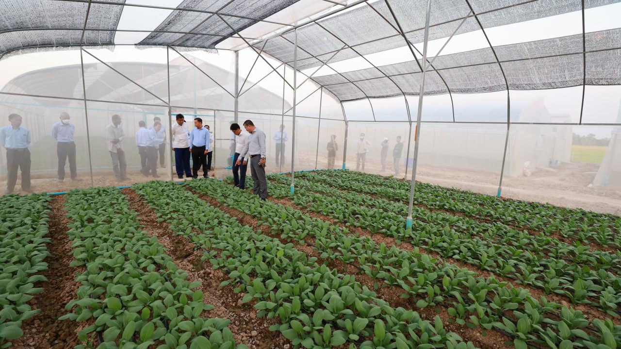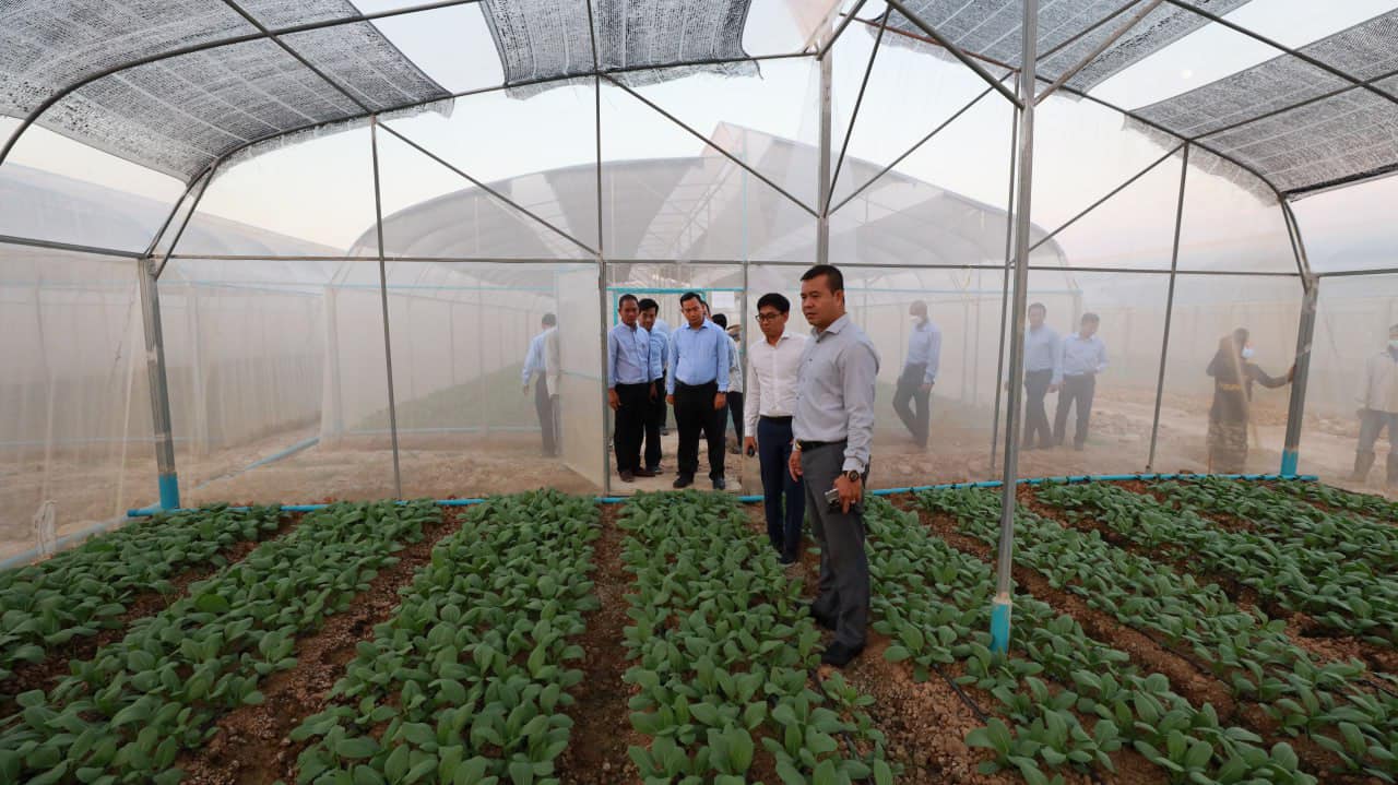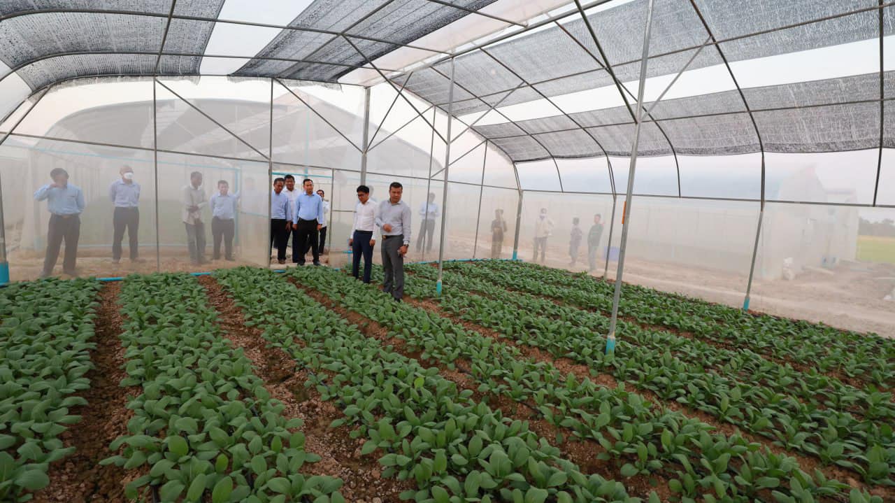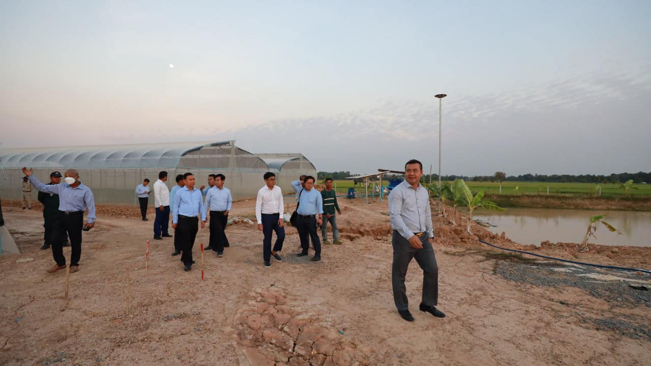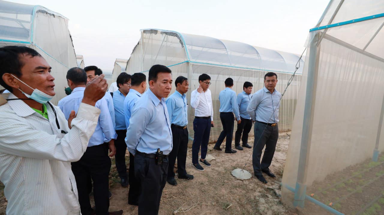 នាពេលរសៀល ថ្ងៃចន្ទ ទី២៥ ខែធ្នូ ឆ្នាំ២០២៣ ឯកឧត្តមបណ្ឌិត កៅ ថាច ប្រតិភូរាជរដ្ឋាភិបាលទទួលបន្ទុកជាអគ្គនាយក ធនាគារអភិវឌ្ឍន៍ជនបទ និងកសិកម្ម បានដឹកនាំសហការីចុះត្រួតពិនិត្យការអនុវត្តគម្រោងកសិកម្មវ័យឆ្លាត ទាក់ទងនឹងការធ្វេីផ្ទះសំណាញ់សម្រាប់ដាំបន្លែសុវត្ថិភាព នៅឃុំជ្រៃធំ ស្រុកខ្សាច់កណ្តាល ខេត្តកណ្តាល។
