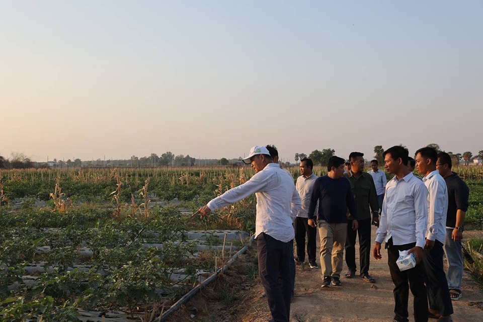 បន្ទាប់មក ឯកឧត្តមបណ្ឌិត និងសហការី បានអញ្ជើញចុះពិនិត្យកសិដ្ឋានដាំដុះបន្លែចំរុះ និងម្ទេស ស្ថិតនៅក្នុងភូមិសាស្ត្រស្រុកពញាឮ ខេត្តកណ្តាលផងដែរ។
