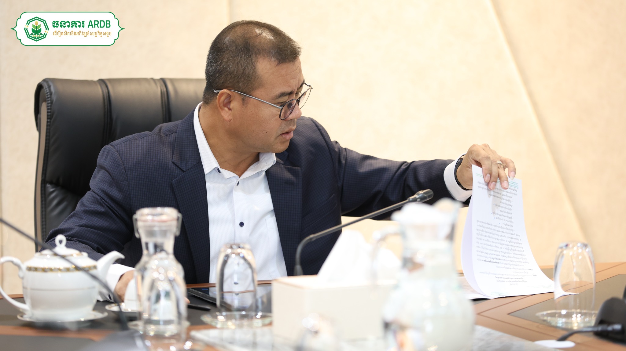 ធនាគារអភិវឌ្ឍន៍ជនបទ និងកសិកម្ម (ARDB) បានរៀបចំកិច្ចប្រជុំថ្នាក់ដឹកនាំដើម្បីពិនិត្យ និងពិភាក្សាពី៖ វឌ្ឍនភាពការងារប្រចាំសប្តាហ៍ និងទិសដៅការងារបន្ទាប់ របស់ ARDB និងរបៀបវារៈផ្សេងៗ ។