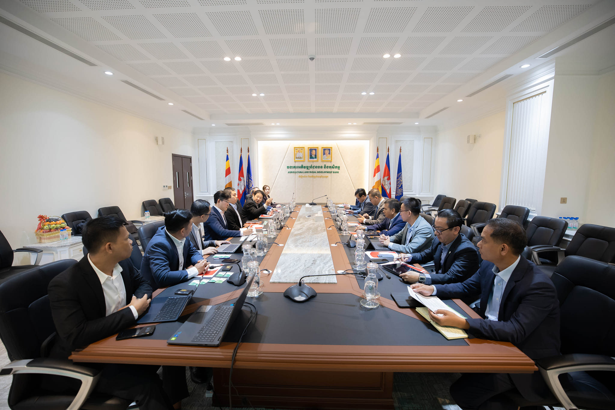 អាគារការិយាល័យកណ្ដាលធនាគារ ARDB: នាព្រឹកថ្ងៃអង្គារ ១រោច ខែបុស្ស ឆ្នាំរោង ឆស័ក ពុទ្ធសករាជ ២៥៦៨ ត្រូវនឹងថ្ងៃទី១៤ ខែមករា ឆ្នាំ២០២៥ ឯកឧត្ដមបណ្ឌិត កៅ ថាច ប្រតិភូរាជរដ្ឋាភិបាលទទួលបន្ទុកជាអគ្គនាយកធនាគារអភិវឌ្ឍន៍ជនបទ និងកសិកម្ម (ARDB) រួមទាំងសហការី បានអនុញ្ញាតឱ្យគណៈគ្រប់គ្រងជាន់ខ្ពស់នៃធនាគារ Mitsubishi UFJ Financial Group Bank Ltd. (MUFG Bank), Ltd. និងធនាគារ ហត្ថា ម.ក ចូលជួបពិភាក្សាការងារលើគម្រោង Export Credit Agency (ECA) និង គម្រោងផ្សេងៗទៀត របស់ធនាគារ MUFG និងធនាគារហត្ថា ម.ក ជូនថ្នាក់ដឹកនាំធនាគារ ARDB។ កិច្ចពិភាក្សានេះមានគោលបំណងចែករំលែកបទពិសោធន៍និងព័ត៌មានពាក់ព័ន្ធនឹងប្រតិបត្តិការធនាគារទាំងពីរ ព្រមទាំងការសិក្សាលើកិច្ចសហប្រតិបត្តិការក្នុងការប្រើប្រាស់គម្រោង ECA ក្នុងវិស័យកសិកម្ម និងគម្រោងពាក់ព័ន្ធផ្សេងៗទៀតនៅកម្ពុជា។