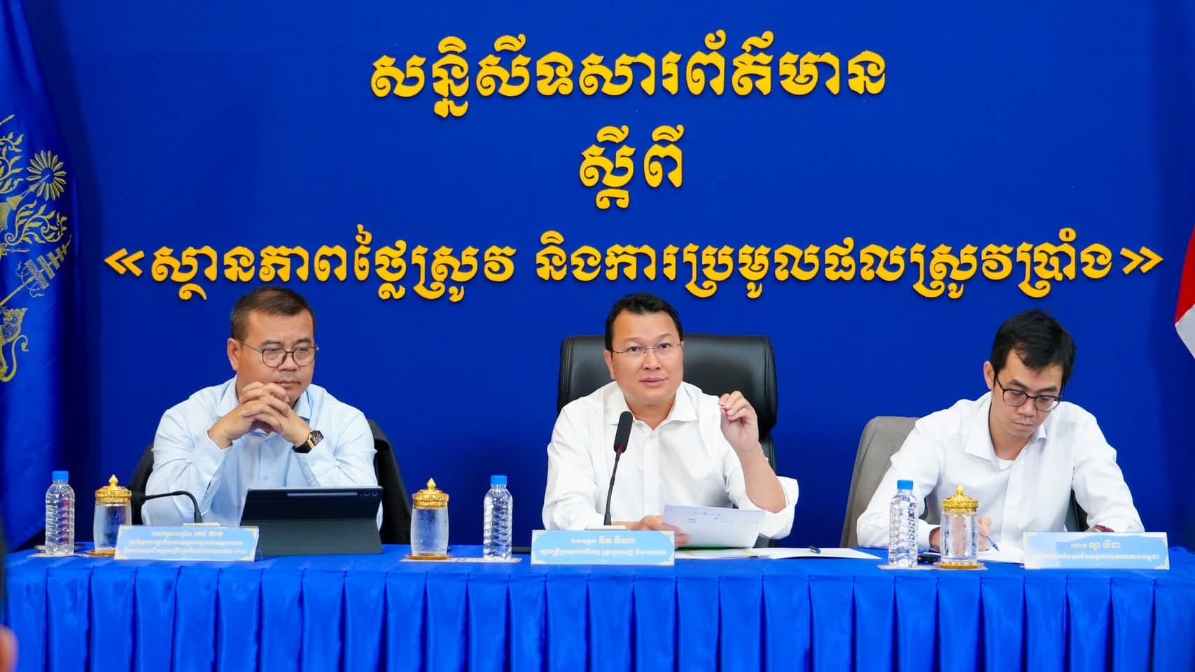 ឯកឧត្តមបណ្ឌិត កៅ ថាច និងលោក ណូ លីដា បានអញ្ជើញអម ឯកឧត្តម ឌិត ទីណា ជាវាគ្មិន ក្នុងសន្និសីទសារព័ត៌មាន ស្តីពី ស្ថានភាពថ្លៃស្រូវ និងការប្រមូលផលស្រូវប្រាំង