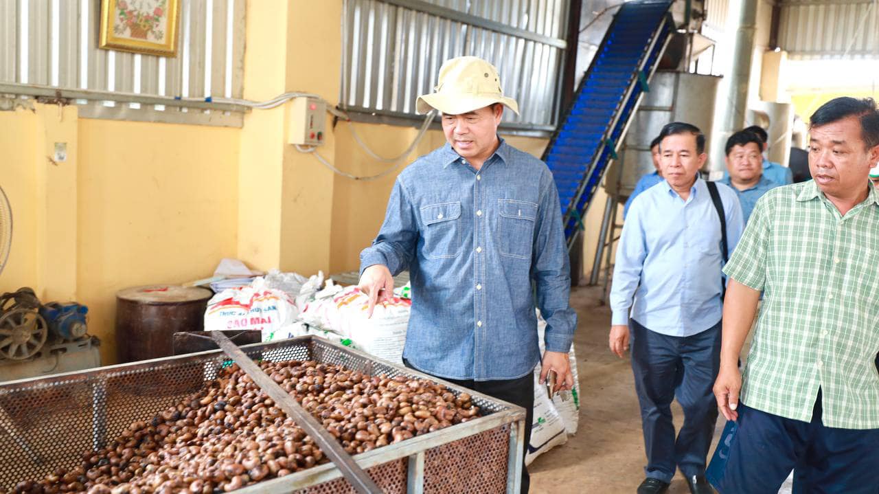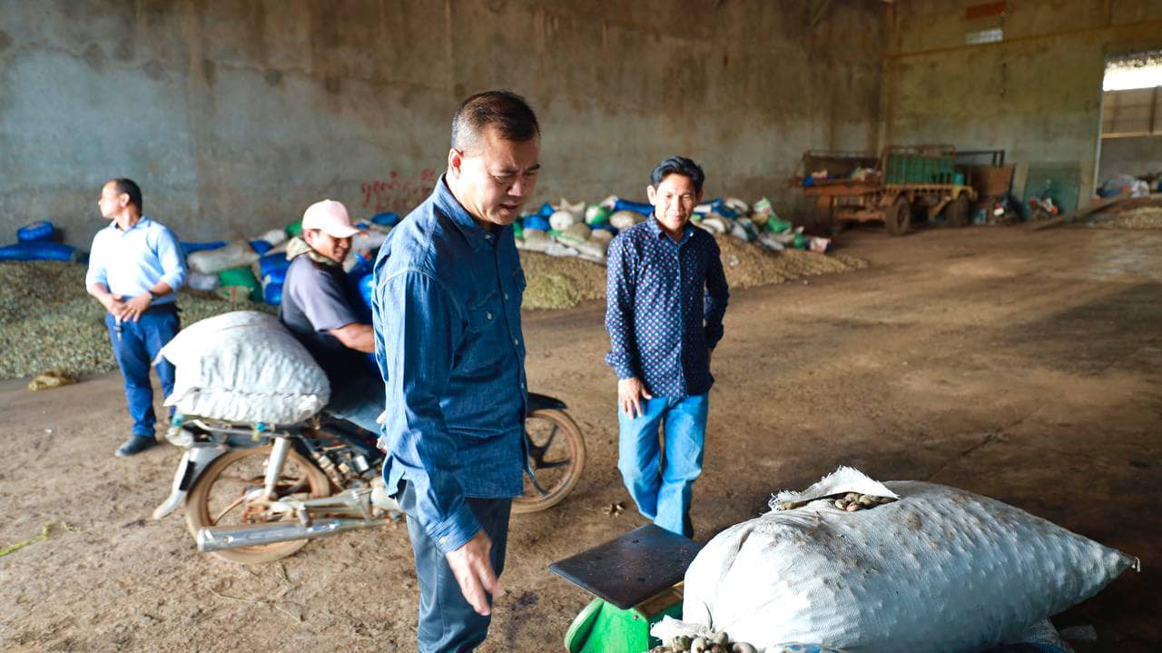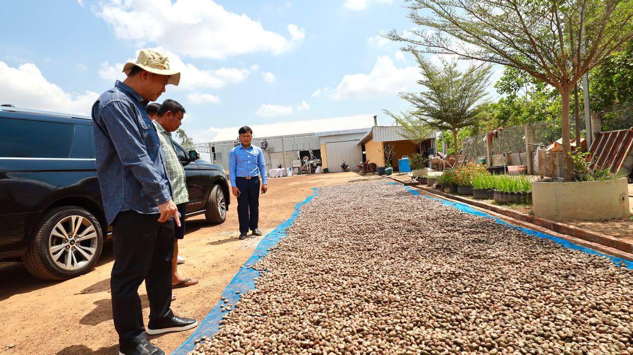 ឯកឧត្តមបណ្ឌិត កៅ ថាច និងសហការីបានអញ្ជើញពិនិត្យមើលតម្លៃគ្រប់ស្វាយចន្ទីរបស់កសិករនៅតាមសមាគមក្នុងខេត្តកំពង់ធំ និងខេត្តព្រះវិហារ