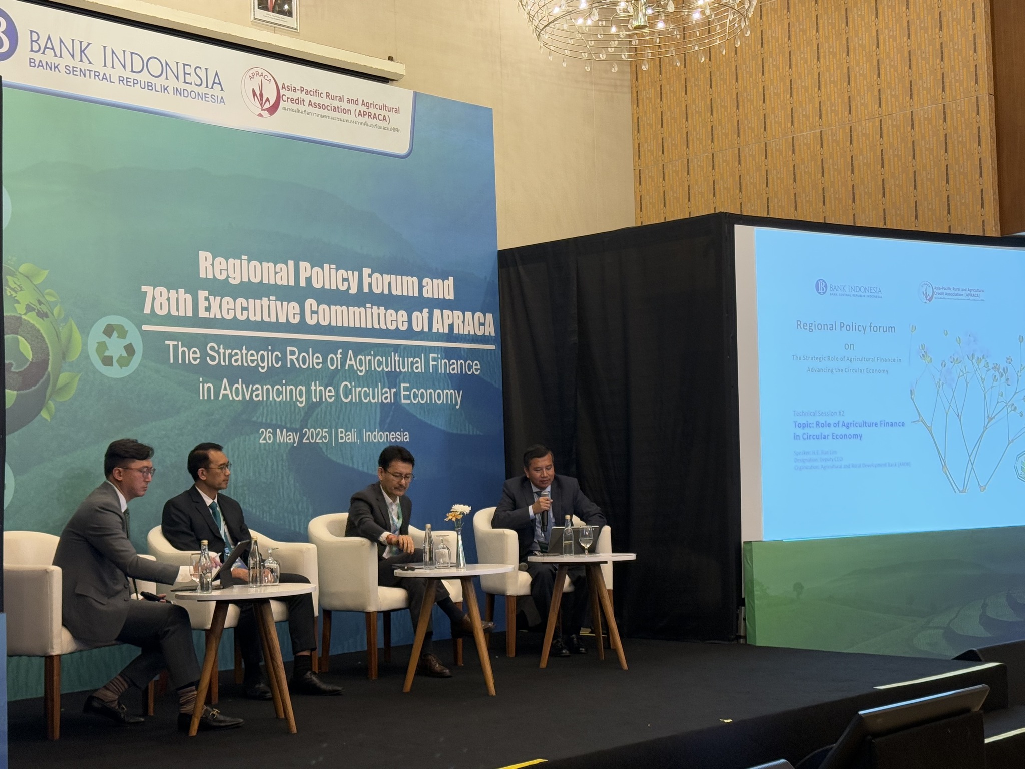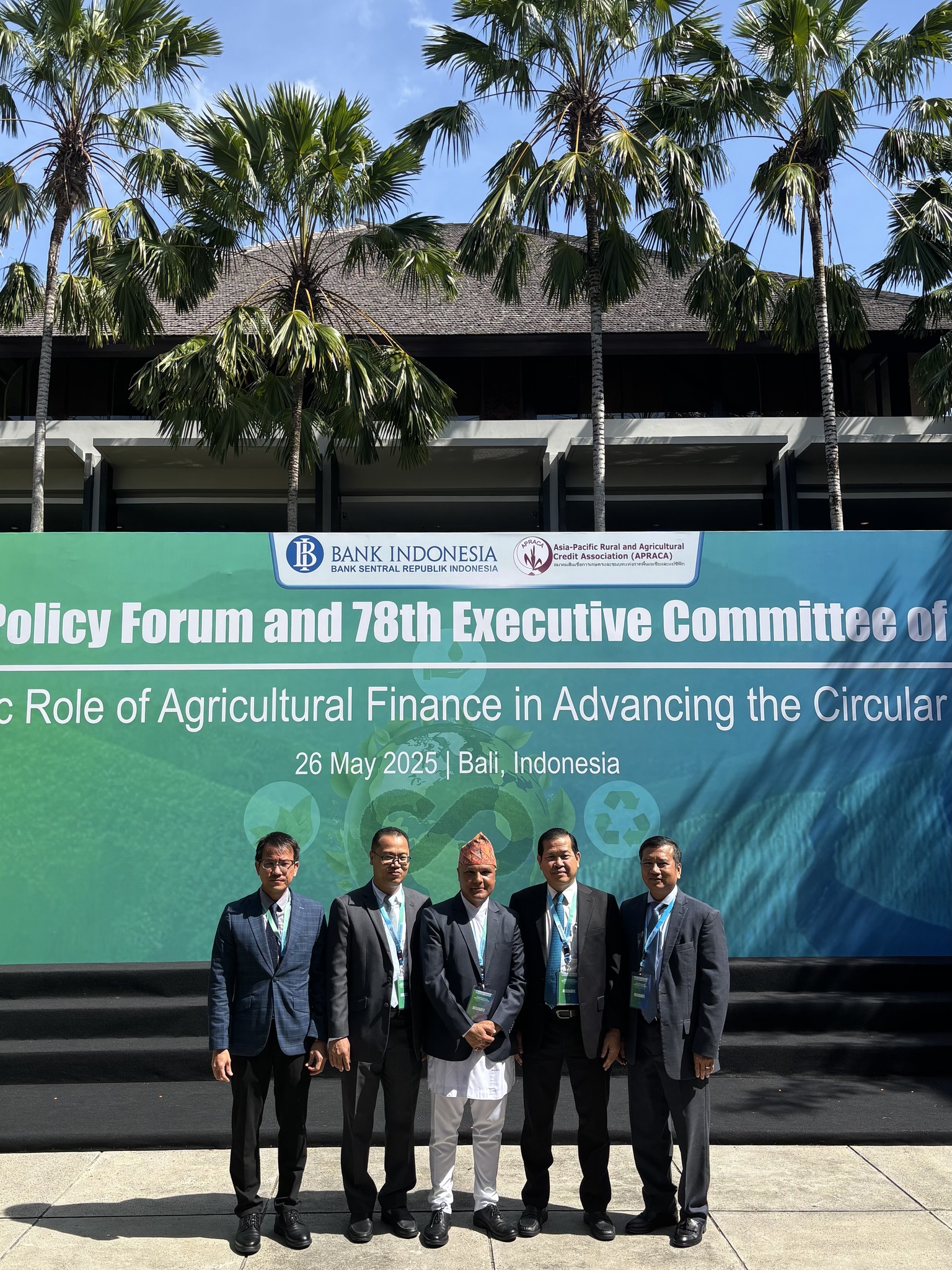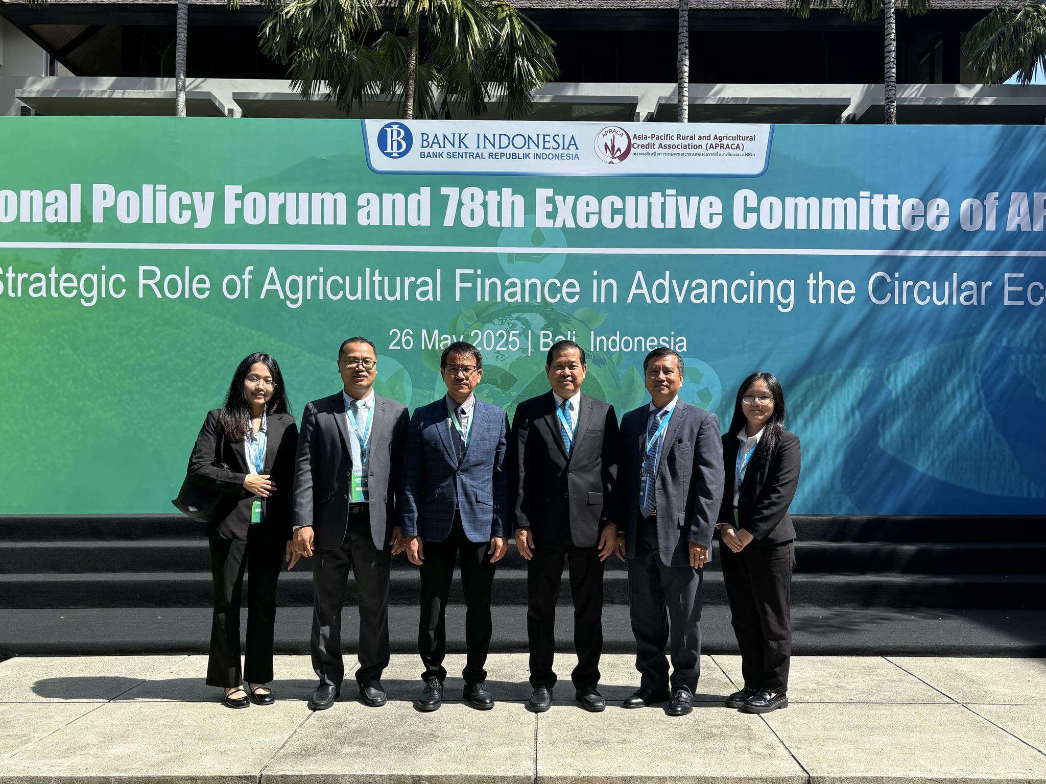 កោះបាលី-ប្រទេសឥណ្ឌូនេស៊ី៖ នាព្រឹកថ្ងៃចន្ទ ទី២៦ ខែឧសភា ឆ្នាំ២០២៥, ដោយទទួលបានការអនុញ្ញាតដ៏ខ្ពង់ខ្ពស់ពី ឯកឧត្តមបណ្ឌិត កៅ ថាច ប្រតិភូរាជរដ្ឋាភិបាលទទួលបន្ទុកជាអគ្គនាយកធនាគារអភិវឌ្ឍន៍ជនបទ និងកសិកម្ម (ARDB), ឯកឧត្តម បាន លឹម អគ្គនាយករង អមដោយប្រតិភូធនាគារ ARDB បានចូលរួមក្នុងវេទិកាគោលនយោបាយថ្នាក់តំបន់របស់សមាគមឥណទានកសិកម្ម និងជនបទ អាស៊ី-ប៉ាស៊ីហ្វិក (APRACA Regional Policy Forum) ក្រោមមូលបទ “តួនាទីហិរញ្ញប្បទានកសិកម្មក្នុងការអភិវឌ្ឍសេដ្ឋកិច្ចចក្រា” នៅកោះបាលី នៃប្រទេសឥណ្ឌូនេស៊ី។