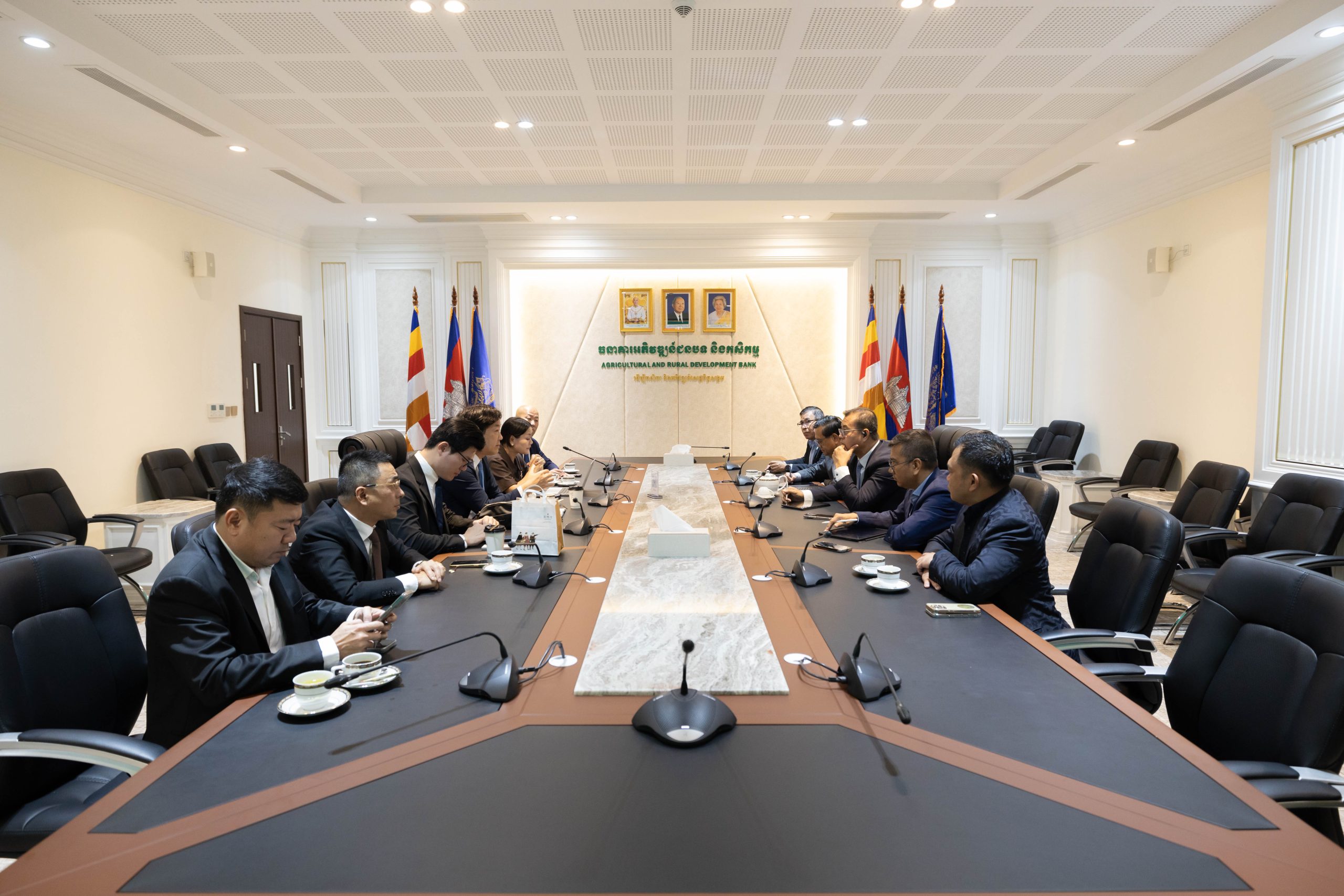 ទីស្នាក់ការកណ្តាលរបស់ធនាគារអភិវឌ្ឍន៍ជនបទ និងកសិកម្ម (ARDB)៖ នាព្រឹកថ្ងៃ សុក្រ ៣រោច ខែជេស្ឋ ឆ្នាំម្សាញ់ សប្តស័ក ពុទ្ធសករាជ ២៥៦៩ ត្រូវនឹងទី១៣ ខែមិថុនា ឆ្នាំ២០២៥, ឯកឧត្តមបណ្ឌិត កៅ ថាច ប្រតិភូរាជរដ្ឋាភិបាលទទួលបន្ទុកជាអគ្គនាយកធនាគារអភិវឌ្ឍន៍ជនបទ និងកសិកម្ម (ARDB) រួមទាំងសហការី បានអនុញ្ញាតឱ្យគណៈប្រតិភូ និងក្រុមហ៊ុនជប៉ុន ចូលជួបសម្ដែងការគួរសម និងពិភាក្សាលើ កិច្ចសហប្រតិបត្តិការរវាងធនាគារ ARDB និងក្រុមហ៊ុនជប៉ុន ដែលបំណងចង់វិនិយោគលើវិស័យកសិកម្ម ដើម្បីជំរុញការវិនិយោគលើវិស័យកសិកម្ម និងការអភិវឌ្ឍសេដ្ឋកិច្ចជនបទ នៅកម្ពុជា។