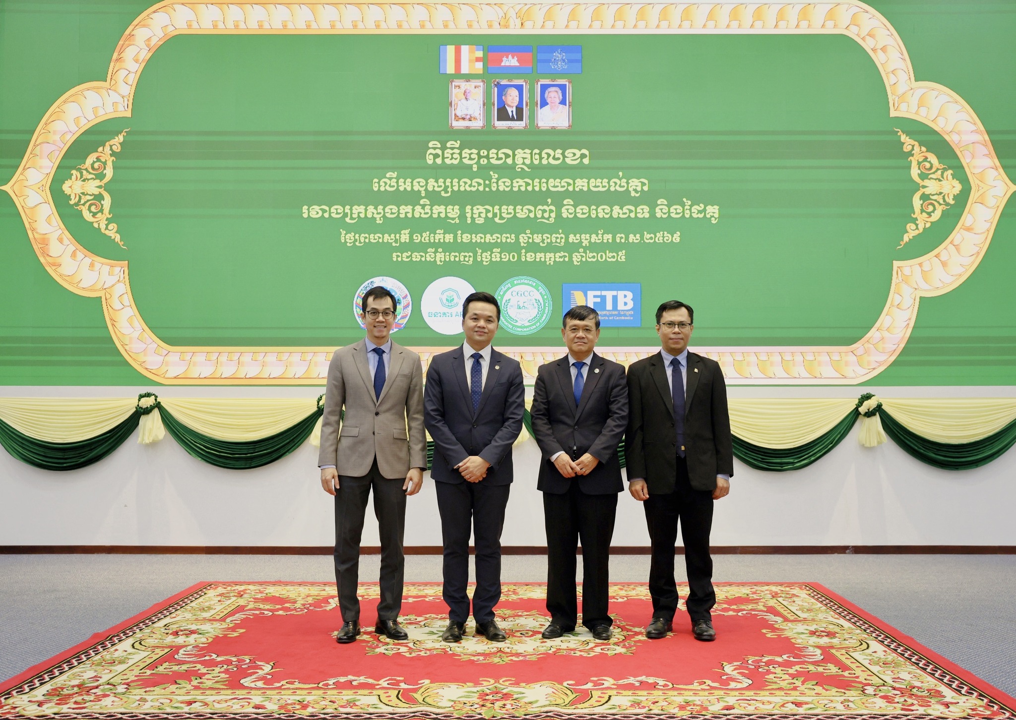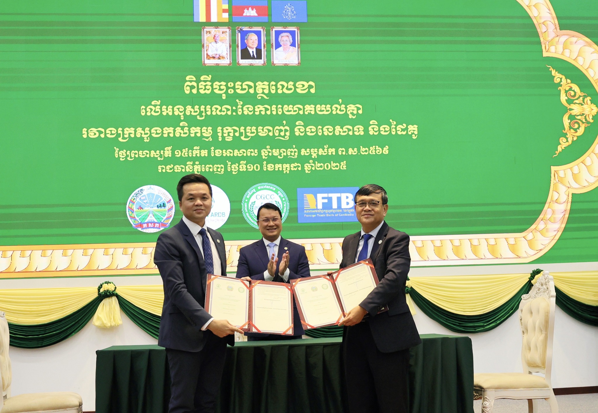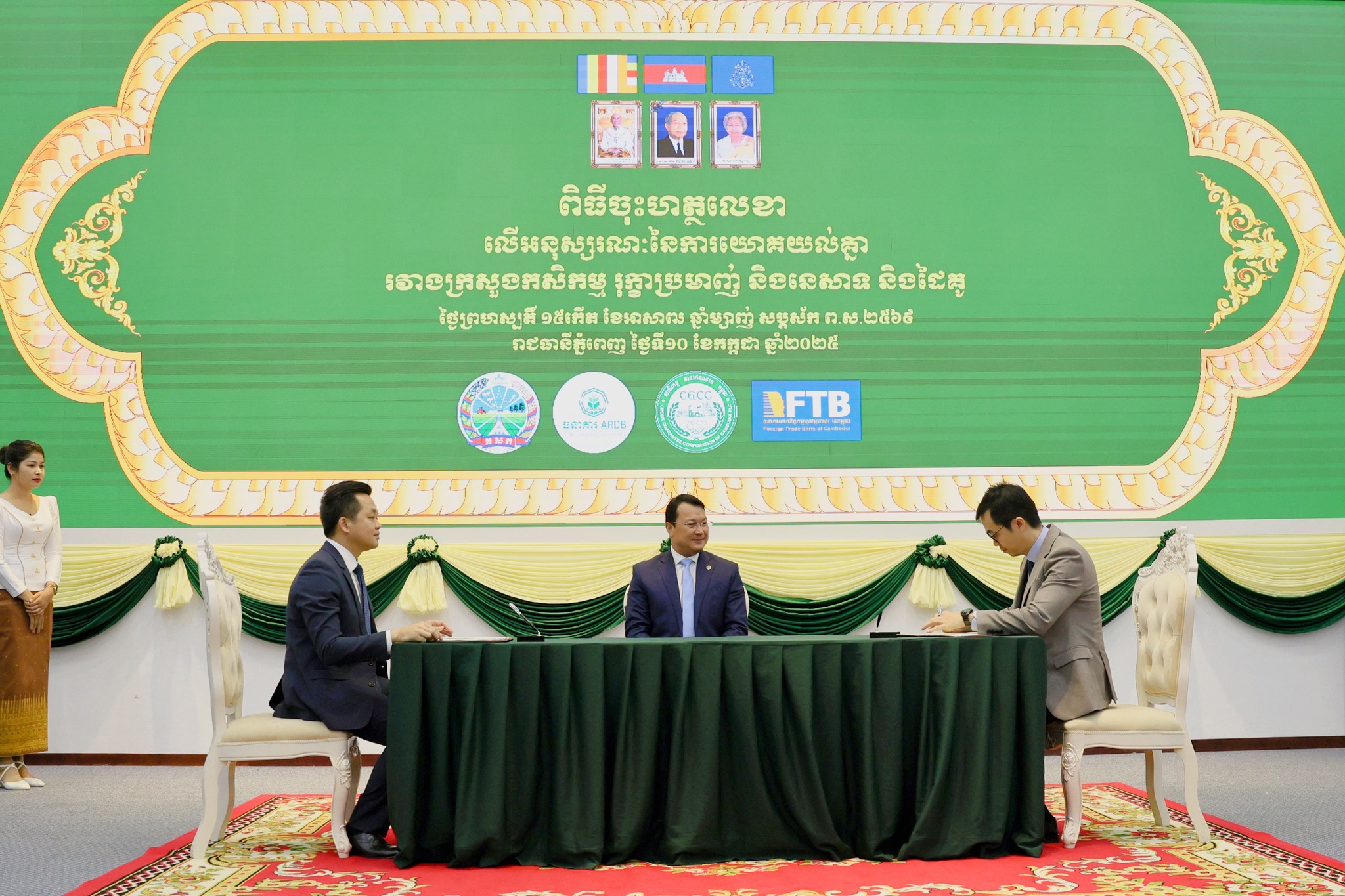 រាជធានីភ្នំពេញ៖ នៅទីស្តីការក្រសួងកសិកម្ម រុក្ខាប្រមាញ់ និងនេសាទ, នារសៀលថ្ងៃព្រហស្បតិ៍ ទី១០ ខែកក្កដា ឆ្នាំ២០២៥, ដោយទទួលបានការអនុញ្ញាតដ៏ខ្ពង់ខ្ពស់ពីឯកឧត្តមបណ្ឌិត កៅ ថាច ប្រតិភូរាជរដ្ឋាភិបាលទទួលបន្ទុកជាអគ្គនាយកធនាគារអភិវឌ្ឍន៍ជន និងកសិកម្ម (ARDB), ឯកឧត្តម ចាន់ សីហា អគ្គនាយករង និងសហការី បានអញ្ជើញចូលរួមក្នុងពិធីចុះអនុស្សរណៈនៃការយោគយល់គ្នា (MOU) រវាងក្រសួងកសិកម្ម រុក្ខាប្រមាញ់ និងនេសាទ, ធនាគារអភិវឌ្ឍន៍ជនបទ និងកសិកម្ម (ARDB), និងសាជីវកម្មធានាឥណទានកម្ពុជា (CGCC) ក្រោមអធិបតីដ៏ខ្ពង់ខ្ពស់ ឯកឧត្តម ឌិត ទីណា រដ្ឋមន្ត្រីក្រសួងកសិកម្ម រុក្ខាប្រមាញ់ និងនេសាទ និងមានការចូលរួមពី រដ្ឋលេខាធិការ, អនុរដ្ឋលេខាធិការ, អគ្គនាយកសាជីវកម្មឥណទានកម្ពុជា, ថ្នាក់ដឹកនាំជាន់ខ្ពស់ធនាគារពាណិជ្ជកម្មក្រៅប្រទេសនៃកម្ពុជា, ព្រមទាំងថ្នាក់ដឹកជាច្រើនរូបទៀតផងដែរ។