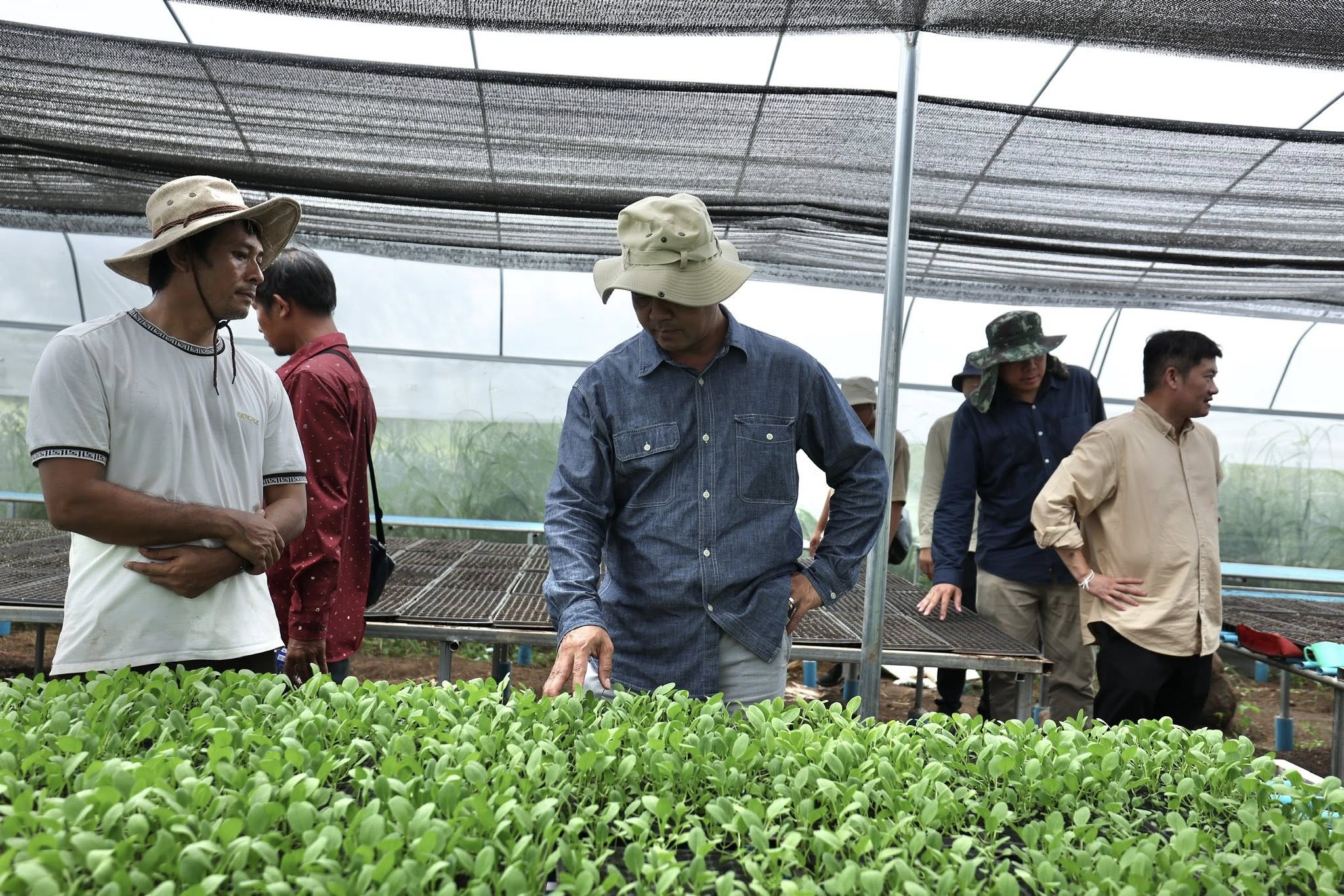 ឯកឧត្តមបណ្ឌិត កៅ ថាច និងសហការី អញ្ជើញចុះសាកសួរសុខទុក្ខកសិករដាំដុះបន្លែផ្ទះសំណាញ់ ១៣គ្រួសារ ស្ថិតក្នុងគម្រោងកាត់បន្ថយភាពក្រីក្រ របស់ធនាគារ ARDB