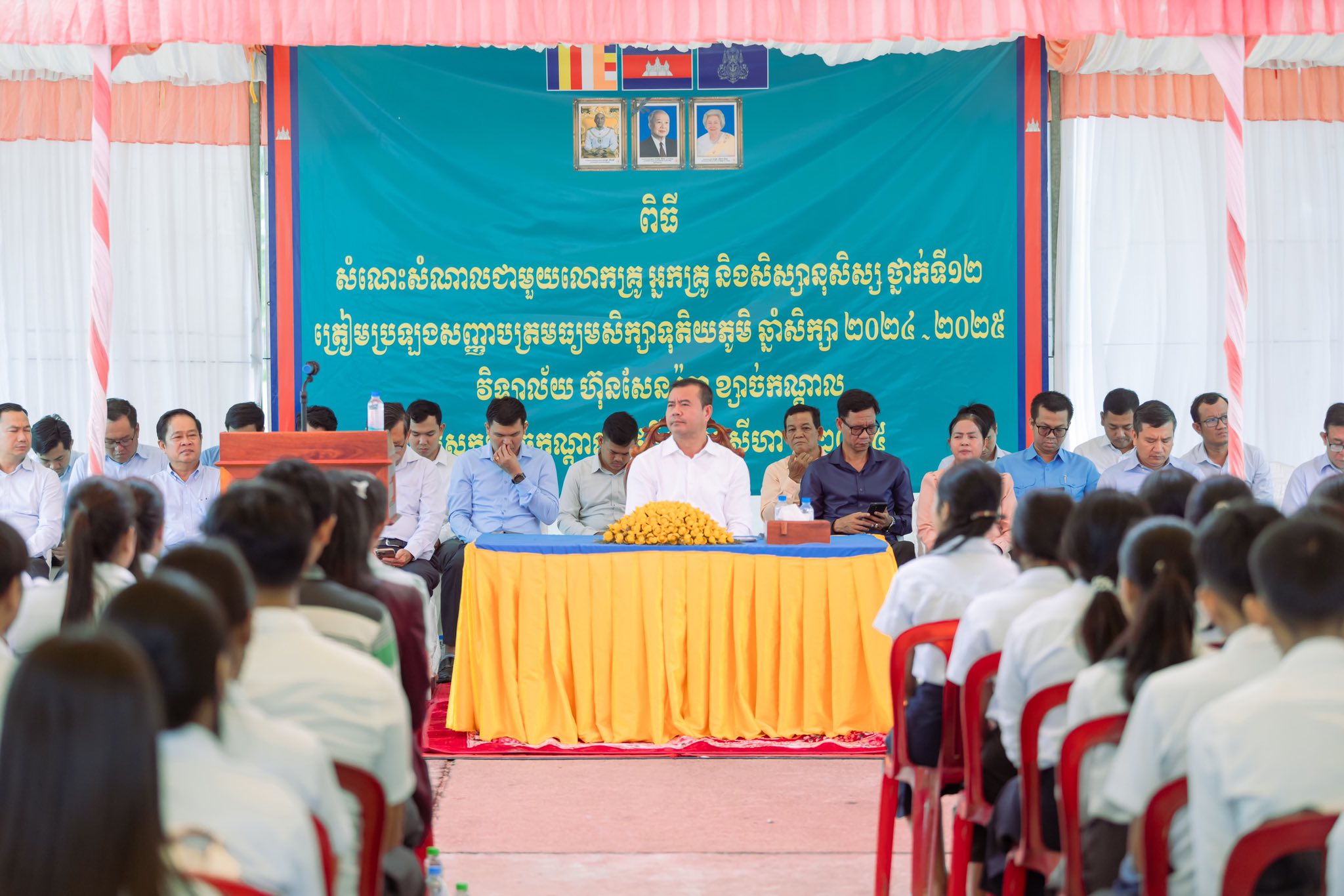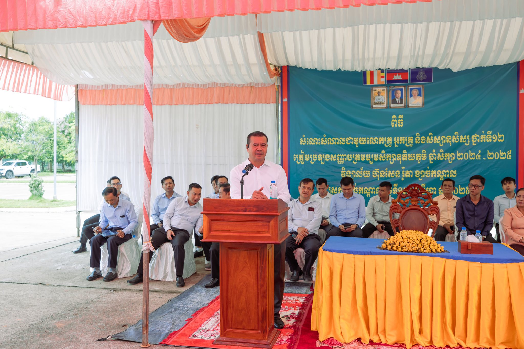 ឯកឧត្តមបណ្ឌិតប្រតិភូបានរំឭកជូនថា រាជរដ្ឋាភិបាល អាណត្តិទី៧ ក្រោមការដឹកនាំដ៏ខ្ពង់ខ្ពស់ប្រកបដោយភាពស្វាហាប់ គតិបណ្ឌិតឈ្លាសវៃ និងចក្ខុវិស័យវែងឆ្ងាយរបស់សម្តេចធិបតី ហ៊ុន ម៉ាណែត នាយករដ្ឋមន្រ្តី បន្តធ្វើកំណែទម្រង់វិស័យអប់រំ ក្នុងគោលដៅលើកកម្ពស់គុណភាពឱ្យកាន់តែល្អប្រសើរឡើងថែមទៀត ពិសេសការបង្រៀន និងការរៀនរបស់សិស្សានុសិស្សធ្វើយ៉ាណាឱ្យការប្រឡងសញ្ញាបត្រមធ្យមសិក្សាទុតិយភូមិជាប់ឱ្យបានច្រើនតាមពាក្យស្លោក “ អ្នកចេះគឺជាប់ ”។