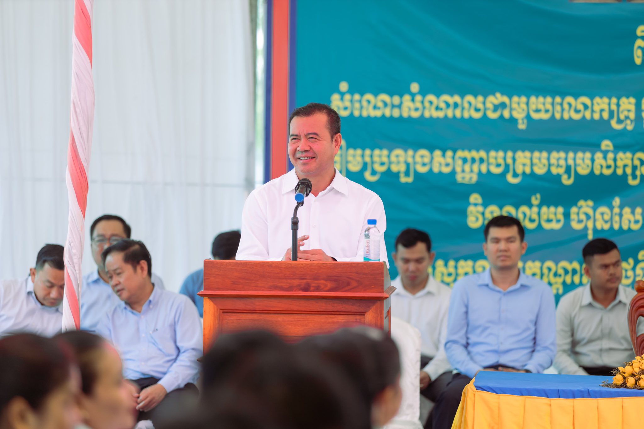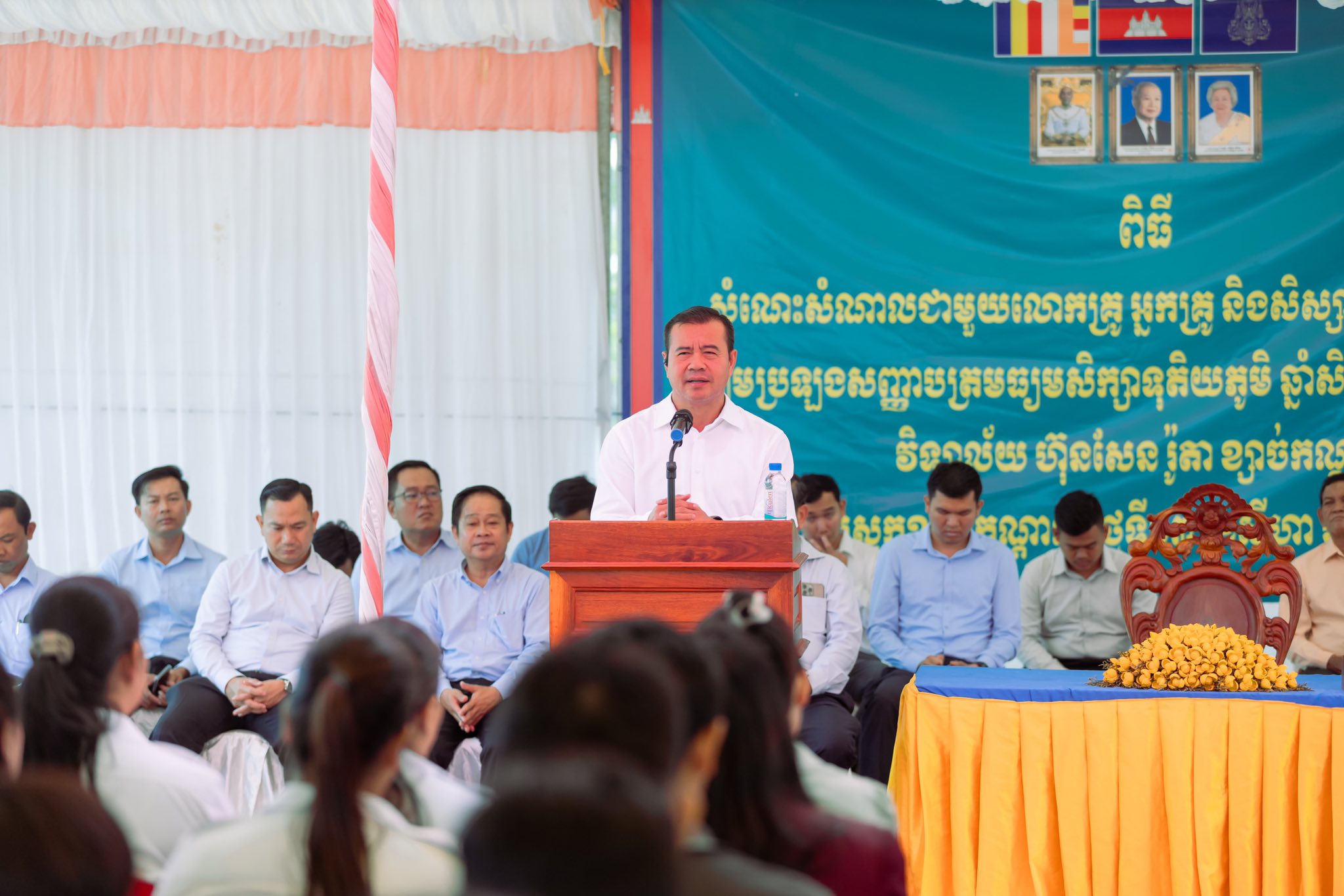 វិទ្យាល័យ ហ៊ុន សែន ខ្សាច់កណ្តាល,ខេត្តកណ្តាល៖ ៖ ឯកឧត្តមបណ្ឌិត កៅ ថាច ប្រតិភូរាជរដ្ឋាភិបាលទទួលបន្ទុកជាអគ្គនាយកនៃធនាគារអភិវឌ្ឍន៍ជនបទ នៅថ្ងៃទី១៣ ខែសីហា ឆ្នាំ២០២៥នេះបានក្រើនរំឭកដល់ប្អូនៗសិស្សានុសិស្ស ដែលកំពុងតែត្រៀមប្រឡងសញ្ញាបត្រមធ្យមសិក្សាទុតិយភូមិ ឆ្នាំសិក្សា២០២៤-២០២៥ គឺត្រូវខិតខំកសាងសមត្ថភាព និងជំនាញឲ្យកាន់តែខ្លាំងថែមទៀត ដើម្បីចូលរួមចំណែកក្នុងការកសាងជាតិជាមួយរាជរដ្ឋាភិបាល។