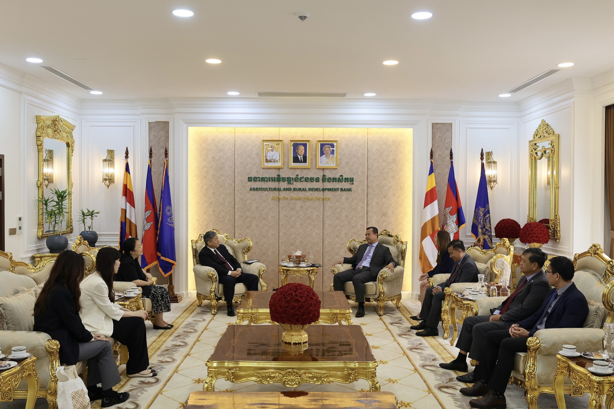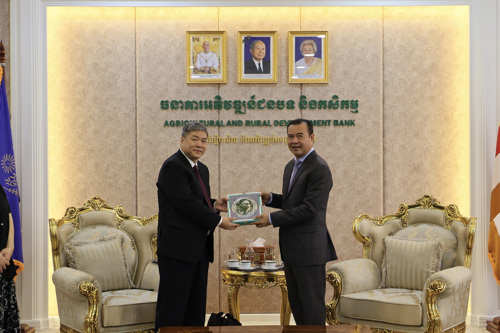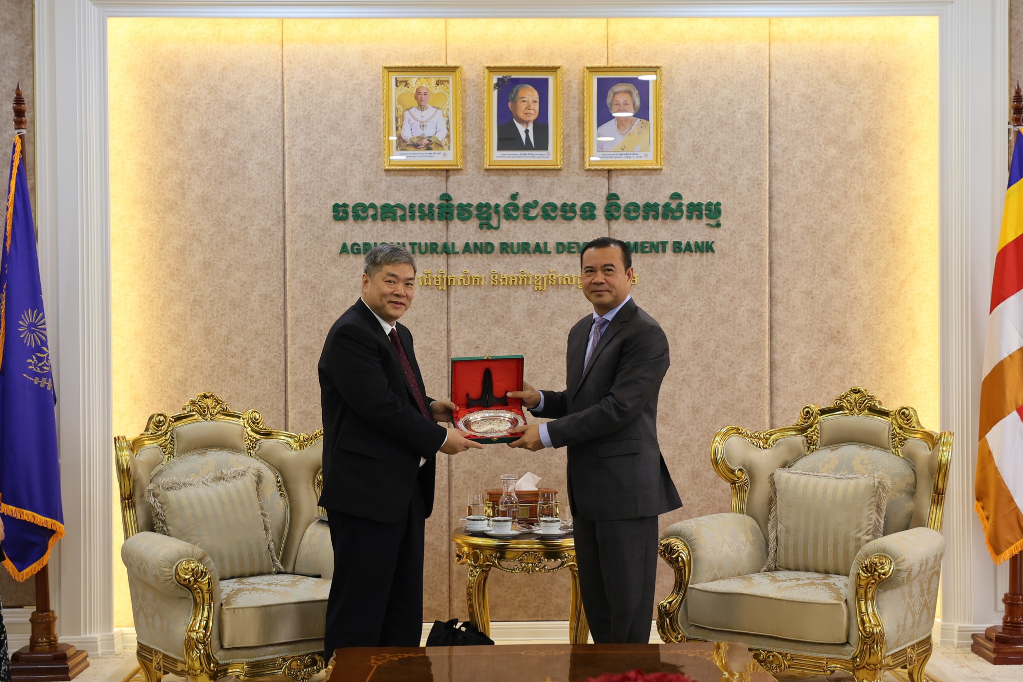 នាព្រឹកថ្ងៃអង្គារ ៥កើត ខែមិគសិរ ឆ្នាំម្សាញ់ សប្តស័ក ព.ស. ២៥៦៩ ត្រូវនឹងថ្ងៃទី២៥ ខែវិច្ឆិកា ឆ្នាំ២០២៥ នៅទីស្នាក់ការកណ្តាលនៃធនាគារអភិវឌ្ឍន៍ជនបទ និងកសិកម្ម (ARDB) ឯកឧត្តមបណ្ឌិត កៅ ថាច ប្រតិភូរាជរដ្ឋាភិបាលទទួលបន្ទុកជាអគ្គនាយកធនាគារ ARDB បានទទួលជួបពិភាក្សាការងារជាមួយលោក LIU Junbiao ប្រធានការិយាល័យ នៃនាយកដ្ឋានស្តារជនបទ និងសហការី ក្រោមក្របខណ្ឌអនុវត្តអនុស្សរណៈយោគយល់រវាងធនាគារទាំងពីរ។
