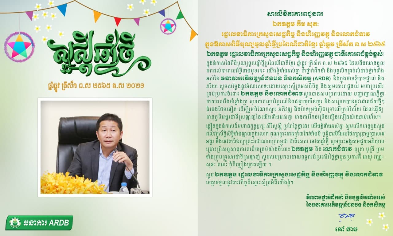 14 April 2021 សារលិខិតគោរពជូនពរ ឯកឧត្តម គីម សុភៈ រដ្ឋលេខាធិការក្រសួងសេដ្ឋកិច្ច និងហិរញ្ញវត្ថុ និងលោកជំទាវ ក្នុងឱកាសពិធីបុណ្យចូលឆ្នាំថ្មី ប្រពៃណីជាតិខ្មែរ ឆ្នាំឆ្លូវ ត្រីស័ក ព.ស ២៥៦៥ Post navigation Previous សារលិខិតគោរពជូនពរ ឯកឧត្តម ផាន់ ផល្លា រដ្ឋលេខាធិការក្រសួងសេដ្ឋកិច្ច និងហិរញ្ញវត្ថុ និងលោកជំទាវ ក្នុងឱកាសពិធីបុណ្យចូលឆ្នាំថ្មី ប្រពៃណីជាតិខ្មែរ ឆ្នាំឆ្លូវ ត្រីស័ក ព.ស ២៥៦៥Next សារលិខិតគោរពជូនពរ ឯកឧត្តម ឈន សុភាព រដ្ឋលេខាធិការក្រសួងសេដ្ឋកិច្ច និងហិរញ្ញវត្ថុ និងលោកជំទាវ ក្នុងឱកាសពិធីបុណ្យចូលឆ្នាំថ្មី ប្រពៃណីជាតិខ្មែរ ឆ្នាំឆ្លូវ ត្រីស័ក ព.ស ២៥៦៥