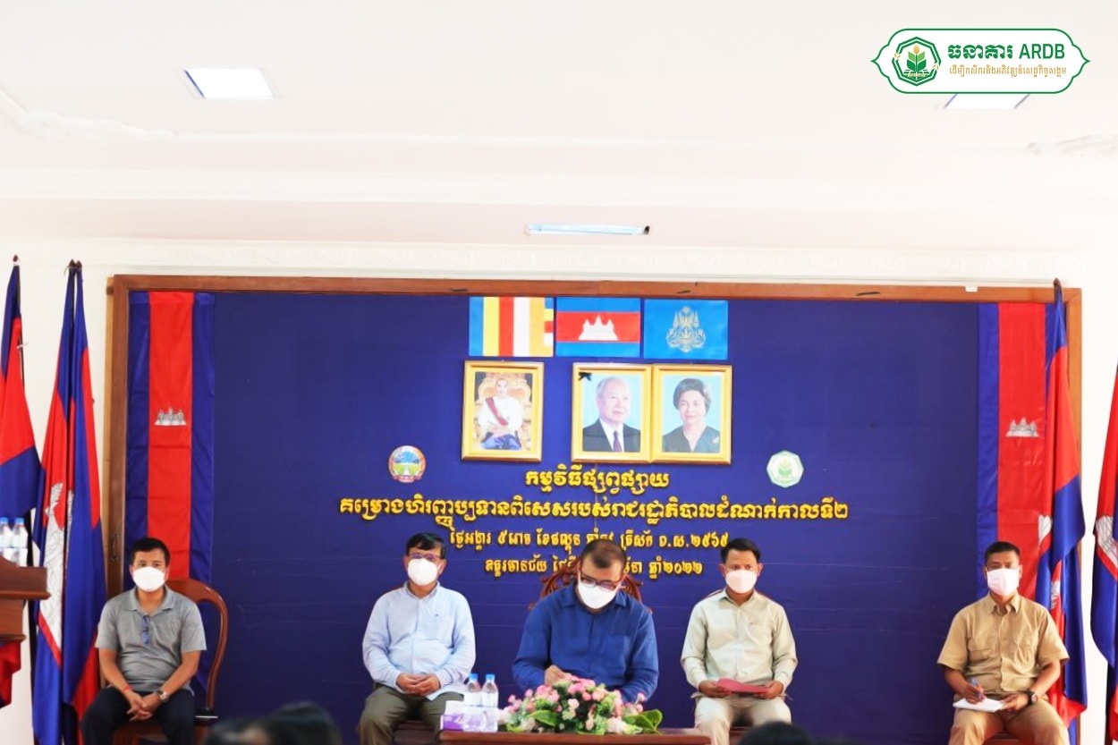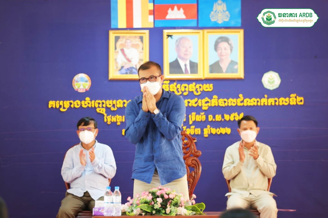 រសៀលថ្ងៃទី២២ ខែមីនា ឆ្នាំ២០២២ ឯកឧត្តមបណ្ឌិត កៅ ថាច ប្រតិភូរាជរដ្ឋាភិបាលទទួលបន្ទុកជាអគ្គនាយកនៃធនាគារអភិវឌ្ឍន៍ជនបទ និងកសិកម្ម បានបន្តអញ្ជើញចូលរួមជាអធិបតីភាពដ៏ខ្ពង់ខ្ពស់ ក្នុងកម្មវិធីផ្សព្វផ្សាយគម្រោងហិរញ្ញប្បទានពិសេសរបស់រាជរដ្ឋាភិបាល គាំទ្រដល់ការដាំដុះបន្លែ ផ្លែឈើ ចញ្ចឹមសត្វ វារីវប្បកម្ម ការកែច្នៃផលិតផលកសិកម្ម មៀនប៉ៃលិន ស្វាយ និងស្វាយចន្ទី។
