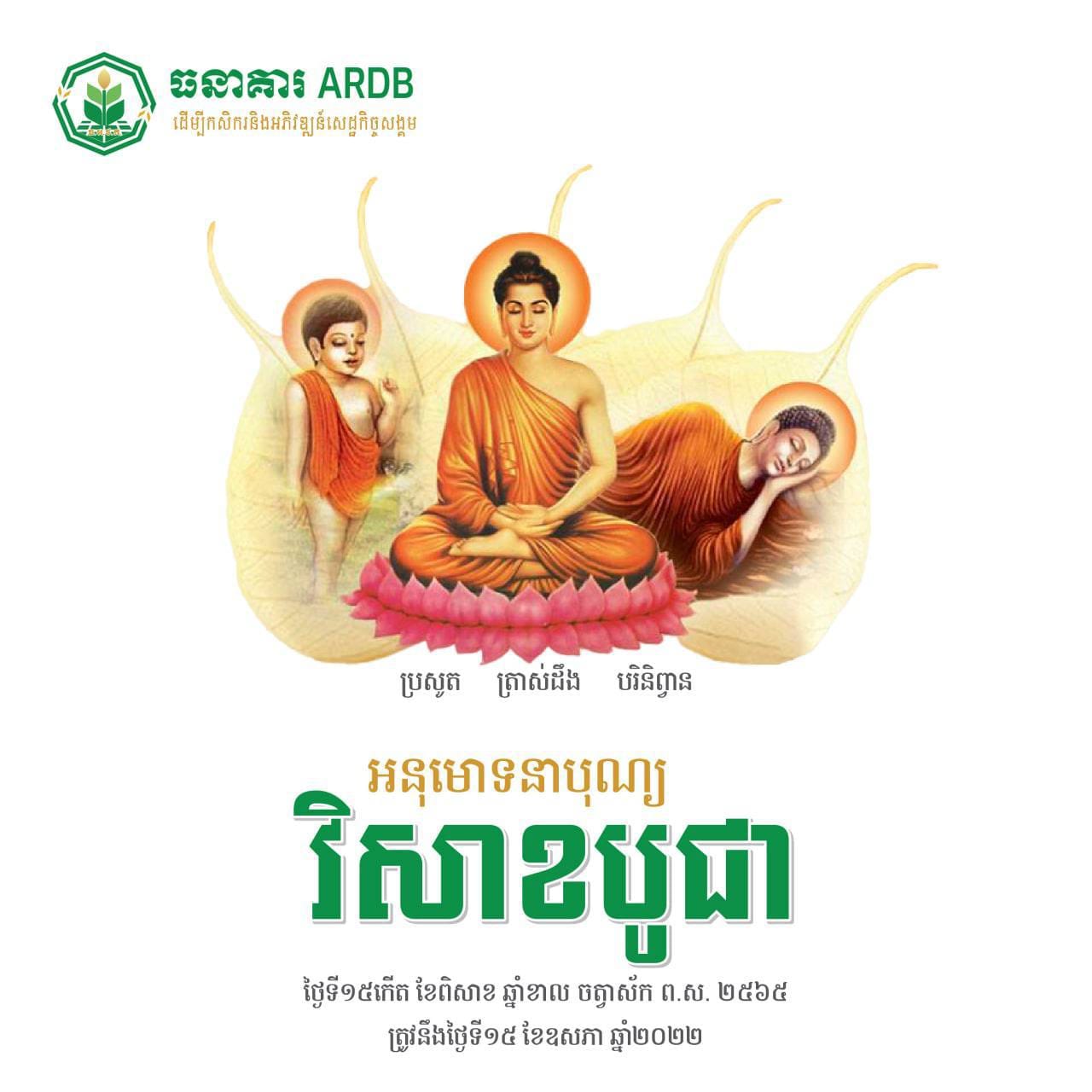 សូមអនុមោទនា ពិធីបុណ្យវិសាខបូជា ថ្ងៃទី១៥កើត ខែពិសាខ ឆ្នាំខាល ចត្វាស័ក ព.ស២៥៦៥ ត្រូវនឹងថ្ងៃទី១៥ ខែឧសភា ឆ្នាំ២០២២។