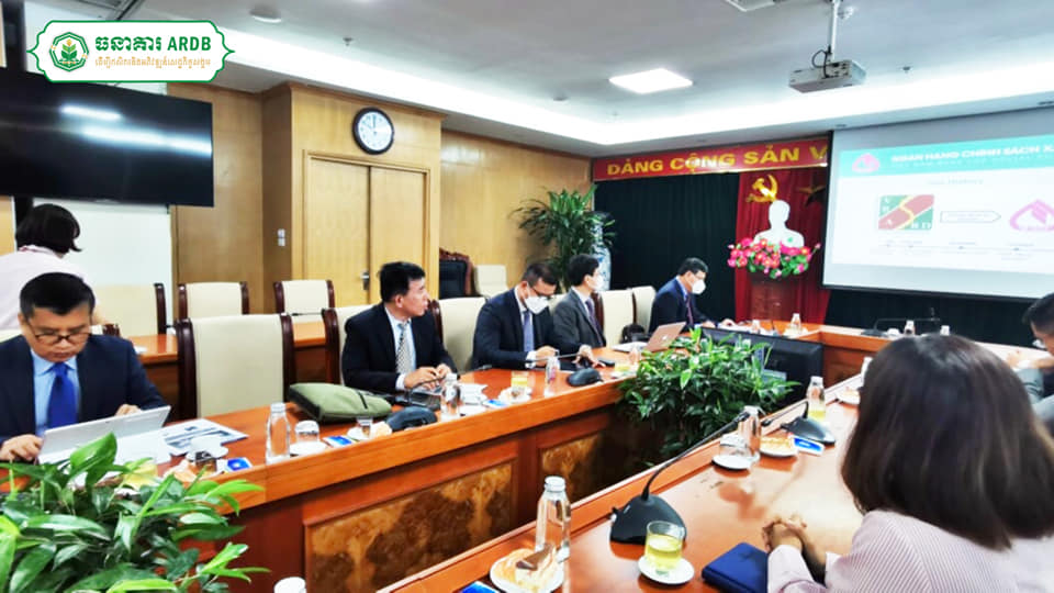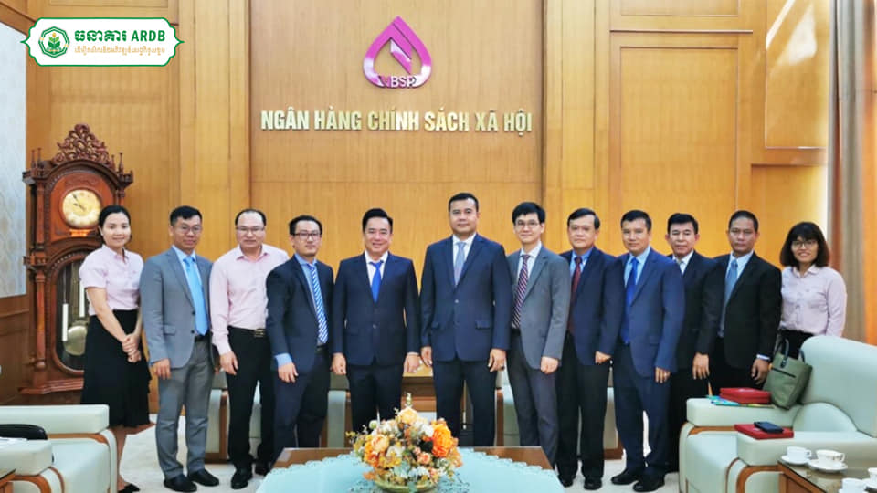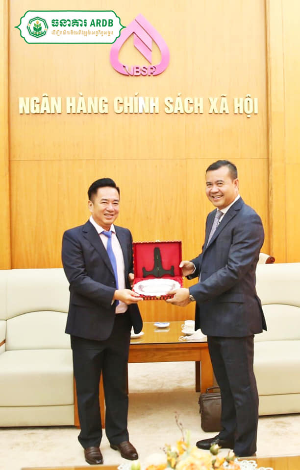 In the morning of July 18, 2022, HE Dr. KAO Thach, Delegate of Royal Government of Cambodia in charge as Chief Executive Officer of ARDB, led the delegation to a study tour at the Vietnam Bank for Social Policies (VBSP) in Hanoi, Vietnam. HE Dr. KAO Thach, accompanied by colleagues had paid a courtesy call with Mr. Huynh Van Thuan, Deputy Director General of VBSP, and his management. In this meeting, the management of the two banks exchanged work experiences and discussed similar roles of policy bank in contributing to socio-economic development, especially agricultural and economic development. In addition, HE Dr. KAO Thach was obliged to Mr. Huynh Van Thuan and the management of VBSP Bank for allowing the ARDB delegation to meet and exchange experiences on providing loan to smallholder farmers and group loan to rural farmers of VBSP.