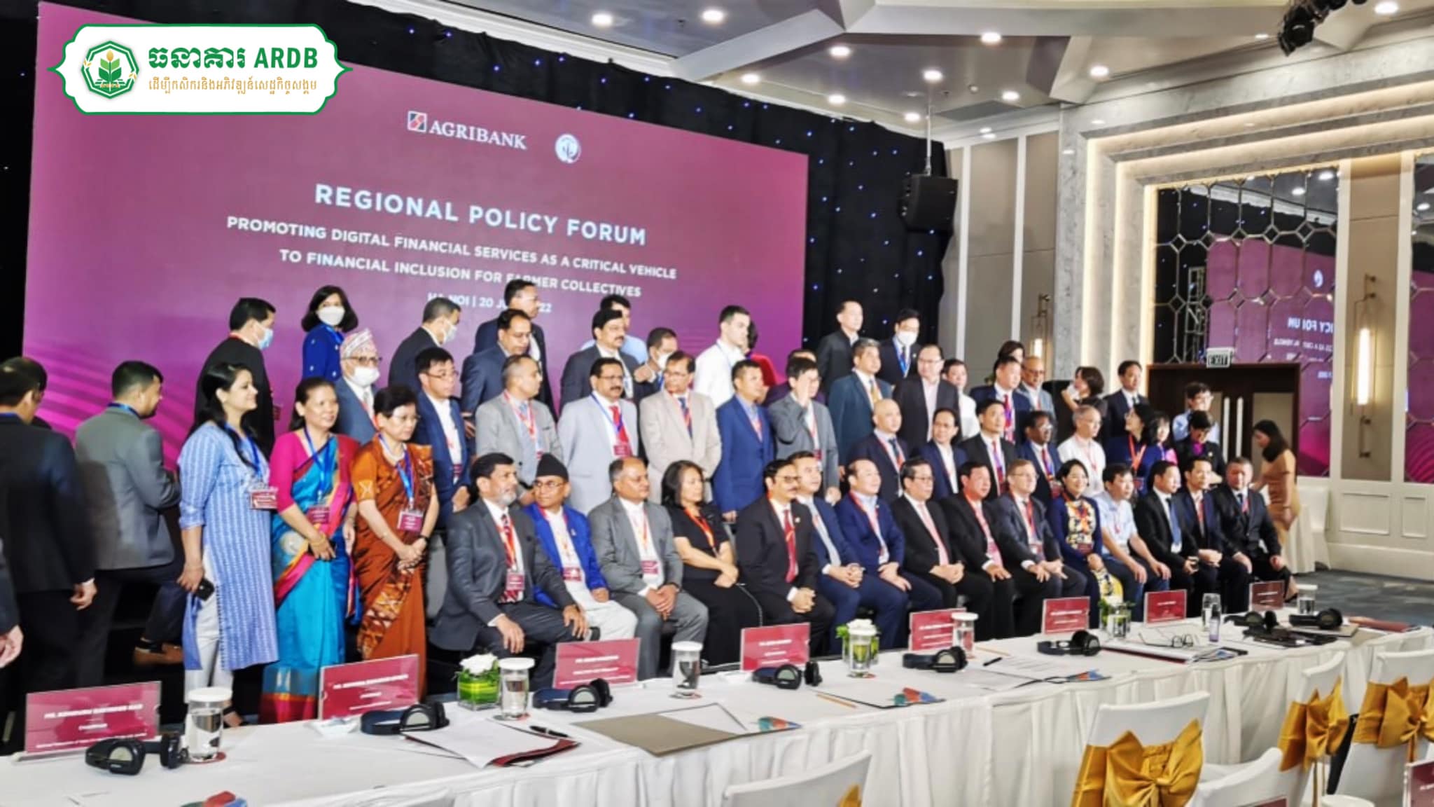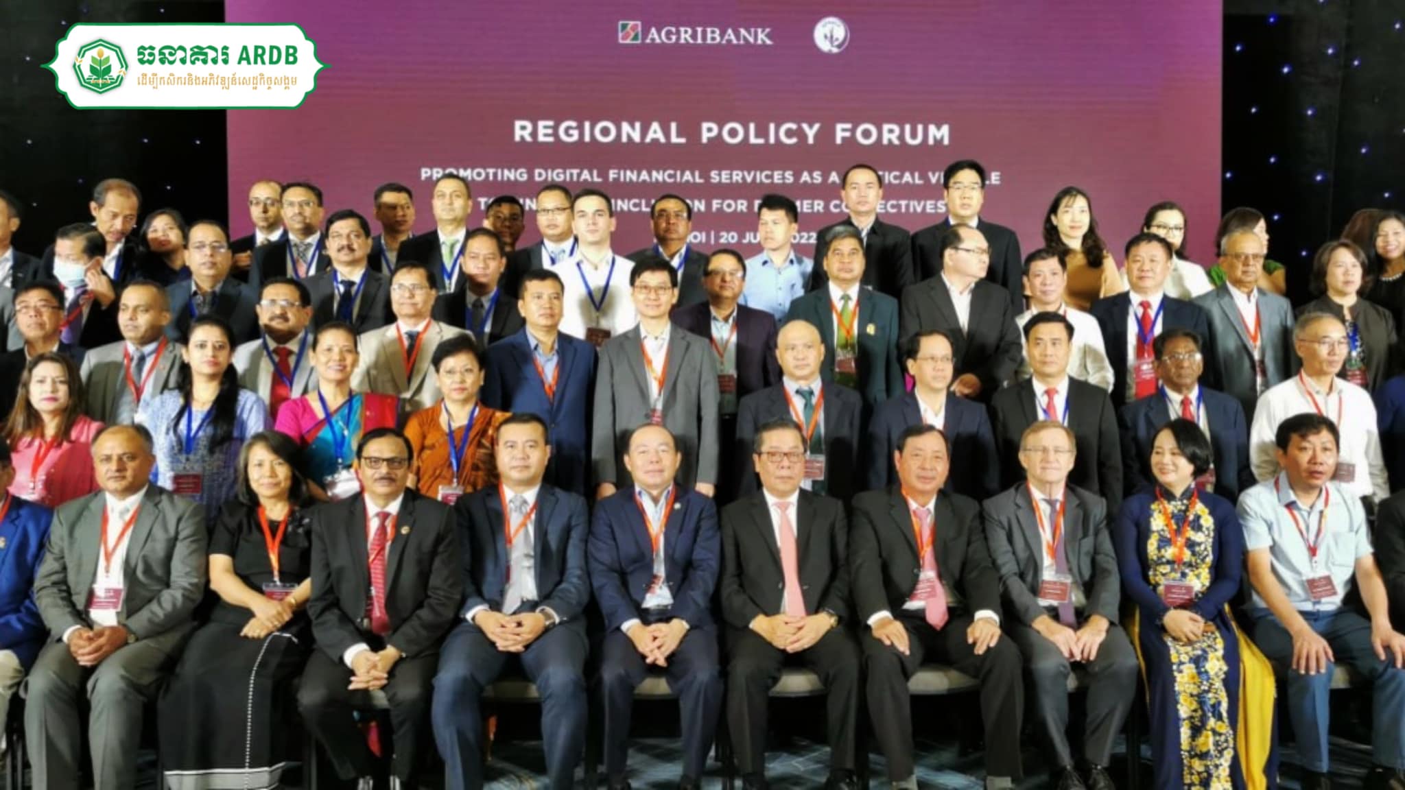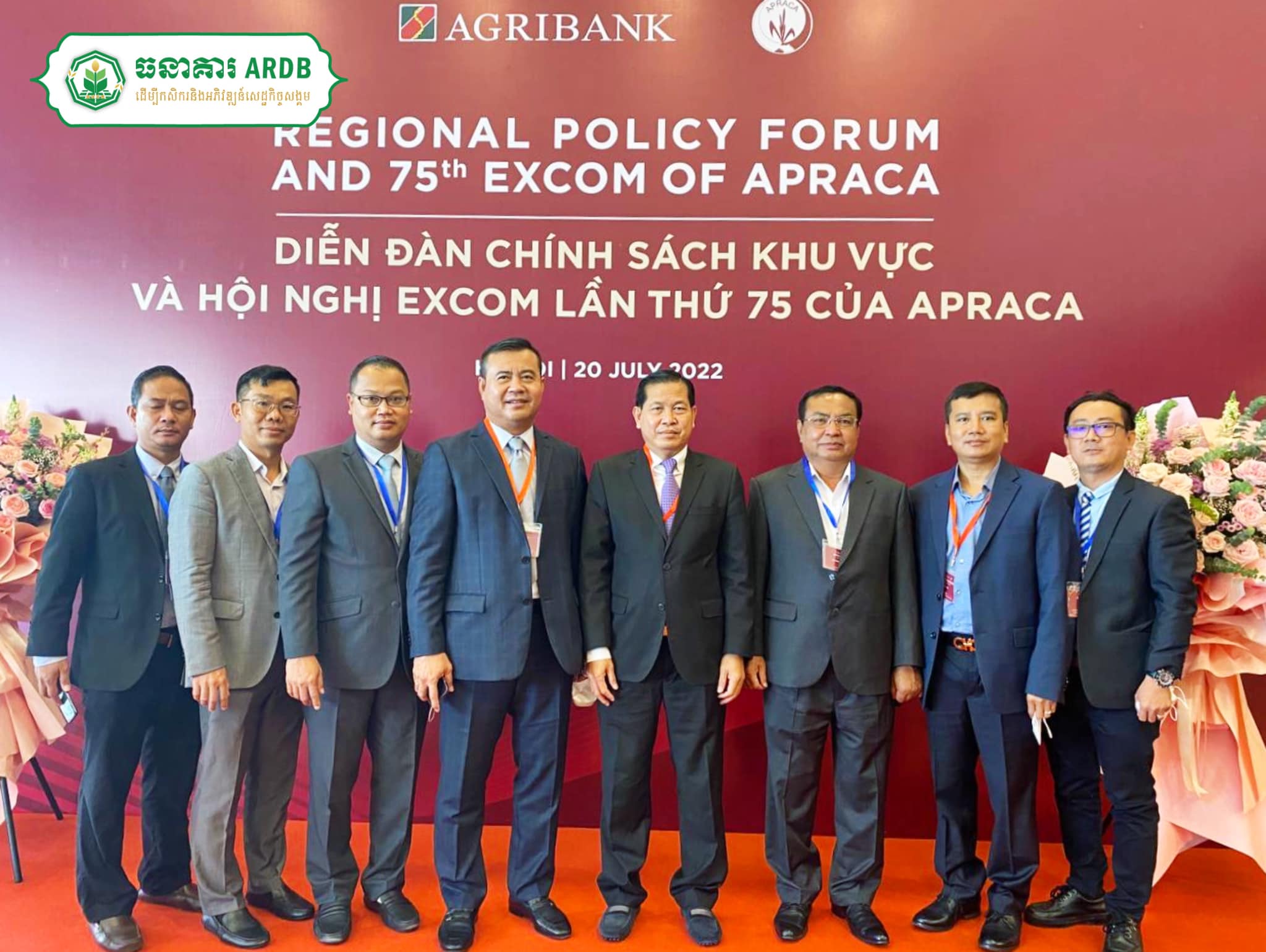 In the morning of July 20, 2022, HE Dr. Kao Thach, the Royal Government Delegate in charge as CEO of Agricultural and Rural Development Bank (ARDB) led the delegation to join the Regional Policy Forum as a Critical Vehicle to Financial Inclusion for Farmer Collectives hosted by Vietnam Bank for Agriculture and Rural Development (VBARD/Agribank) in collaboration with the Asia-Pacific Rural and Agricultural Credit Association (APRACA) in Hanoi, Vietnam. The forum provided a platform for banking and financial institutions, central banks, development partners and relevant institutions in the Asia-Pacific region to discuss and exchange their practical experiences, focused on three key points: 1. Trends and innovations for digital financial services for smallholder farmers, farmer collectives and other village level enterprises engaged in agribusiness and its value chains; 2. Role of banking and financial institutions, central banks, development partners and related institutions to provide policy support for the implementation of digital financial services; and 3. Digital technologies and tools adopted by financial service providers to reduce financial risks and generate marketing opportunities for farmers.