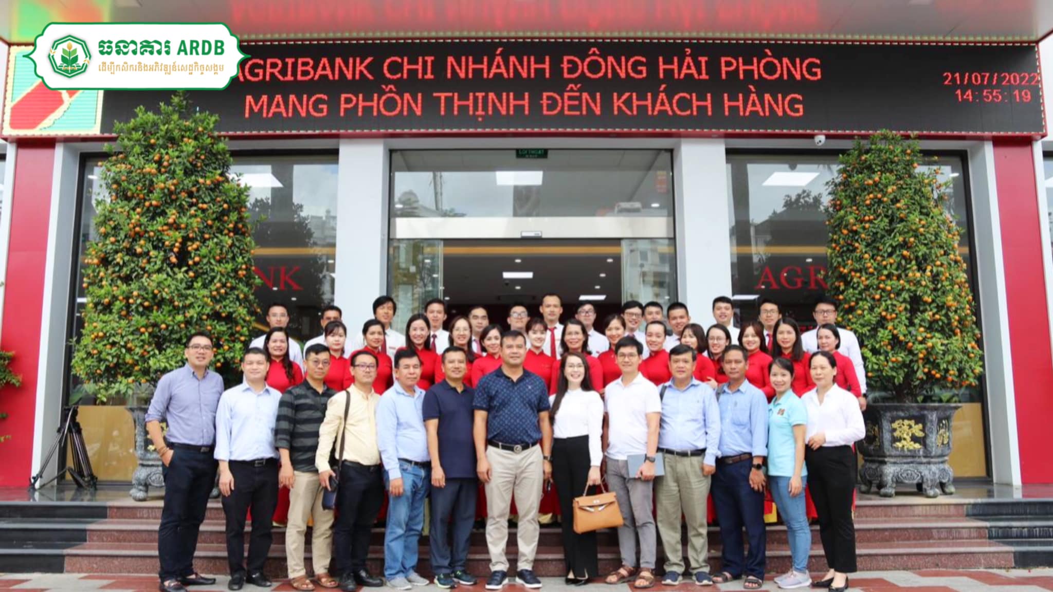 នាថ្ងៃទី២១-២២ ខែកក្កដា ឆ្នំា២០២២, ឯកឧត្តមបណ្ឌិត កៅ ថាច ប្រតិភូរាជរដ្ឋាភិបាលទទួលបន្ទុកជា អគ្គនាយកធនាគារអភិវឌ្ឍន៍ជនបទ និងកសិកម្ម (ARDB) បានដឹកនំាគណៈប្រតិភូចុះបំពេញទស្សនៈកិច្ចសិក្សានៅសាខាធនាគារ Agribank ក្នុងខេត្ត Hai Phong នៃប្រទេសវៀតណាម ដើម្បីស្វែងយល់អំពី ប្រតិបត្តិការរបស់សាខាធនាគារ Agribank ហើយគណៈប្រតិភូក៏បានចុះស្វែងយល់ផ្ទាល់ និងដកស្រង់បទពិសោធន៍លើការអនុវត្តការងារផ្តល់ឥណទានជាក្រុម ការធ្វើប្រតិបត្តិការធនាគារដោយប្រើប្រាស់រថយន្តជាការិយាល័យចល័តដល់ទីជនបទរបស់សាខាធនាគារ Agribank ព្រមទំាងបានចុះសិក្សាដល់ទីកន្លែងកសិដ្ឋានចិញ្ចឹមជ្រូក និងកសិដ្ឋានដំាដុះបន្លែសុវត្ថិភាពក្នុង Greenhouse ដោយប្រើប្រាស់បច្ចេកវិទ្យាទំនើបផងដែរ។
