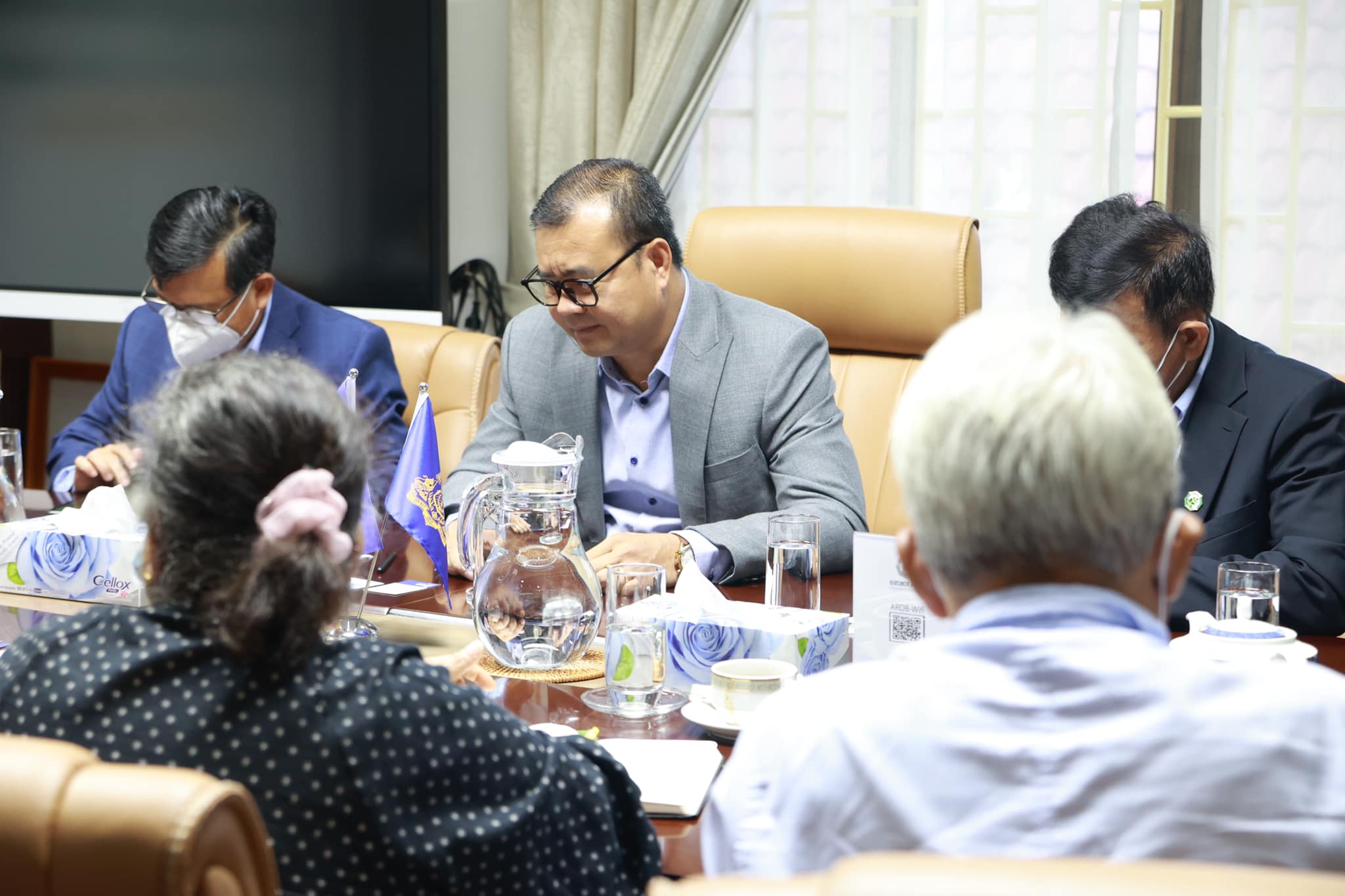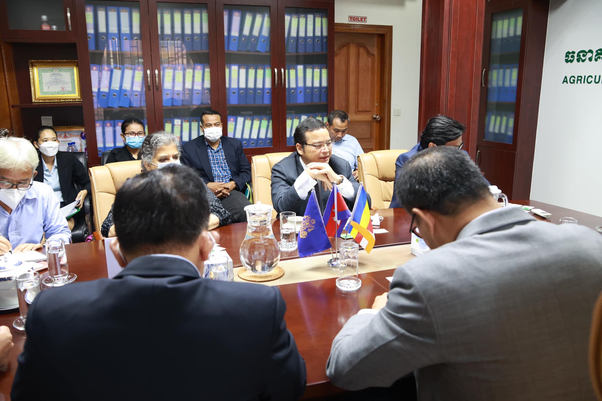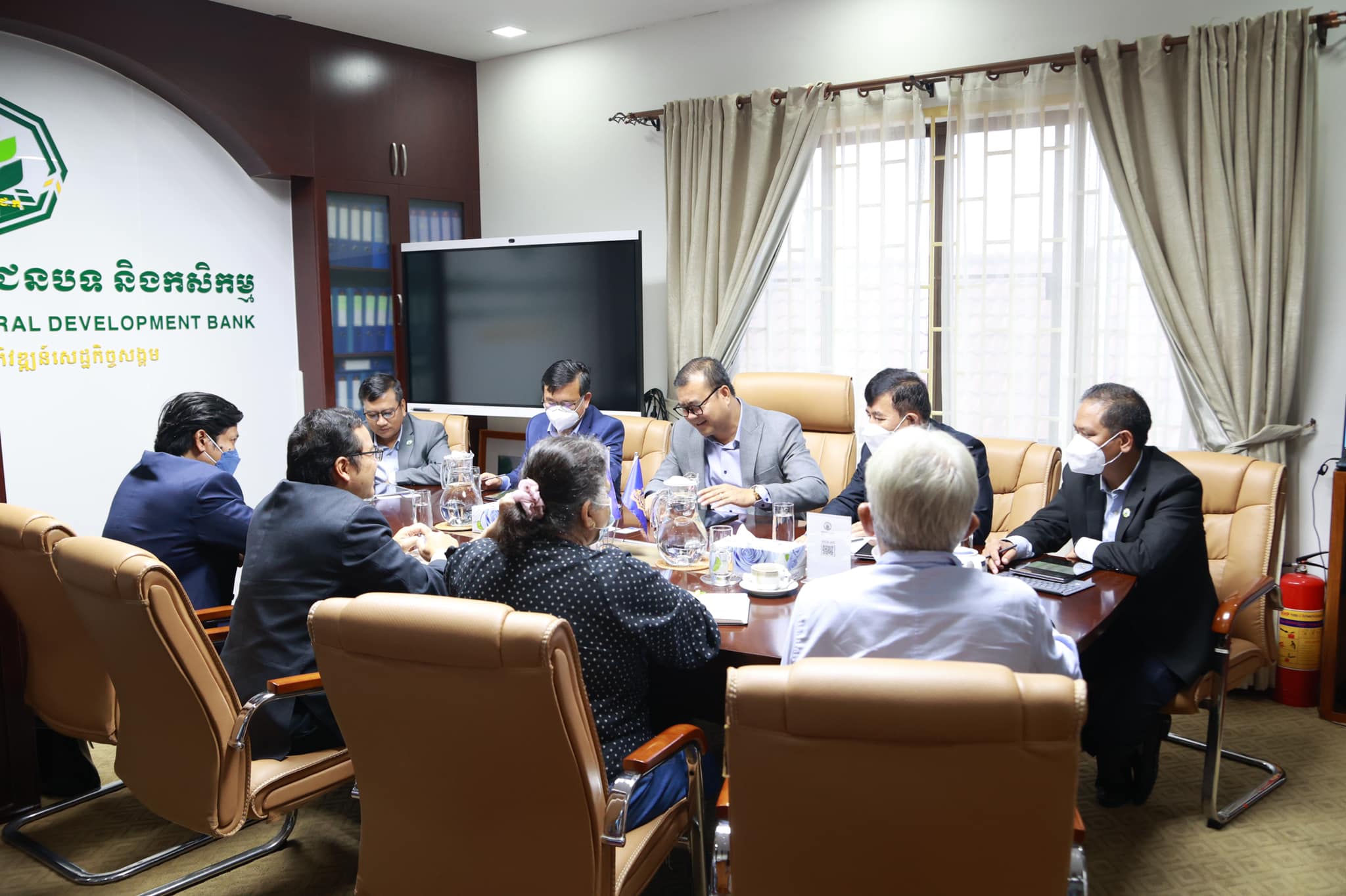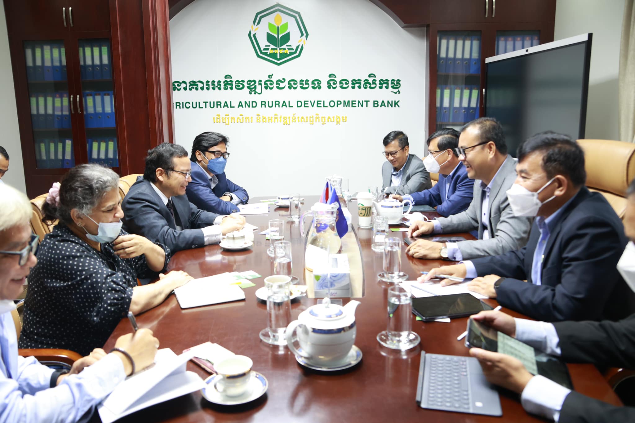 នាព្រឹកថ្ងៃទី២៩ ខែសីហា ឆ្នាំ២០២២ ឯកឧត្តមបណ្ឌិត កៅ ថាច ប្រតិភូរាជរដ្ឋាភិបាលទទួលបន្ទុកជាអគ្គនាយកធនាគារ ARDB អមដោយឯកឧត្តមអគ្គនាយករង និងក្រុមការងារ បានដឹកនាំកិច្ចប្រជុំ និងពិភាក្សាការងារជាមួយក្រុមបេសសកម្មរបស់អង្គការមូលនិធិអន្តរជាតិសម្រាប់ការអភិវឌ្ឍកសិកម្ម (IFAD) ក្រោមគម្រោងជំរុញទីផ្សារសម្រាប់កសិកម្មខ្នាតតូច (AIMS) ដែលដឹកនាំដោយ លោក ម៉េង ស័ក្តិភូសិទ្ធ តំណាងអង្គការ IFAD ប្រចាំនៅកម្ពុជា អមដោយ Madam. Girija Srinivisan ប្រធានក្រុមបេសកកម្មត្រួតពិនិត្យគម្រោងអេមស៍, ឯកឧត្តម សំរិទ្ធ សាកុរា អគ្គនាយកនៃអគ្គនាយកដ្ឋានពាណិជ្ជកម្មក្នុងប្រទេស និងជានាយកគម្រោងអេមស៍, លោក សៀង កុមិរ៉ា នាយករងគម្រោងអេមស៍ និងក្រុមការងារ។ កិច្ចប្រជុំនេះមានគោលបំណងស្វែងយុទ្ធសាស្រ្តពង្រឹងការផ្តល់ឥណទានដល់កសិករខ្នាតតូចក្នុងគម្រោង និងការបង្កើតឧបករណ៍នវានុវត្តន៍ផ្សេងៗសម្រាប់គាំទ្រដល់ខែ្សចងា្វក់តម្លៃកសិកម្ម ។