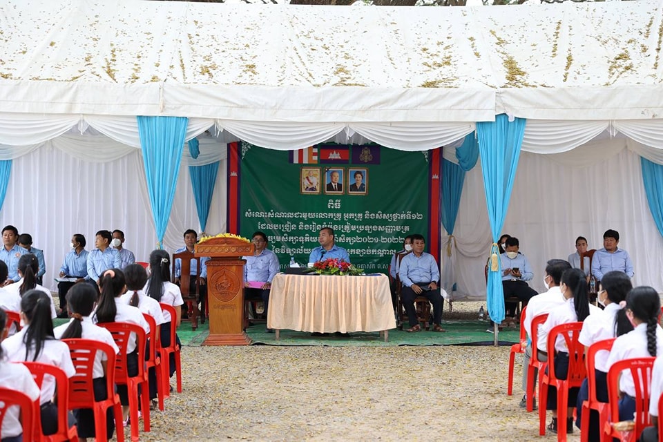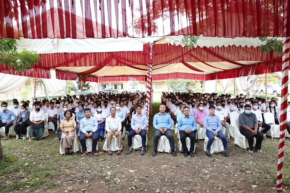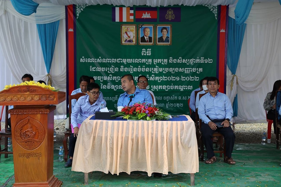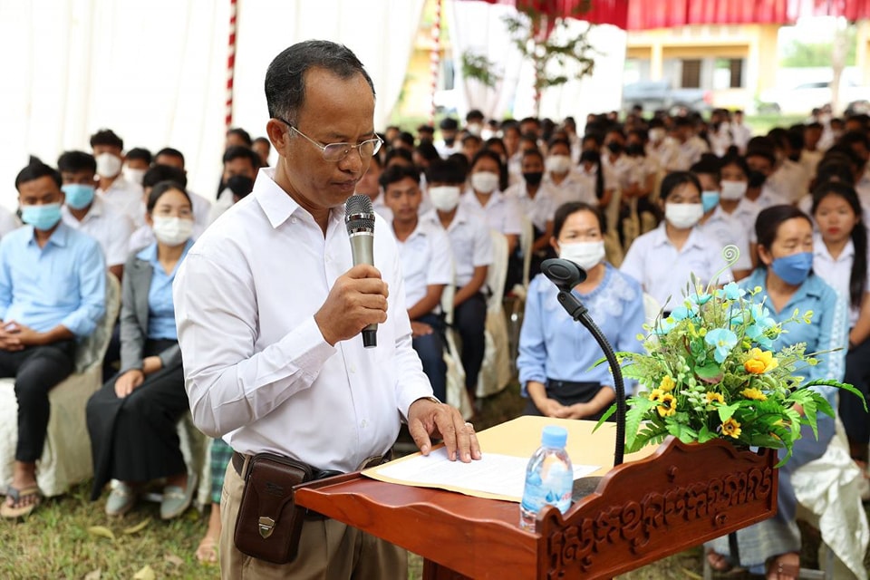 ជាកិច្ចចាប់ផ្តើម ឯកឧត្តមបណ្ឌិត កៅ ថាច ប្រតិភូរាជរដ្ឋាភិបាល បានថ្លែងអំណរគុណយ៉ាងជ្រាលជ្រៅ ដោយស្មោះស្ម័គ្រ និងគោរពដល់លោកគ្រូអ្នកគ្រូទាំងអស់ ដែលបានចំណាយពេលវេលាដ៏មានតម្លៃក្នុងការបង្រៀនបំប៉នបន្ថែមម៉ោងដល់ប្អូនៗសិស្សានុសិស្សដែលត្រៀមប្រឡងសញ្ញាបត្រមធ្យមសិក្សាទុតិយភូមិ នាពេលឆាប់ៗខាងមុខនេះ។ ជាមួយគ្នានេះ ឯកឧត្តម បានពាំនាំប្រសាសន៍ផ្តាំផ្ញើសួរសុខទុក្ខពីសំណាក់ឯកឧត្តមអគ្គបណ្ឌិតសភាចារ្យ អូន ព័ន្ធមុនីរ័ត្ន ឧបនាយករដ្ឋមន្ត្រី រដ្ឋមន្ត្រីក្រសូងសេដ្ឋកិច្ច និងហិរញ្ញវត្ថុ ជូនដល់ប្អូនៗសិស្សានុសិស្ស និងលោកគ្រូអ្នកគ្រូទាំងអស់។