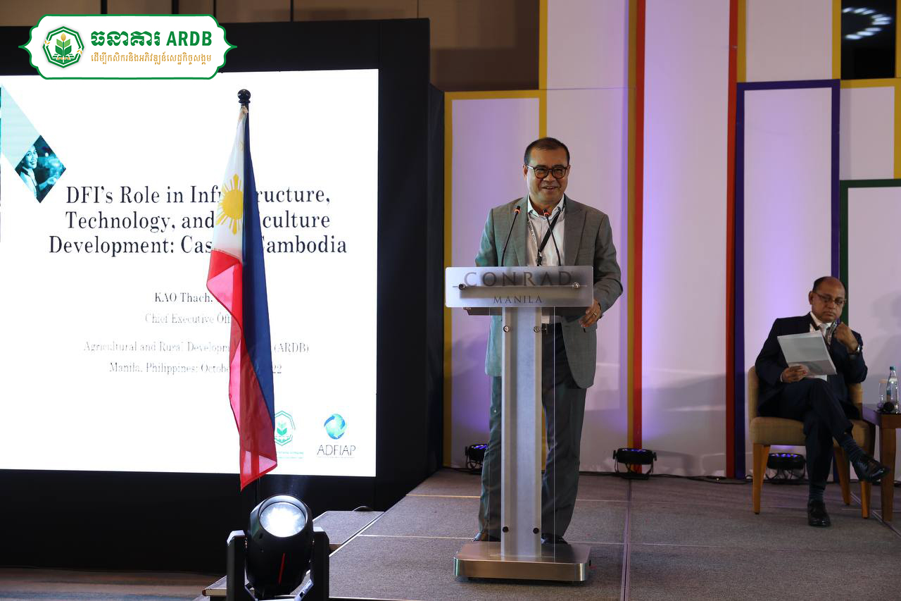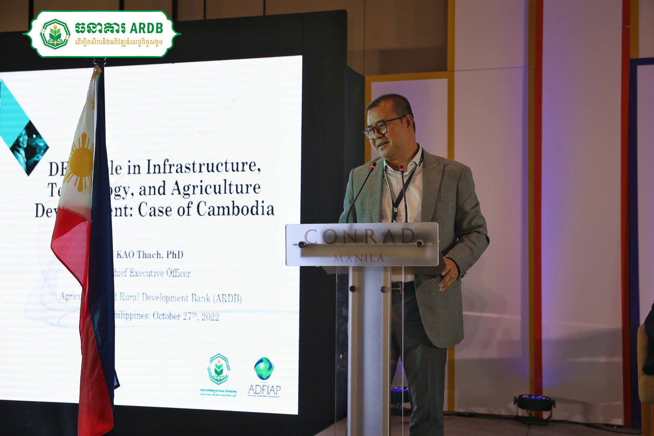 H.E. Dr. KAO Thach, Delegate of Royal Government of Cambodia in charge as Chief Executive Officer of ARDB has conducted a presentation, shared experiences, and been a panelist on Development Finance Institutions Roles in Infrastructure, Technology, and Agriculture Development: Case in Cambodia in the Association of Development Financing Institutions in Asia and the Pacific (ADFIAP) 45th Annual Meeting on afternoon of 27th October 2022 in Philippines. H.E. Dr. has shared to all international delegates on government interventions during and post covid-19 “The Strategic Framework and Program for Economy Recovery in the Context of Living with Covid-19 in a New Normal 2021-2023” as well as elaborating the roles of ARDB in this government intervention policy.