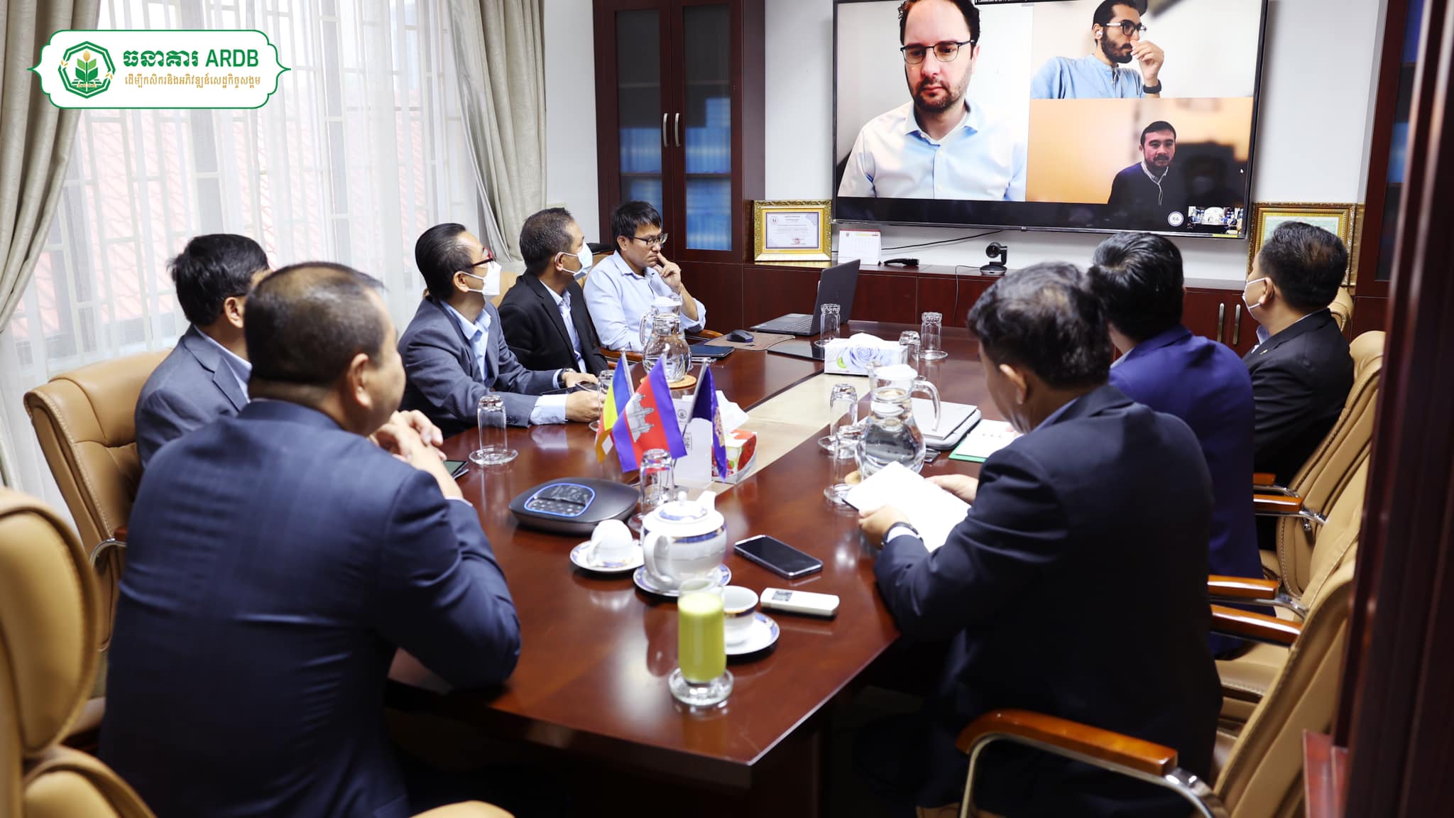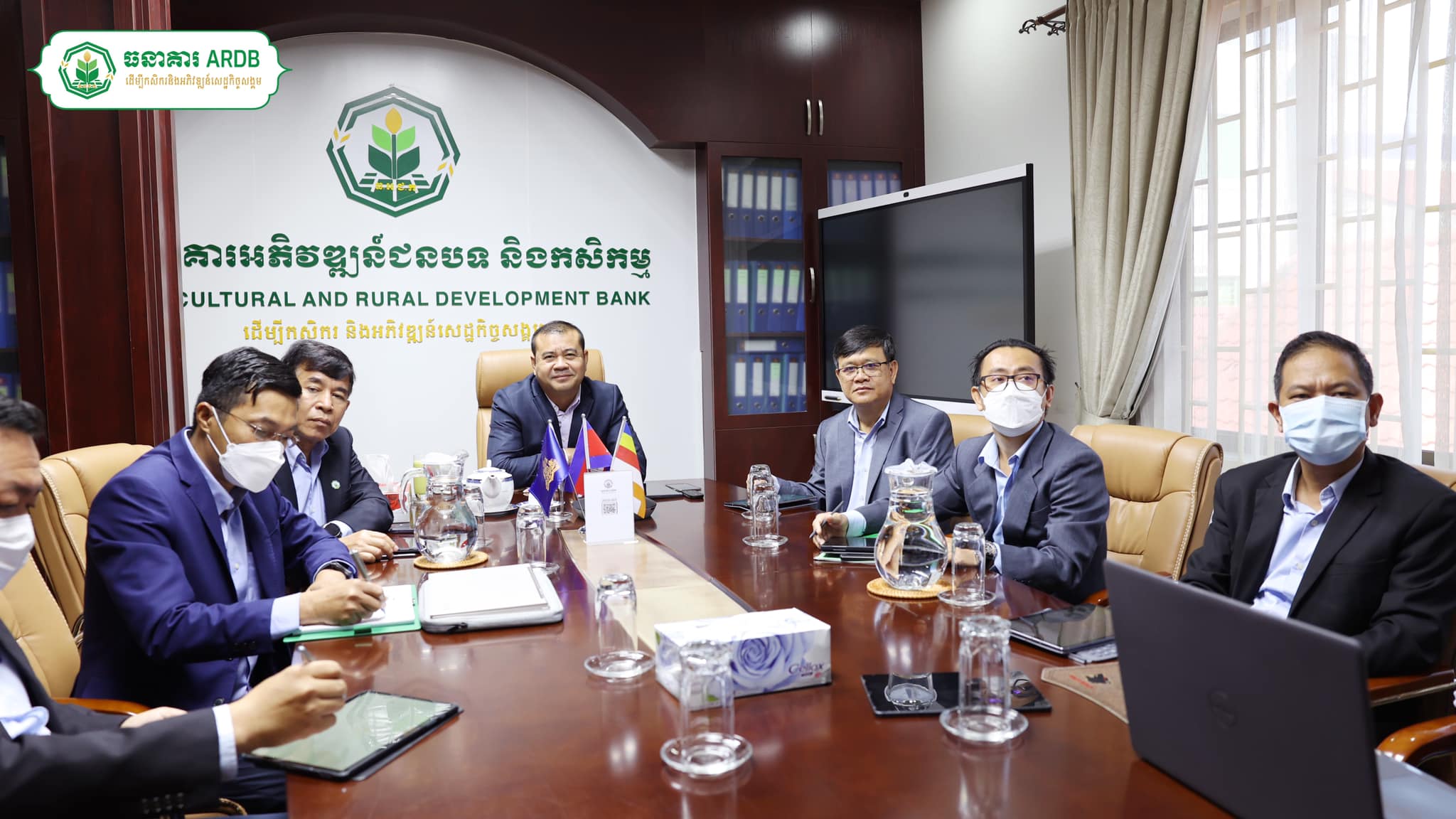 H.E. Dr. KAO Thach, Delegate of Royal Government of Cambodia in charge as Chief Executive Officer of ARDB, accompanied by DCEO and colleagues, have joined a virtual meeting with World Bank representatives to discuss on technical assistance support on sustainable financing and green financing, on 30th November 2022.