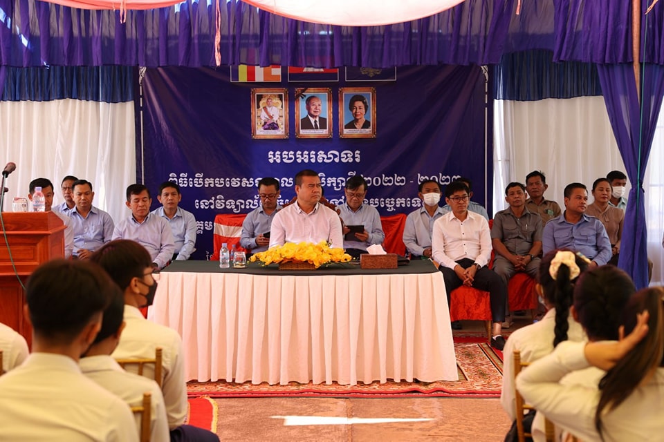 ដោយមើលឃើញពីប្រសិទ្ធភាព នៃការកែទម្រង់ស៊ីជម្រៅរបស់រាជរដ្ឋាភិបាល ជាពិសេសលើវិស័យអប់រំ ក្នុងរយៈកាលចុងក្រោយនេះ បានធ្វើឱ្យវិស័យអប់រំកាន់រីកចម្រើន ហើយសិស្សានុសិស្សបានខិតខំពង្រឹងខ្លួនទាំងសមត្ថភាព និងចំណេះដឹង ជាក់ស្តែងលទ្ធផលនៃការប្រឡងបាក់ឌុបក្នុងឆ្នាំកន្លងមក ជាសក្ខីភាពបង្ហាញពីភាពជោគជ័យ នៃកំណែទម្រង់ប្រព័ន្ធអប់រំ តាមរយៈពាក្យស្លោក “អ្នកចេះគឺជាប់”។ ឯកឧត្តមបណ្ឌិត ក៏បានធ្វើការលើកទឹកចិត្ត និងជំរុញឱ្យប្អូនៗសិស្សានុសិស្សខិតខំសិក្សារៀនសូត្រ និងពង្រឹងសមត្ថភាព ដើម្បីទទួលបានជោគជ័យនៅពេលប្រឡងនាពេលខាងមុខ។ បន្ថែមលើនេះ ឯកឧត្តមបណ្ឌិត បានណែនាំ និងចែករំលែកនូវបទពិសោធន៍ ព្រមទាំងវិធីសាស្រ្តល្អៗមួយចំនួនពាក់ព័ន្ធនឹងការសិក្សារៀនសូត្រ ទាំងនៅក្នុងសាលា និងស្វ័យសិក្សា ជូនដល់ប្អូនៗសិស្សានុសិស្ស ដូចជា៖