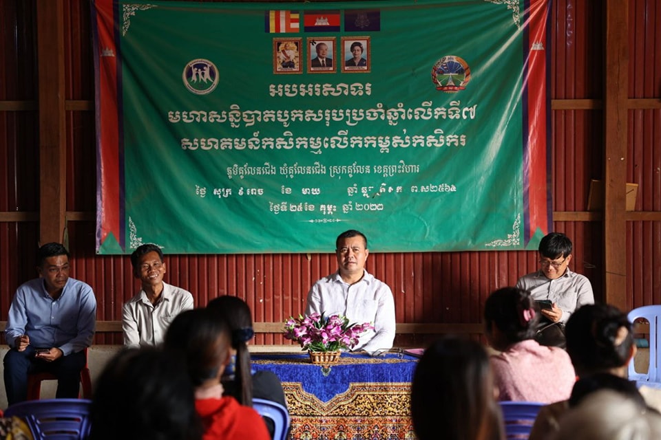 ព្រះវិហារ៖ ល្ងាចថ្ងៃទី២០ ខែកុម្ភះ ឆ្នាំ២០២៣, ឯកឧត្តមបណ្ឌិត កៅ ថាច ប្រតិភូរាជរដ្ឋាភិបាល ទទួលបន្ទុកជាអគ្គនាយកនៃធនាគារអភិវឌ្ឍន៍ជនបទ និងកសិកម្ម ( ARDB ) និងសហការី បានបន្តអញ្ជើញចូលរួមសំណេះសំណាល និងផ្សព្វផ្សាយអំពីគោលការណ៍ឥណទាន របស់ ធនាគារ ARDB ជូនដល់សមាជិក សហគមន៍កសិកម្មភ្នំពេជ្របុរី ដែលមានទីតាំងស្ថិតនៅភូមិស្របាល ឃំុភ្នំពេជ្រ ស្រុកគូលែន ខេត្តព្រះវិហារ និង សហគមន៍កសិកម្មលើកកម្ពស់កសិករ ស្ថិតនៅភូមិគូលែន ឃំុគូលែន ស្រុកគូលែន ខេត្តព្រះវិហារ ។