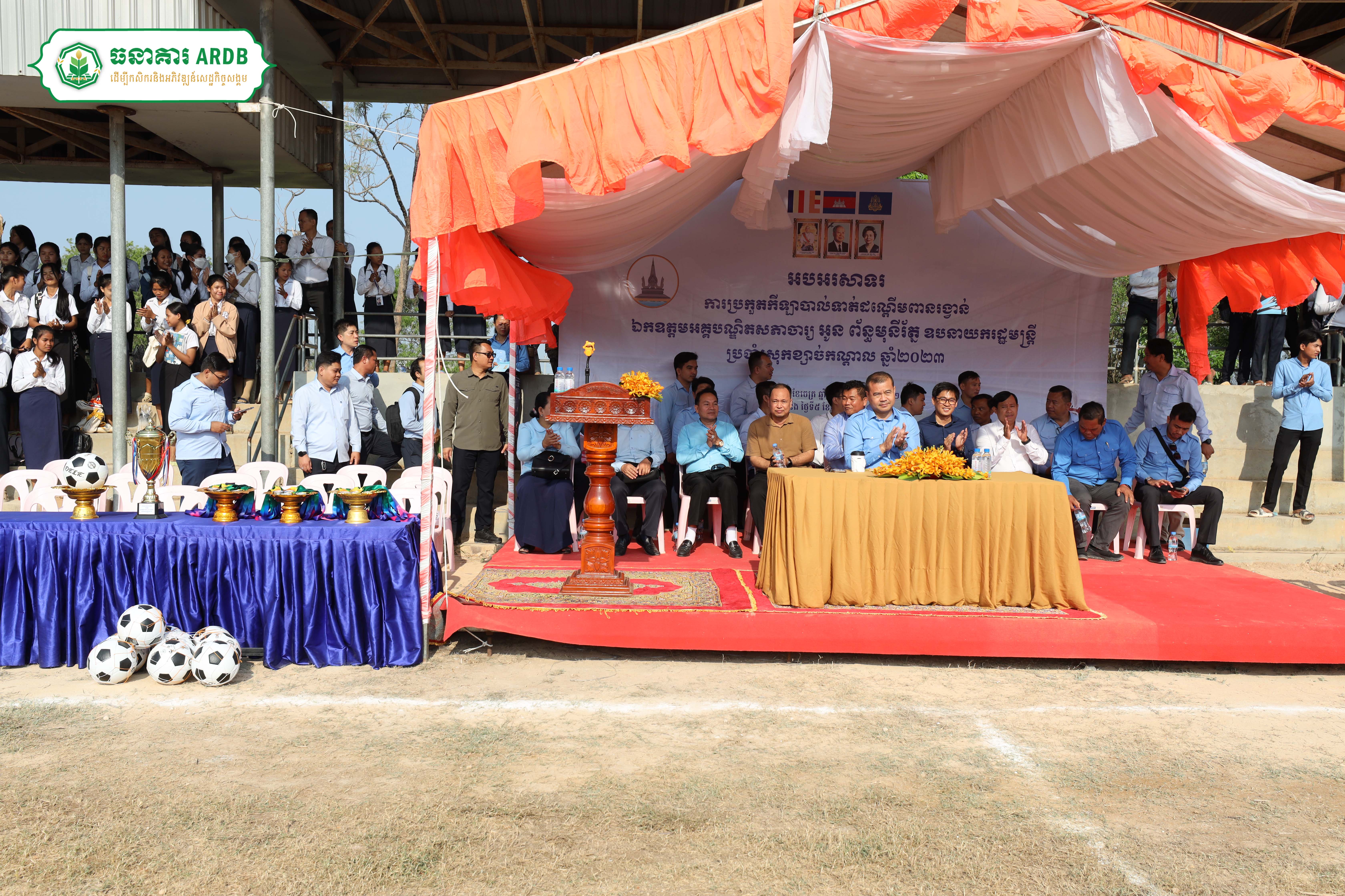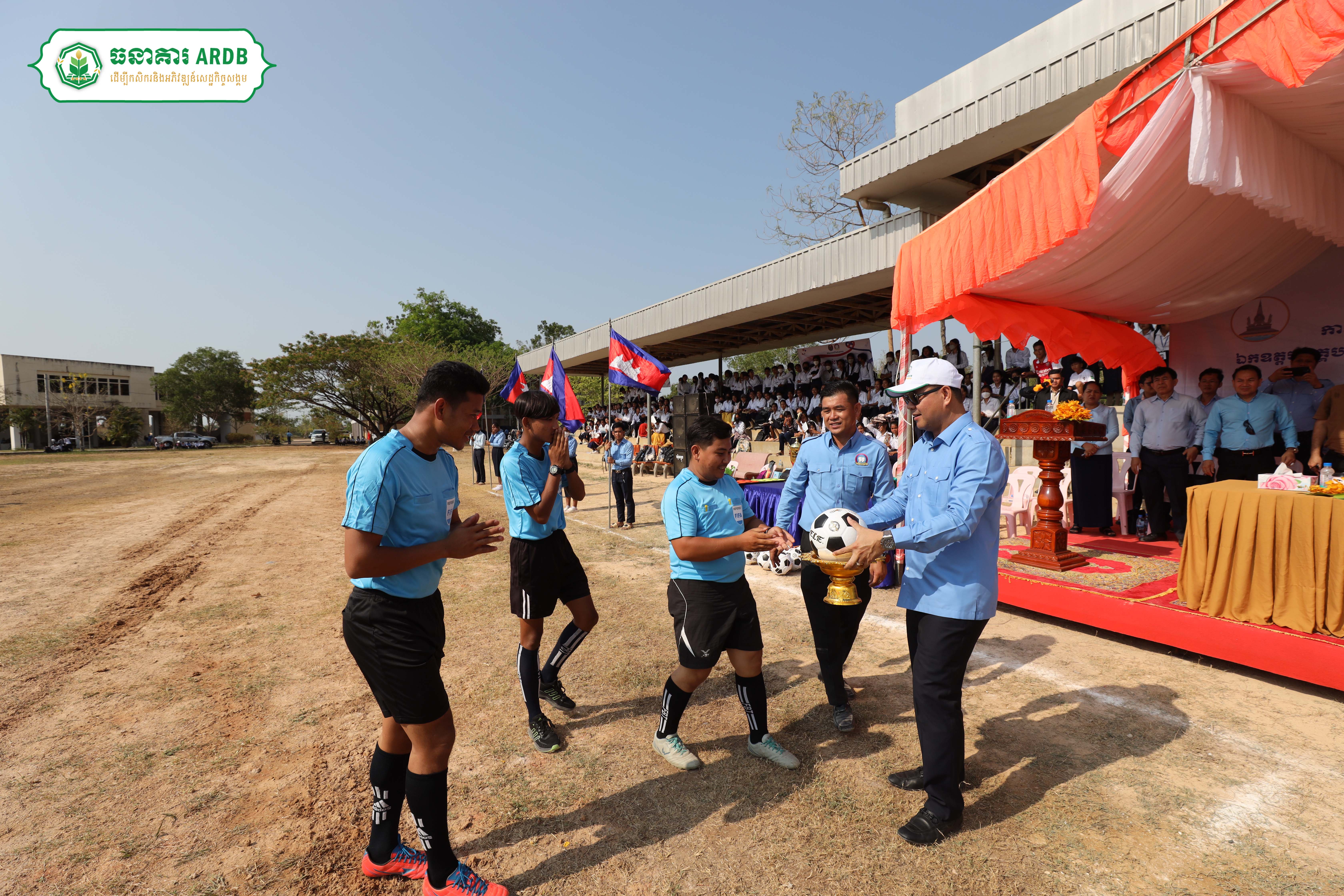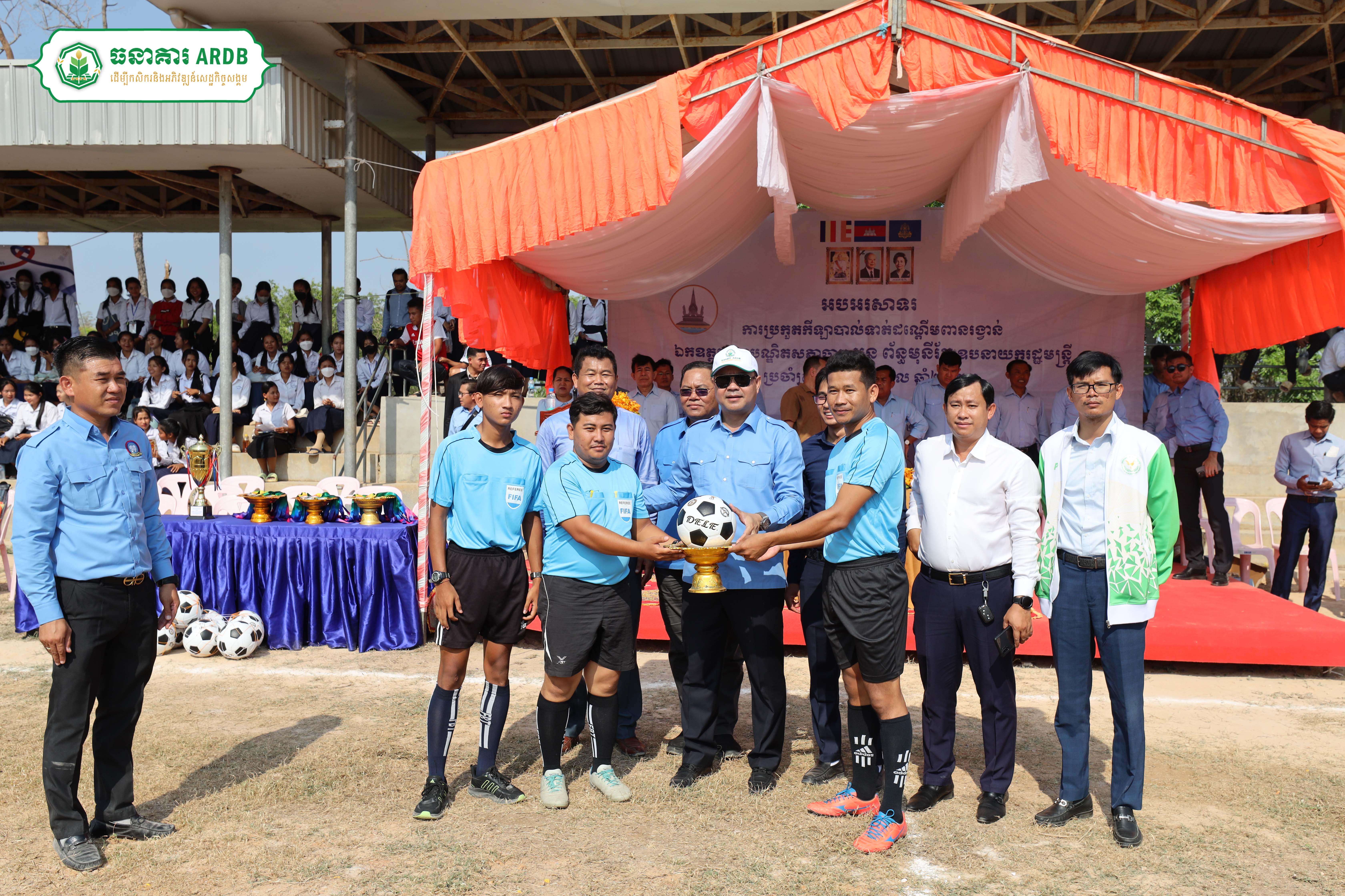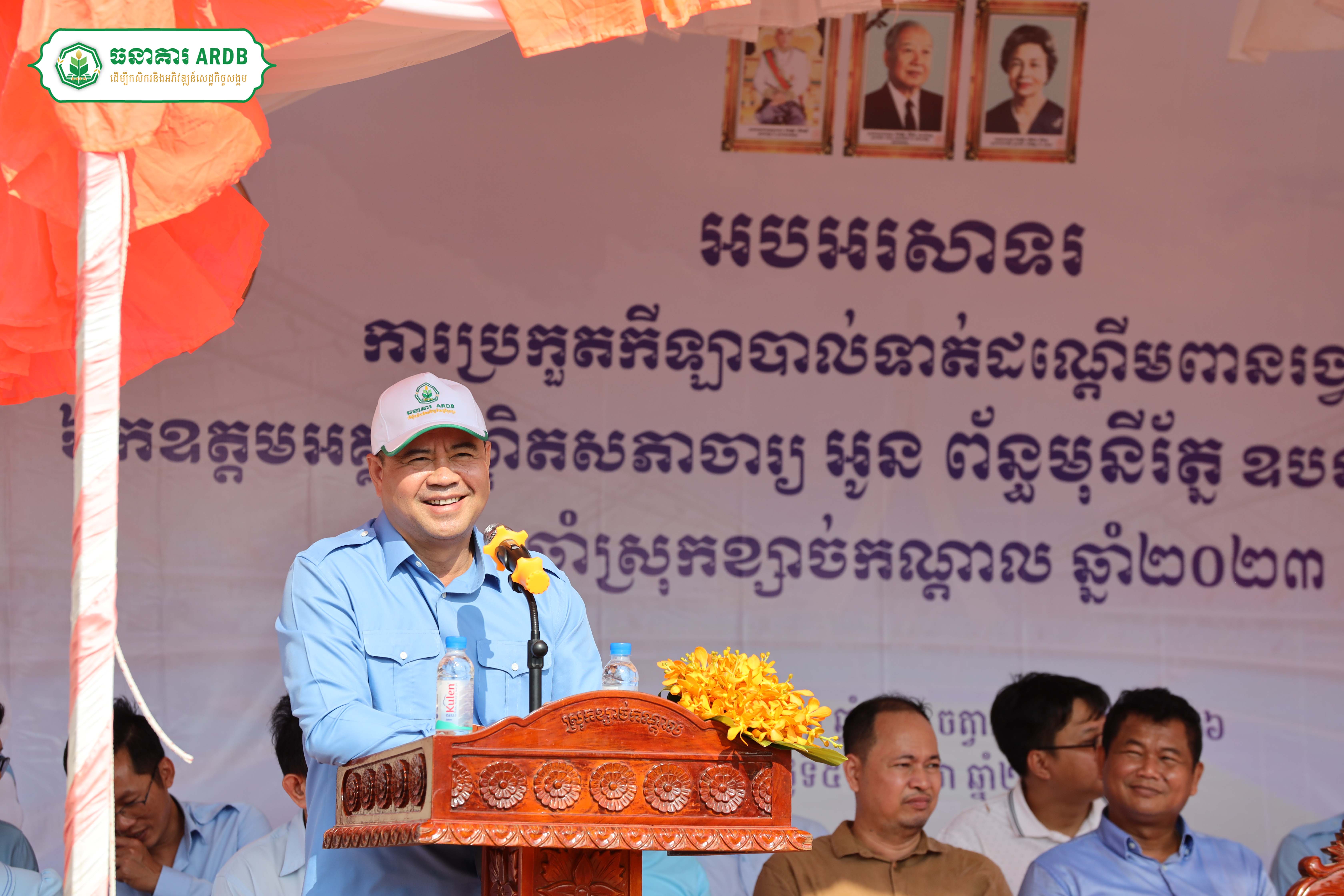 ស្រុកខ្សាច់កណ្តាល , ខេត្តកណ្តាល៖ នៅព្រឹកថ្ងៃ ពុធ ១៥កើត ខែចេត្រ ឆ្នាំខាល ចត្វាស័ក ព.ស.២៥៦៦ ត្រូវនឹងនឹងថ្ងៃ ទី៥ ខែមេសា ឆ្នាំ២០២៣ ឯកឧត្តមបណ្ឌិត កៅ ថាច ប្រតិភូរាជរដ្ឋាភិបាលទទួលបន្ទុកជាអគ្គនាយក ធនាគារអភិវឌ្ឍន៍ជនបទ និងកសិកម្ម និងជាប្រធានក្រុមការងារចលនាយុវជនរបស់ក្រុមការងារថ្នាក់កណ្ដាលចុះជួយស្រុកខ្សាច់កណ្តាល តំណាងដ៏ខ្ពង់ខ្ពស់ឯកឧត្តមអគ្គបណ្ឌិតសភាចារ្យ អូន ព័ន្ធមុនីរ័ត្ន ឧបនាយករដ្ឋមន្រ្តី រដ្ឋមន្រ្តីក្រសួងសេដ្ឋកិច្ច និងហិរញ្ញវត្ថុ, ប្រធានក្រុមការងារថ្នាក់កណ្ដាលចុះជួយខេត្តកណ្តាល និងជាប្រធានគណៈអចិន្ត្រៃយ៍ក្រុមការងារថ្នាក់កណ្ដាលចុះជួយស្រុកខ្សាច់កណ្តាល ស្រុកល្វាឯម និងស្រុកកៀនស្វាយ បានចូលរួមជាអធិបតី ក្នុងពិធីបើកការប្រកួតបាល់ទាត់យុវជនស្រុកខ្សាច់កណ្តាល ពានរង្វាន់ ឯកឧត្តមអគ្គបណ្ឌិតសភាចារ្យ អូន ព័ន្ធមុនីរ័ត្ន ប្រចាំឆ្នាំ២០២៣ ដែលប្រព្រឹត្តទៅនៅទីលានបាល់ទាត់វិទ្យាល័យ ហ៊ុន សែន ROTA ខ្សាច់កណ្ដាល។