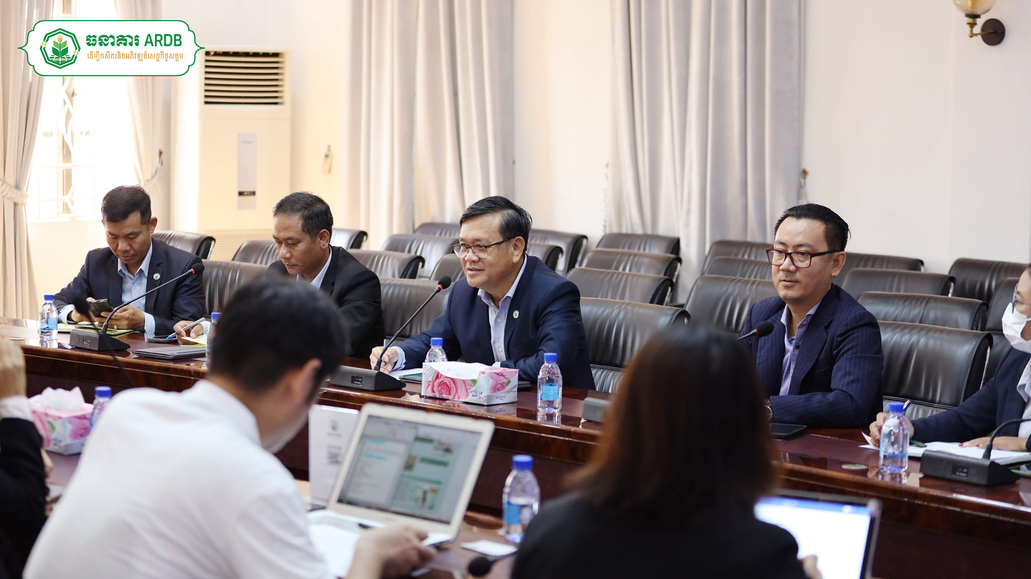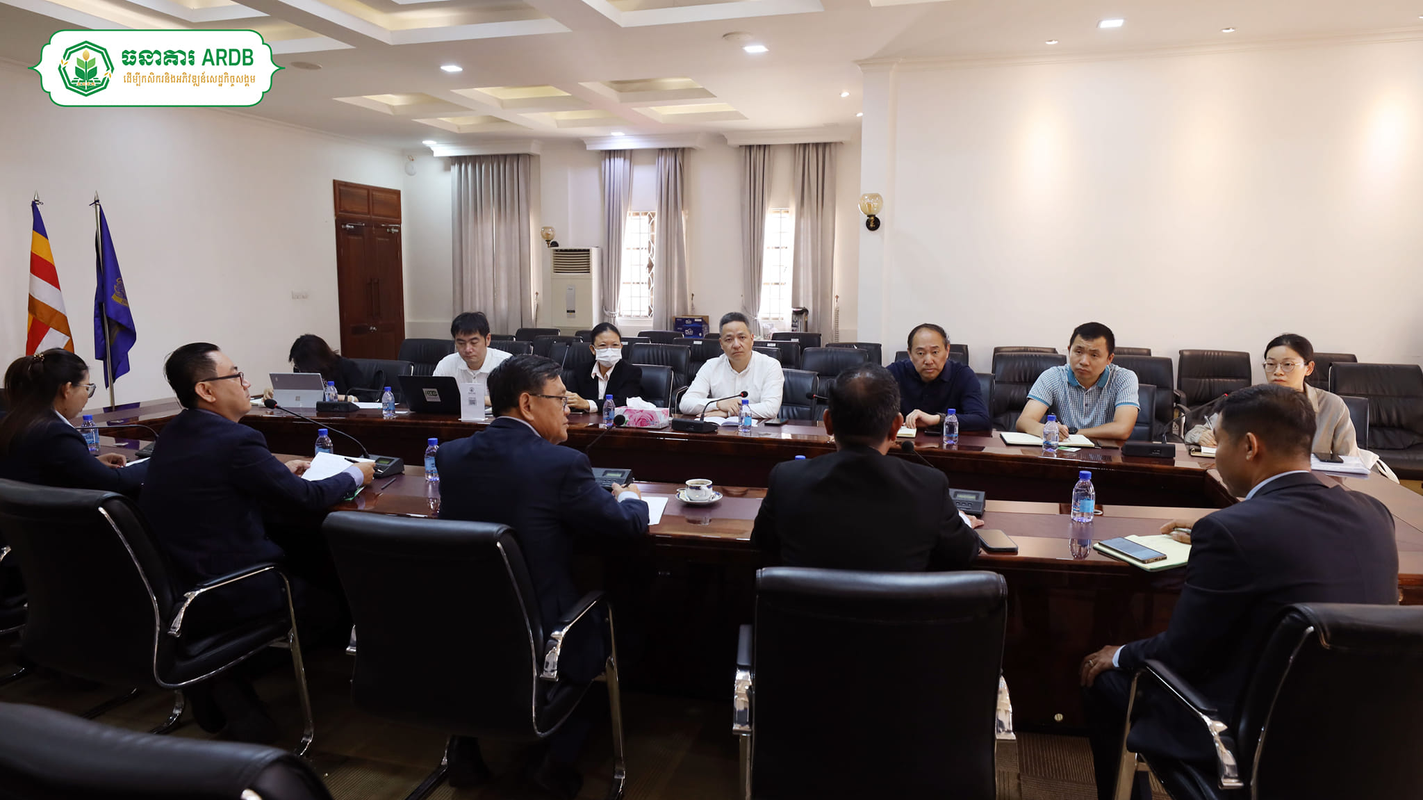 On May 15, 2023, H.E. Chan Seyha, deputy CEO of the Agricultural and Rural Development Bank (ARDB), representing H.E Dr. KAO Thach, the Royal Government Delegate in charge as CEO of ARDB, and colleagues had a discussion with the delegation of Foreign Economic Cooperation Center, Ministry of Agriculture and Rural Affairs of the People’s Republic of China (MARA.P.R. China) about Cambodia-China Agricultural Development Plan in order to attract Chinese investors to invest in the agricultural sector in Cambodia with a representative from the Ministry of Agriculture, Forestry and Fishery. In this discussion, ARDB has shared information regarding its policies, projects, and main role as the state-owned policy bank, which focuses on the agricultural sector and rural development. After the discussion, The Chinese delegations have learned more about ARDB and expects further cooperation in the future.
