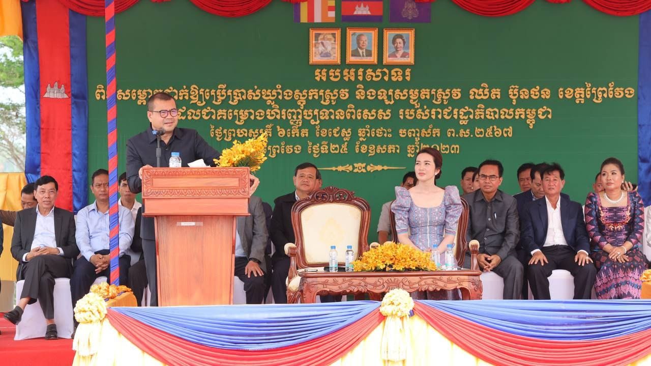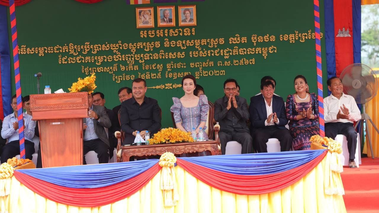 នាព្រឹកថ្ងៃព្រហស្បតិ៍ ៦កើត ខែជេស្ឋ ឆ្នាំថោះ បញ្ចស័ក ព.ស. ២៥៦៧ ត្រូវនឹងថ្ងៃទី២៥ ខែឧសភា ឆ្នាំ២០២៣៖ ឯកឧត្តមបណ្ឌិត កៅ ថាច ប្រតិភូរាជរដ្ឋាភិបាលទទួលបន្ទុកជាអគ្គនាយកធនាគារអភិវឌ្ឍន៍ជនបទ និងកសិកម្ម (ARDB) និងលោកជំទាវ ព្រមទាំងថ្នាក់ដឹកនាំនៃធនាគារ ARDB បានអញ្ជើញចូលរួមកម្មវិធីសម្ពោធដាក់ឱ្យប្រើប្រាស់ឃ្លាំងស្តុកស្រូវ និងឡសម្ងួតស្រូវ ឈិត ប៊ុនថន ខេត្តព្រៃវែង។