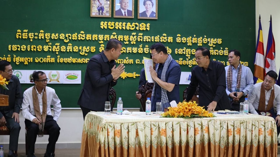 ខេត្តកំពង់ធំ៖ ព្រឹកថ្ងៃទី២៧ ខែមិថុនា ឆ្នាំ២០២៣ តបតាមការអញ្ជើញរបស់សហព័ន្ធស្រូវអង្ករកម្ពុជា (CRF) , ឯកឧត្តមបណ្ឌិត កៅ ថាច ប្រតិភូរាជរដ្ឋាភិបាលទទួលបន្ទុកជាអគ្គនាយកនៃធនាគារអភិវឌ្ឍន៍ជនបទ និងកសិកម្ម បានអញ្ជើញចូលរួមជាអធិបតីភាព ក្នុងពិធីចុះកិច្ចសន្យាកសិកម្ម រវាងសមាជិក ដែលជារោងម៉ាស៊ីនកិនស្រូវ និងសហគមន៍កសិកម្ម នៅខេត្តកំពង់ធំ ក្រោមអធិបតីភាព ឯកឧត្តម ឌិត ទីណា រដ្ឋមន្ត្រីក្រសួងកសិកម្ម រុក្ខាប្រមាញ និងនេសាទ។