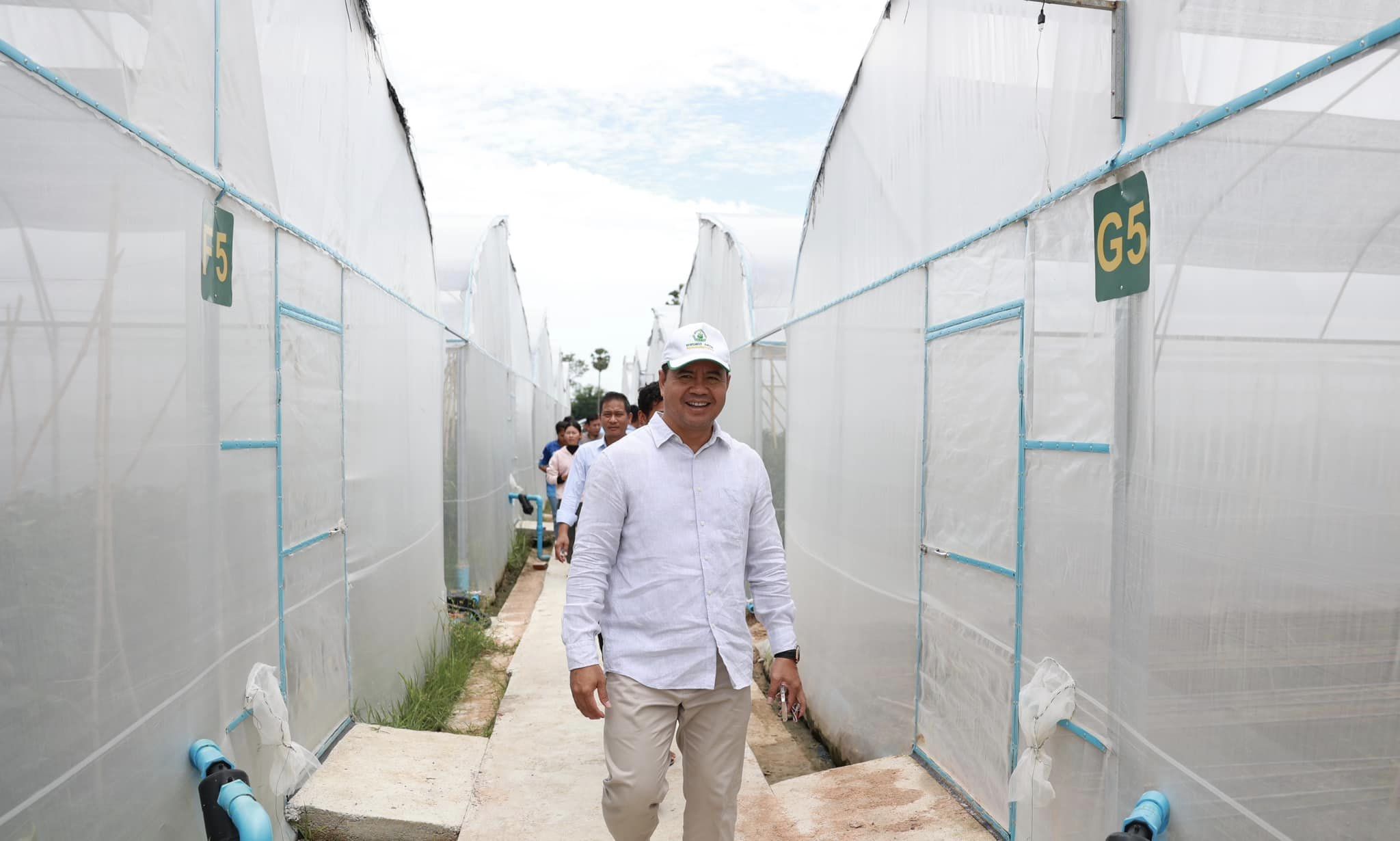 ខេត្តកណ្ដាល៖ នាព្រឹកថ្ងៃសៅរ៍ ១២ កើត ខែទុតិយាសាឍ ឆ្នាំថោះ បញ្ចស័ក ពុទ្ធសករាជ ២៥៦៧ ត្រូវនឹងថ្ងៃទី២៩ ខែកក្កដា ឆ្នាំ២០២៣ ឯកឧត្ដមបណ្ឌិត កៅ ថាច ប្រតិភូរាជរដ្ឋាភិបាលទទួលបន្ទុកជាអគ្គនាយកធនាគារអភិវឌ្ឍន៍ជនបទ និងកសិកម្ម បានចុះពិនិត្យកសិដ្ឋានបន្លែសុវត្ថិភាព “កសិដ្ឋានប្រសិទ្ធ Prasit Farm” មានទីតាំងស្ថិតក្នុងភូមិតាគោក ឃុំឈ្វាង ស្រុកពញាឮ ខេត្តកណ្ដាល។ ក្នុងឱកាសនោះដែរ ឯកឧត្ដមបណ្ឌិតប្រតិភូ បានផ្តល់អនុសាសន៍ណែនាំសំខាន់ៗដល់កសិករ និងអ្នកគ្រប់គ្រងកសិដ្ឋានផងដែរ។