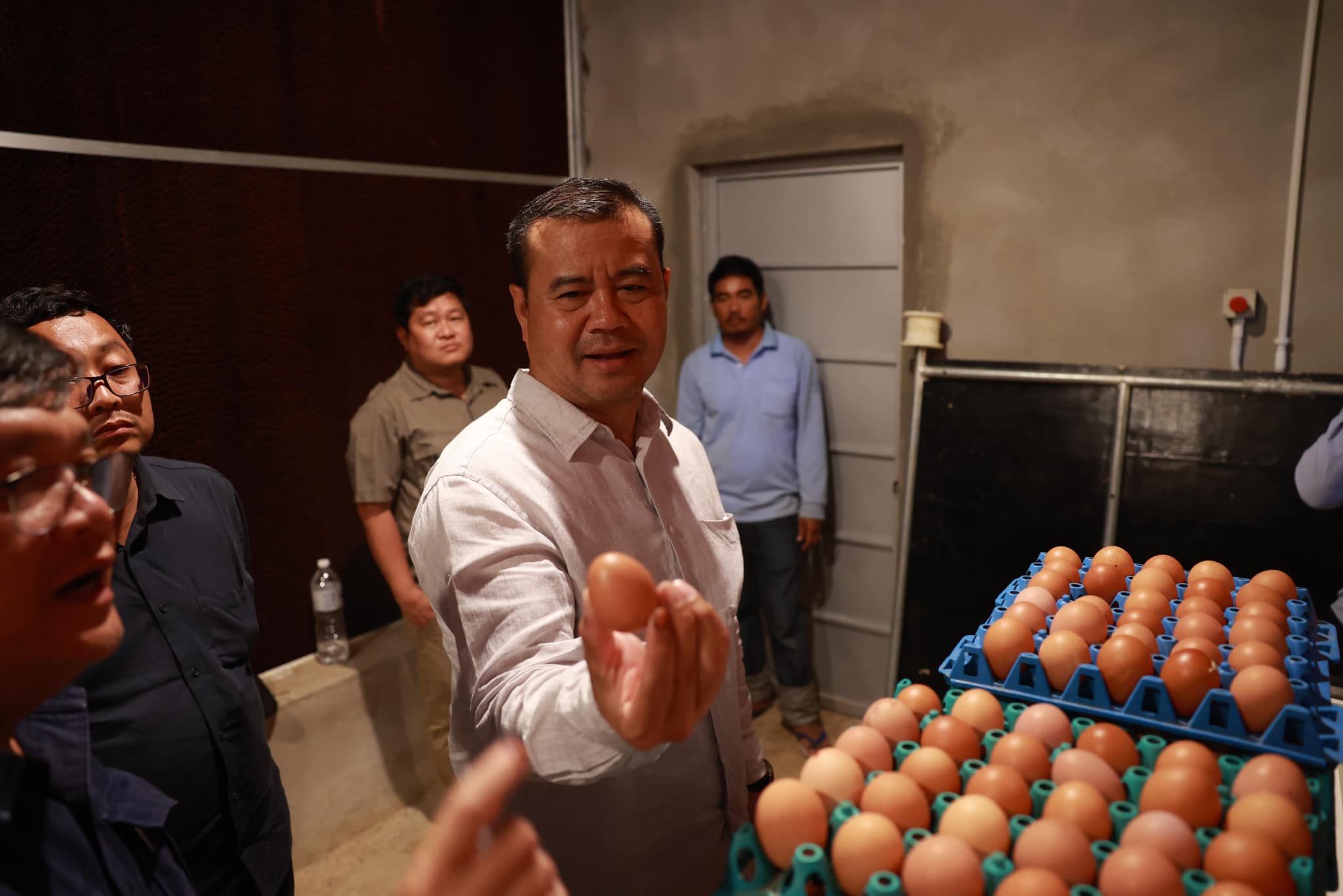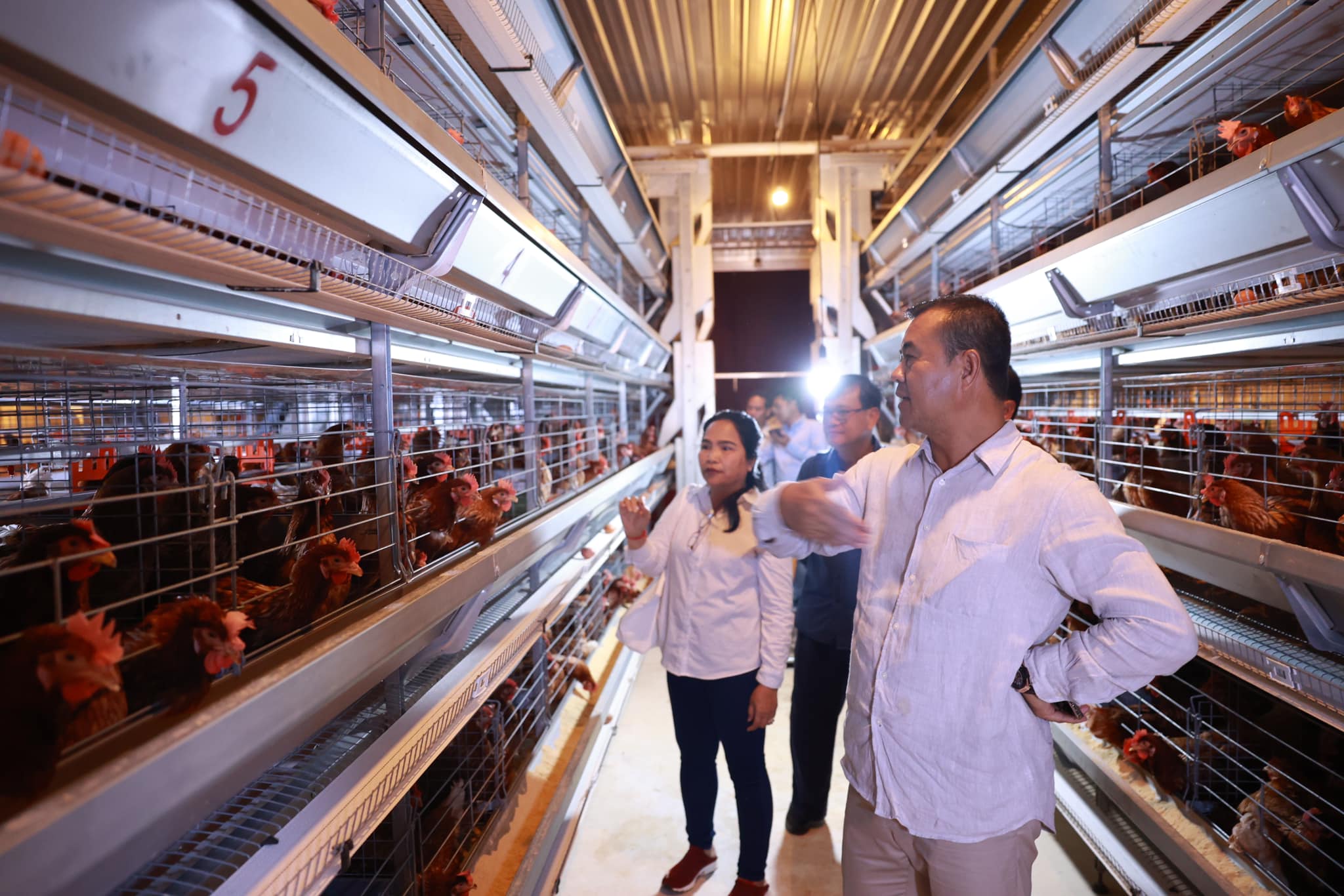 ប៉ៃលិន៖ នាល្ងាចថ្ងៃសៅរ៍ ១២ កើត ខែទុតិយាសាឍ ឆ្នាំថោះ បញ្ចស័ក ពុទ្ធសករាជ ២៥៦៧ ត្រូវនឹងថ្ងៃទី២៩ ខែកក្កដា ឆ្នាំ២០២៣ នេះ ឯកឧត្ដមបណ្ឌិត កៅ ថាច ប្រតិភូរាជរដ្ឋាភិបាលទទួលបន្ទុកជាអគ្គនាយកធនាគារអភិវឌ្ឍន៍ជនបទ និងកសិកម្ម បានចុះពិនិត្យខ្សែចង្វាក់ផលិតកម្មរបស់កសិដ្ឋានចិញ្ចឹមមាន់យកស៊ុត តាមបច្ចេកវិទ្យាទំនើប មួយកន្លែង ដែលមានមាន់ចំនួនជាង៣ម៉ឺនក្បាល នៅសង្កាត់ប៉ាងរលឹម ក្រុងប៉ៃលិន ខេត្តប៉ៃលិន។