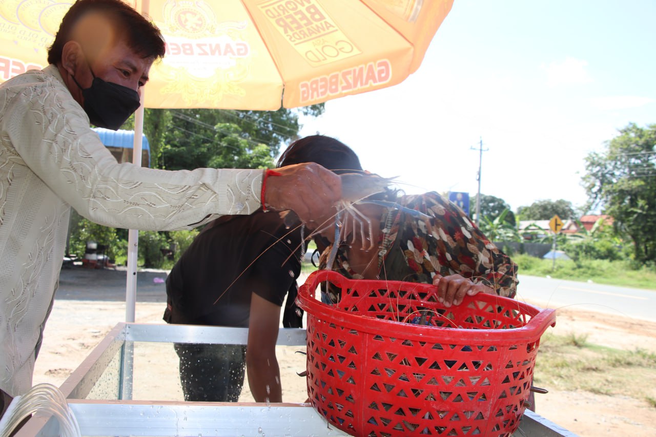 During the Pchum Ben festival in 2023, it’s noticed that people living in Sambour commune, Traing district, Takeo province seem to eat more natural lobsters that raised on local farms. According to Mr. Sap Sarun, the owner of the farm said that “After the first day of Kan Ben is coming, his lobster sales began to increase, with a daily sales more than 10 kilograms. Especially, on the Pchum Ben Day, he can sell up to 60 kilograms per day.