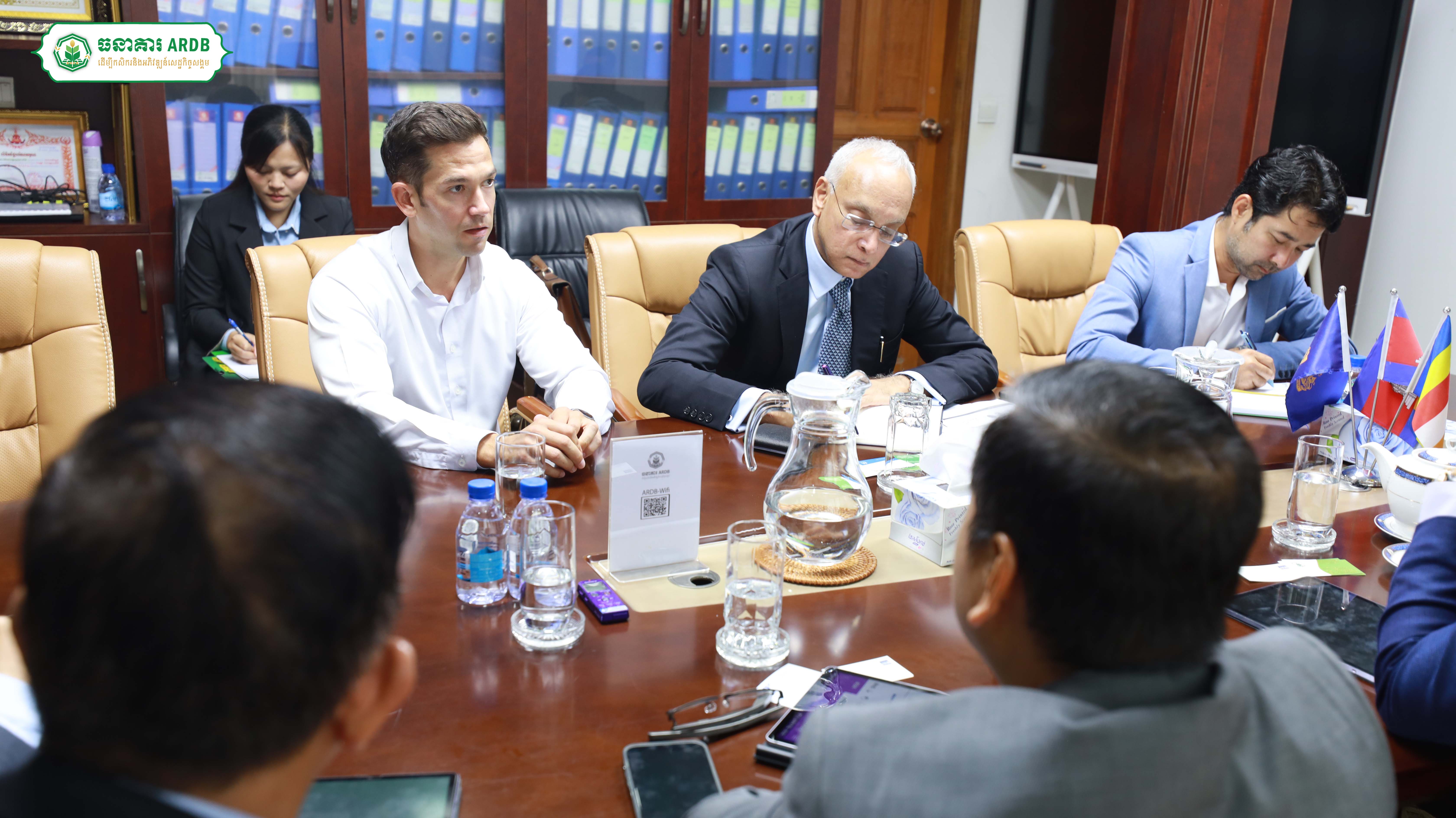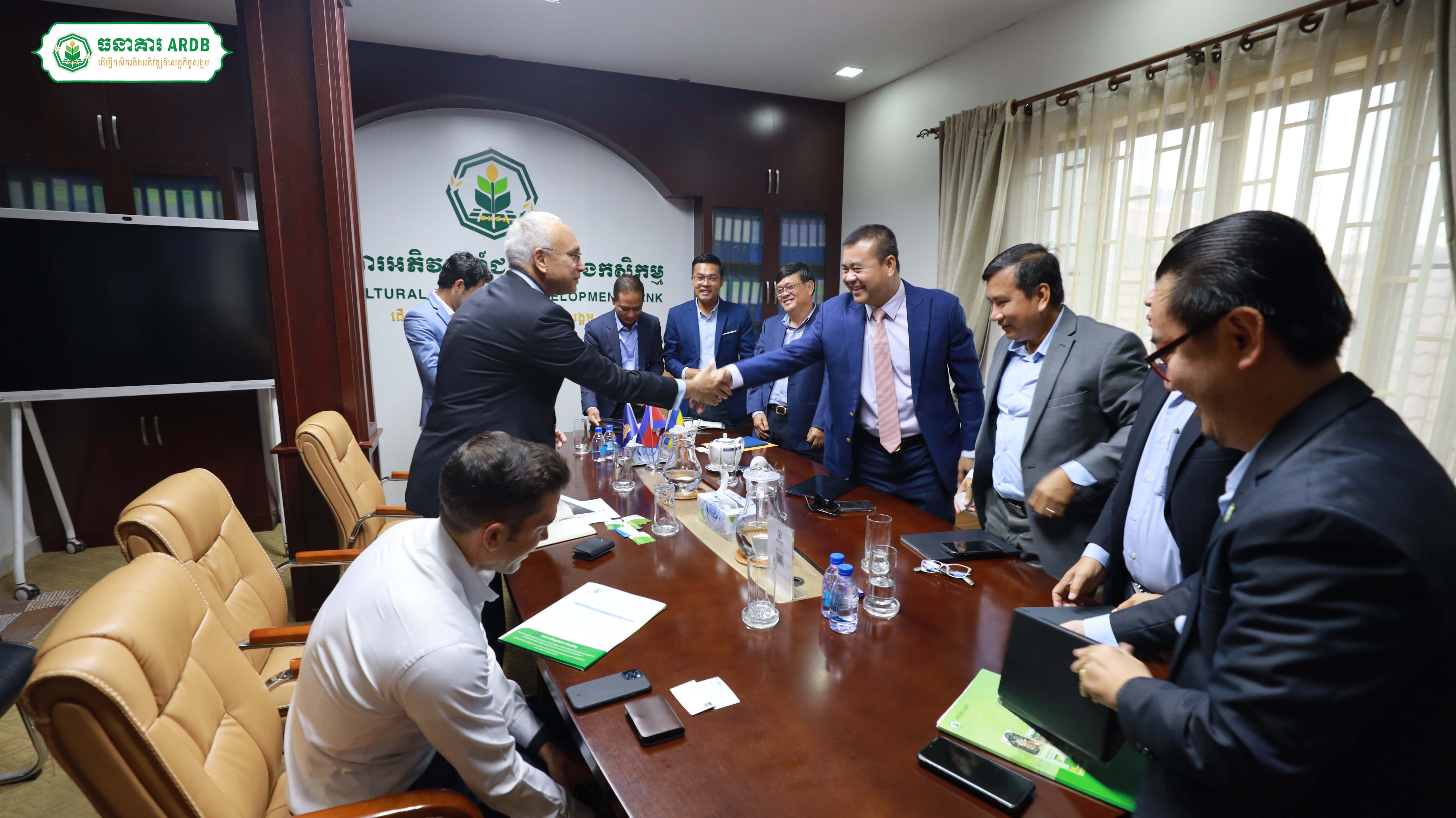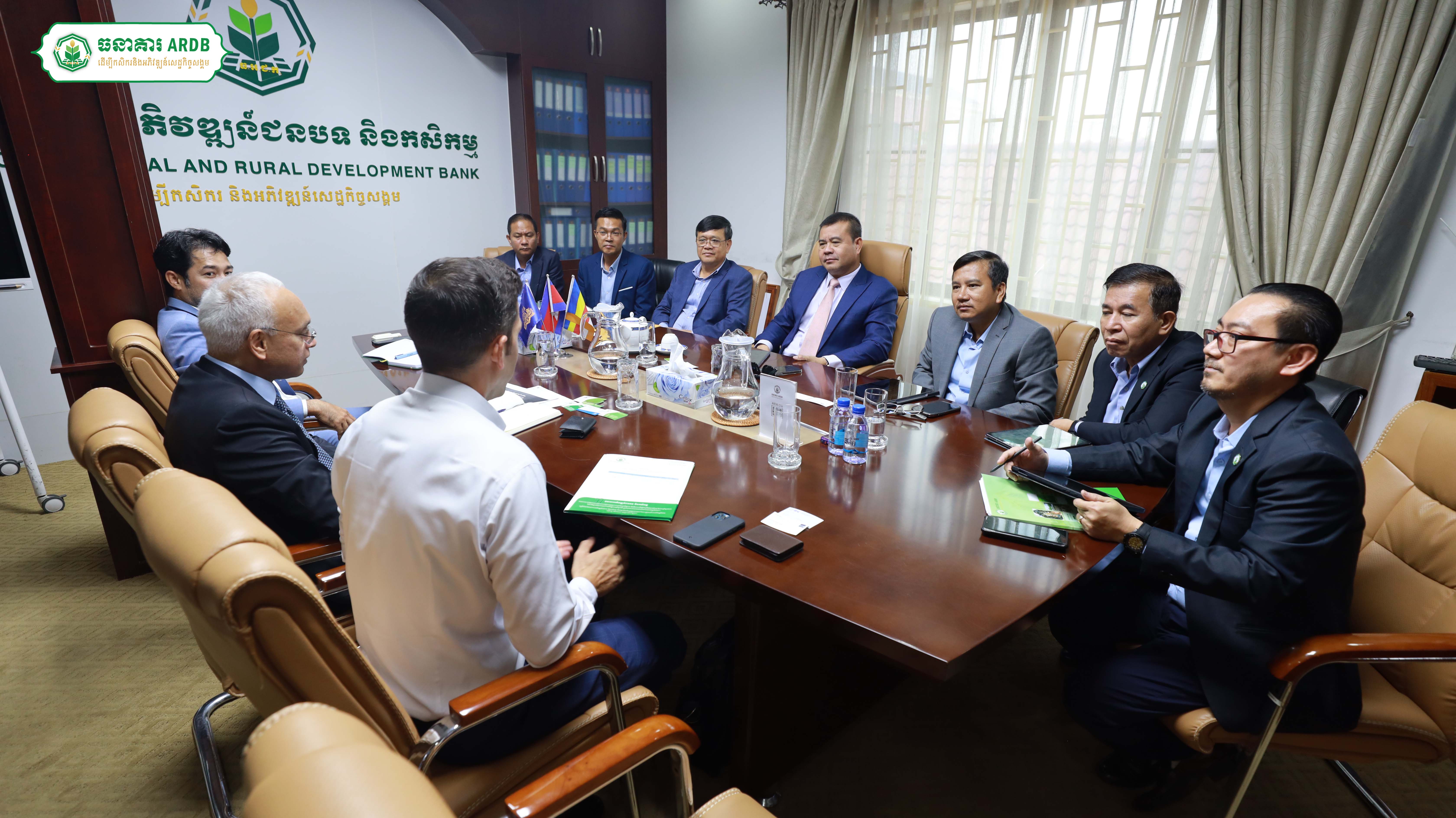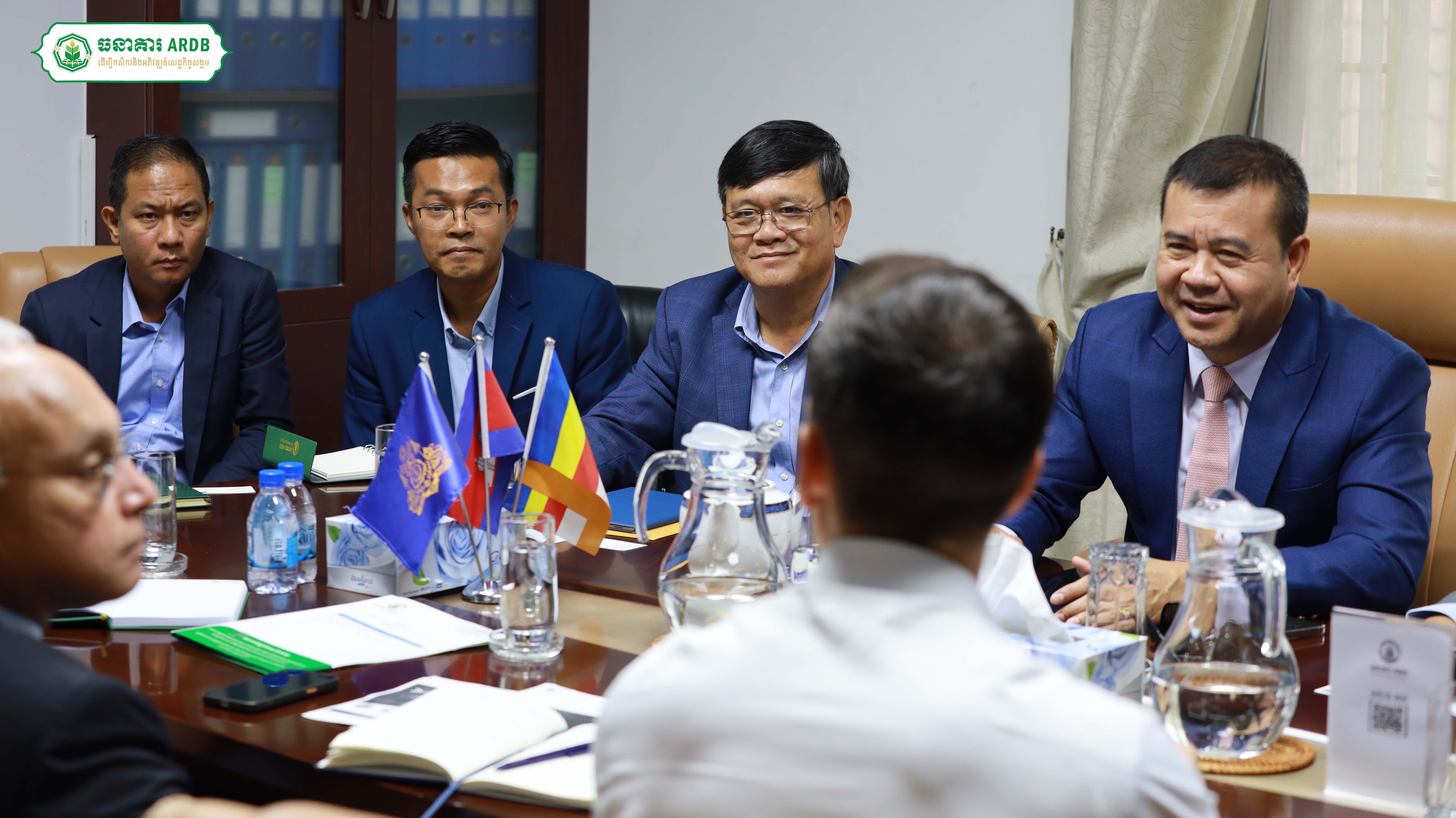 ឯកឧត្តមបណ្ឌិត កៅ ថាច ប្រតិភូរាជរដ្ឋាភិបាលទទួលបន្ទុកជាអគ្គនាយកធនាគារអភិវឌ្ឍន៍ជនបទ និងកសិកម្ម (ARDB) អមដោយសហការី និងមានការចូលរួមពីតំណាងក្រុមហ៊ុន Mekong Strategic Capital (MSC) បានទទួលជួបប្រជុំជាមួយតំណាងធនាគារអភិវឌ្ឍន៍អាស៊ី (ADB) ដើម្បីពិភាក្សាលើកិច្ចសហការក្នុងក្របខ័ណ្ឌគម្រោងហិរញ្ញប្បទានអាកាសធាតុនៅកម្ពុជា (Cambodian Climate Financing Facility, CCFF) មានទំហំវិនិយោគសរុបចំនួន ១០០ លានដុល្លារអាម៉េរិក ដែលស្ថិតក្រោមមូលនិធិអាកាសធាតុបៃតង (GCF) ព្រមទាំងទទួលបានការគាំទ្រអនុវត្តដោយរាជរដ្ឋាភិបាលកម្ពុជា។ ជាលទ្ធផល តំណាង ADB បានបង្ហាញពីចំណាប់អារម្មណ៍លើការចូលរួមសហហិរញ្ញប្បទាន (Co-Finance) ក្នុងការអនុវត្តគម្រោងនេះ និងចាប់ផ្តើមរៀបចំដំណើរការនីតិវិធីសម្រាប់ចូលរួមអនុវត្ត, នាព្រឹកថ្ងៃព្រហស្បតិ៍ ១៤ រោច ខែបុស្ស ឆ្នាំថោះ បញ្ចស័ក ព.ស. ២៥៦៧ ត្រូវនឹងថ្ងៃទី៨ ខែកុម្ភៈ ឆ្នាំ២០២៤ នៅទីស្នាក់ការកណ្តាលធនាគារ ARDB។