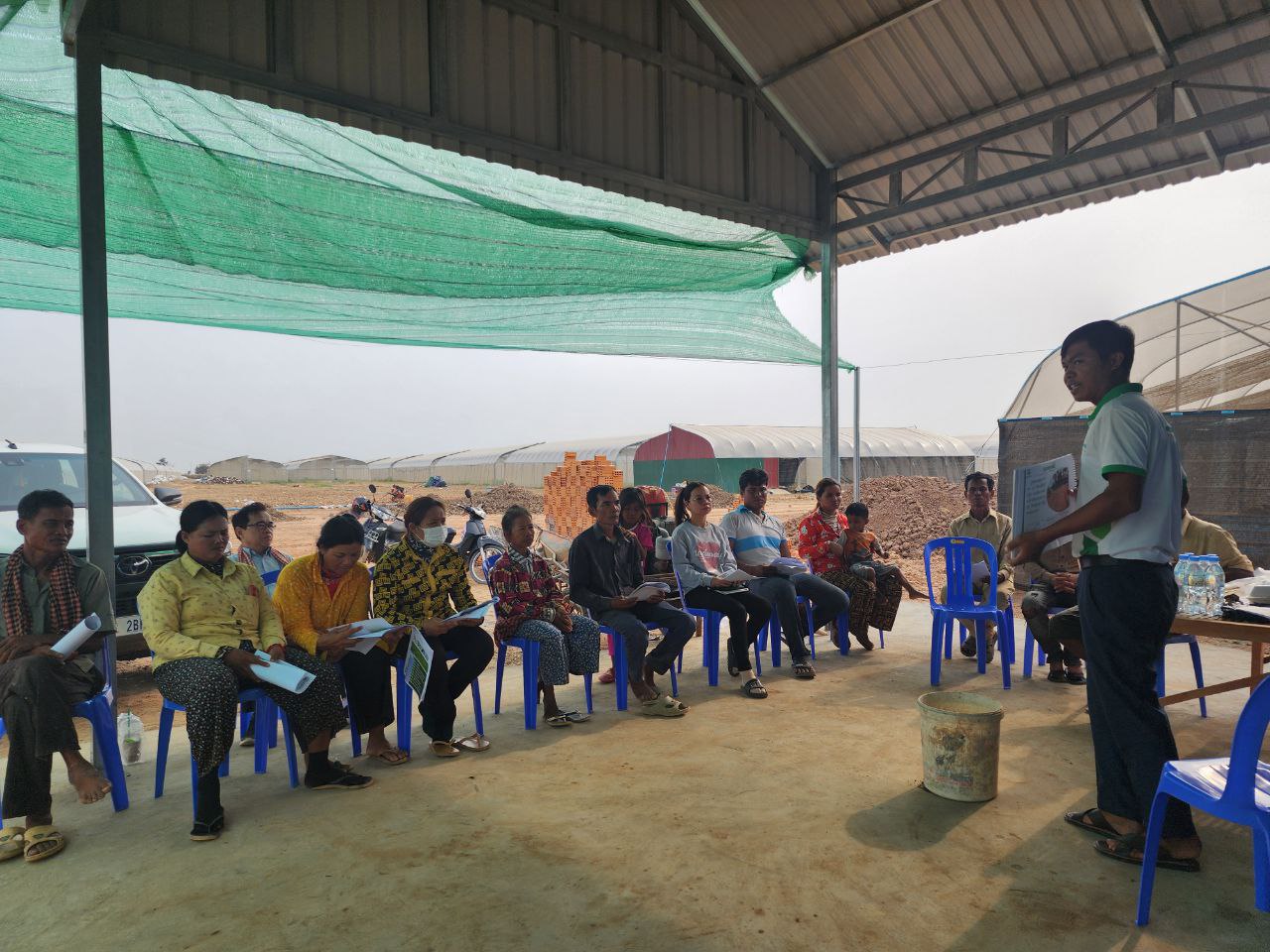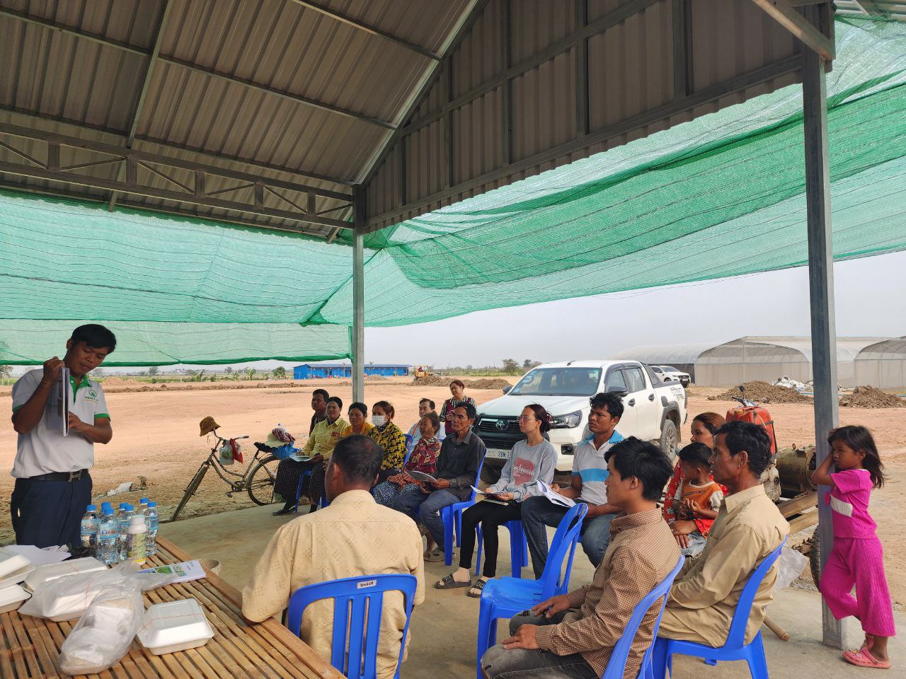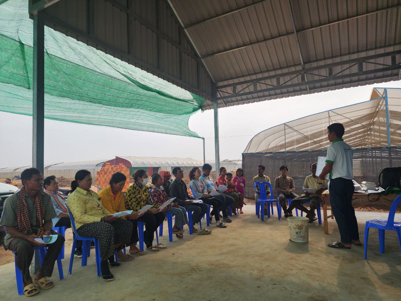 After receiving a honor from H.E. Dr. KAO Thach, Royal Government Delegate in charge as Chief Executive Officer of Agricultural and Rural Development Bank (ARDB), ARDB Government Policy Support Committee had organized additional training on vegetable production in net house to farmers who join with ARDB smart agriculture project on March, 28th 2024 at Chey Thom Farm located at Chey Thom commune, Ksach Kandal district. There was 17 participants with 7 women, also farmers from Kampong Ompel commune, Ksach Kandal district as well.
