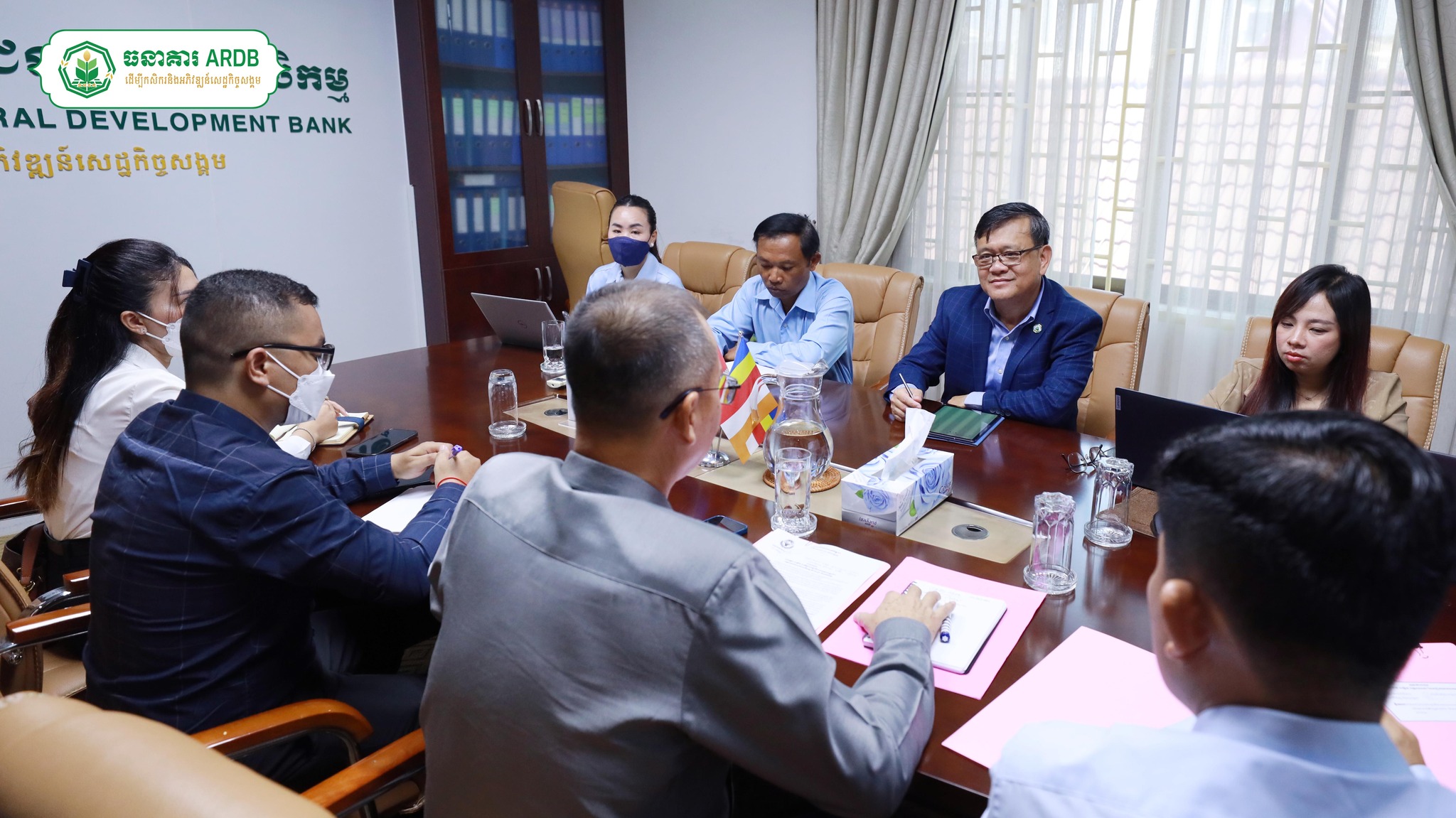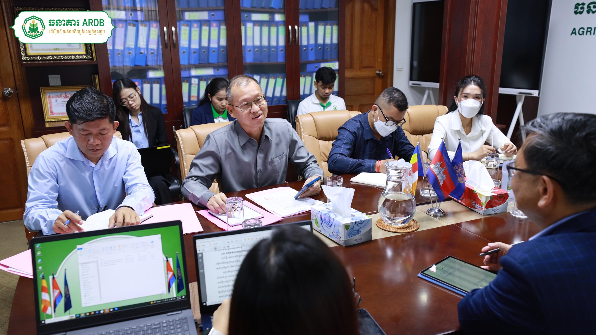 After receiving an honor from H.E. Dr. KAO Thach, Royal Government Delegate in charge as Chief Executive Officer of Agricultural and Rural Development Bank (ARDB), H.E. CHAN Seyha, accompanied by colleagues, has joined the meeting with delegate of National Audit Authority of Cambodia to kick off the starting of compliance of law and other relevant regulations on revenue-expenditure management and state assets management of ARDB as well as follow up the previous recommendation implementation, on April 5th ,2024.