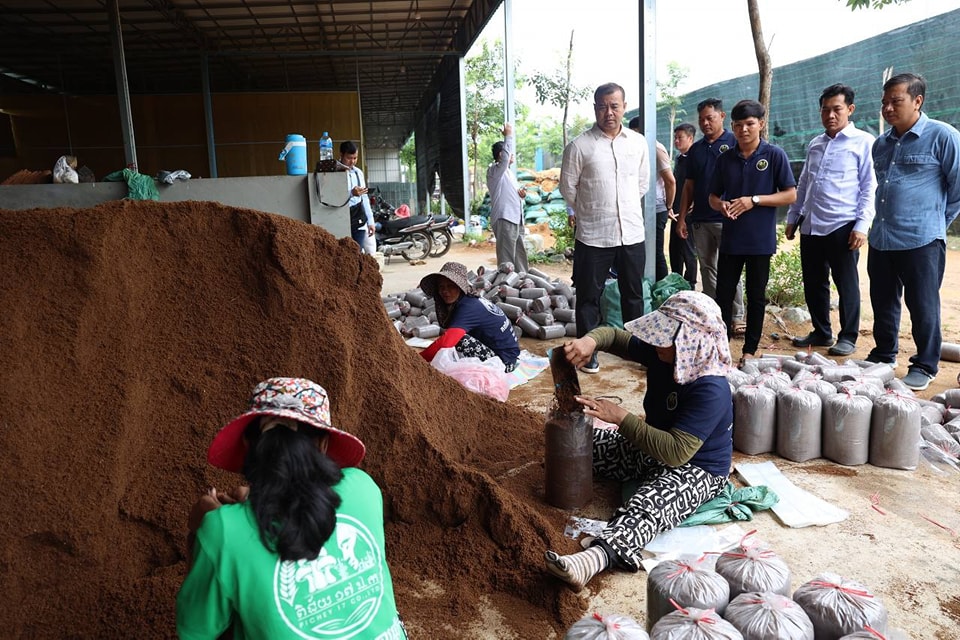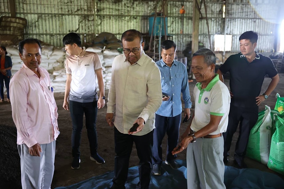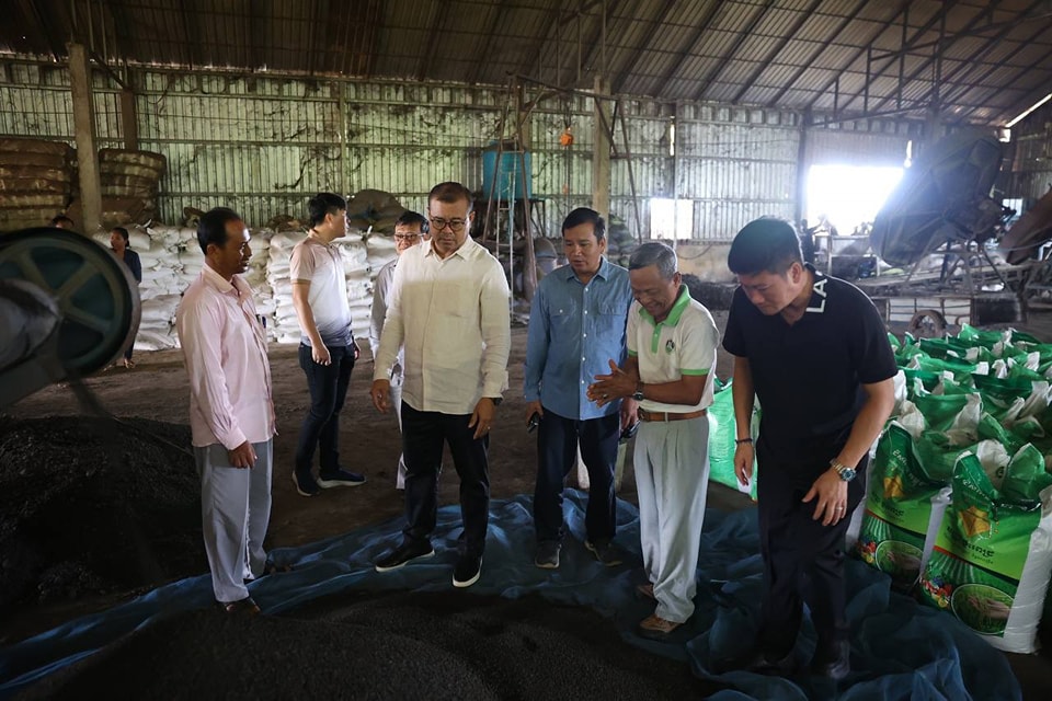 សៀមរាប៖ នៅព្រឹកថ្ងៃទី១៥ ខែកក្កដា ឆ្នាំ២០២៤ ឯកឧត្តមបណ្ឌិត កៅ ថាច ប្រតិភូរាជរដ្ឋាភិបាលទទួលបន្ទុកជាអគ្គនាយក ធនាគារអភិវឌ្ឍន៍ជនបទ និងកសិកម្ម និងសហការី បានបន្តដំណេីរចុះបំពេញការងារដេីម្បីពិនិត្យវឌ្ឍវនភាព និងខ្សែច្រវាក់ផលិតកម្មរបស់សិប្បកម្មជីសរីរាង្គផ្ទះពេជ្រ មានទីតាំងនៅសង្កាត់ជ្រាវ ក្រុងសៀមរាប ខេត្តសៀមរាប ដែលសិប្បកម្មនេះជាដៃគូរបស់ធនាគារ ARDB។ សិប្បកម្មនេះ ត្រូវបានបង្កេីតឡេីង ដោយសហគមន៍កសិកម្មសម្ព័ន្ធខ្មែរអង្គរ នៅឆ្នាំ២០១៩ ក្នុងគោលបំណងផលិតជីសរីរាង្គដែលមានគុណភាពផ្គត់ផ្គង់ជូនសមាជិកសហគមន៍ និងប្រជាកសិករ។ លោកប្រធានសហគមន៍បានឱ្យដឹងថា ការចាប់ផ្តេីមផលិតជីសរីរាង្គផ្ទះពេជ្រ គឺចំពេលដែលពិភពលោកជួបបញ្ហាប្រឈមខ្លាំងដោយជំងឺកូវីដ១៩ និងបន្ទាប់មកទៀតបញ្ហាសង្រ្គាមរុស្សីនិងអ៊ុយក្រែន ប៉ុន្តែក៏ផ្ដល់ឱកាសដល់សហគមន៍ក្នុងការចាប់យកទីផ្សារ ដែលបច្ចុប្បន្នសិប្បកម្មមានសមត្ថភាពផលិតជីសរីរាង្គមានគុណភាពបានពី ៥ ទៅ ៦ តោនក្នុង១ថ្ងៃ និងផ្គត់ផ្គង់ទីផ្សារតាមបណ្តាខេត្តមួយចំនួន រួមមាន ខេត្តសៀមរាប កំពង់ធំ ព្រះវិហារ កំពង់ចាម និងពោធិ៍សាត់។ សហគមន៍មានគម្រោងពង្រីកសមត្ថភាពបន្ថែម ដោយបំពាក់ឧបករណ៍ពាក់កណ្តាលស្វ័យប្រវត្តិ ដេីម្បីកាត់បន្ថយកម្លាំងពលកម្ម និងបង្កេីនផលិតភាព។