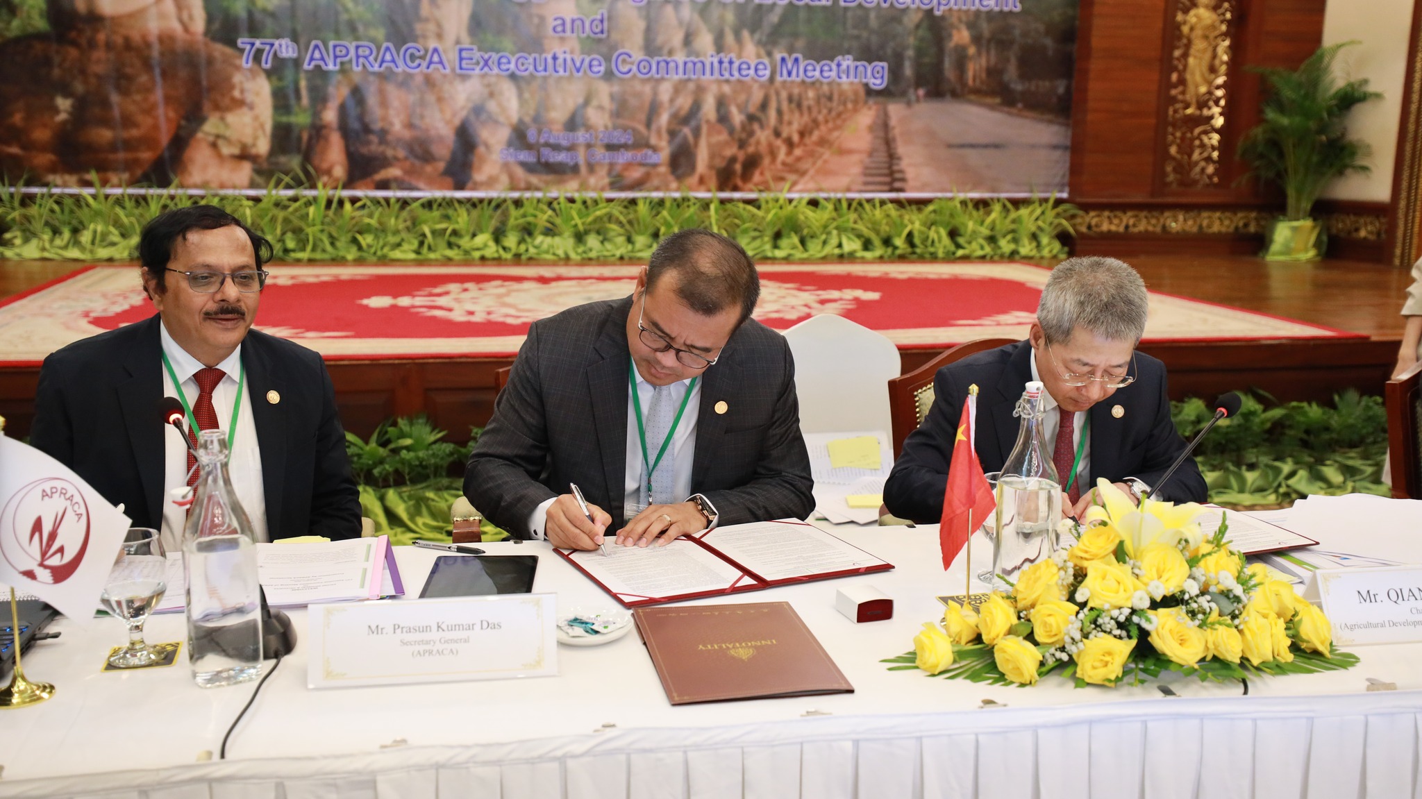 Siem Reap: On August 8, 2024, HE Dr. KAO Thach, Delegate of Royal Government of Cambodia, as the Chief Executive Officer of ARDB, signed a Memorandum of Understanding (MoU) with APRACA. The benefits of the MOU that the Rural Development and Agriculture Bank will receive are in line with the Pentagon Strategy – Phase 1 of Royal Government of Cambodia. The creation of the Center of Excellence, APRACA will strengthen the capacity of staff to design mechanisms for rural financing, strengthen technical skills and contribute to building trust and prestige. The Center of Excellence will further strengthen APRACA’s capacity to expand its knowledge of rural finance, innovation and innovative rural financial model design. In addition, as a member of APRACA, ARDB will get the exchange knowledge and experiences in agricultural financing between member countries in the Asia-Pacific region.
