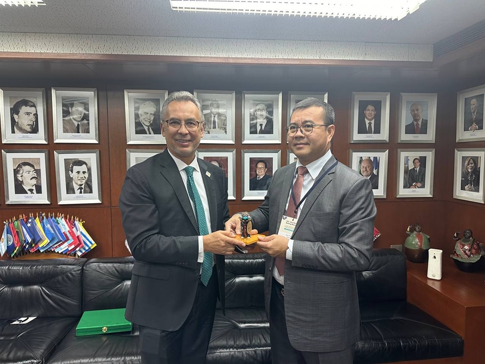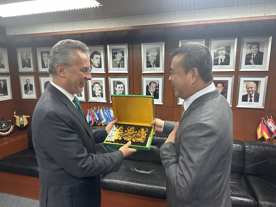 ទីក្រុងលីម៉ា ប្រទេសប៉េរូ៖ ឆ្លៀតក្នុងឱកាស អញ្ជើញថ្លែងសុន្ទរកថា បើក កម្មវិធី កិច្ចប្រជុំអន្តរជាតិ នៃធនាគារអភិវឌ្ឍន៍សម្រាប់តំបន់ឡាទីនអាមេរិក -តំបន់ខារីប៊ែន និងតំបន់អាស៊ីប៉ាស៊ីហ្វិក, ឯកឧត្តមបណ្ឌិត កៅ ថាច ប្រតិភូរាជរដ្ឋាភិបាលទទួលបន្ទុកជាអគ្គនាយកនៃធនាគារ ARDB និងជាប្រធានសមាគមន៍គ្រឹះស្ថានហិរញ្ញវត្ថុអភិវឌ្ឍន៍តំបន់អាស៊ី និងប៉ាស៊ីហ្វិក (ADFIAP) បានអញ្ជើញទទួលជួបពិភាក្សាការងារជាមួយលោក Edgardo Alvarez អគ្គលេខាធិការ សមាគមន៍គ្រឹះស្ថានហិរញ្ញវត្ថុអភិវឌ្ឍន៍តំបន់ឡាទីនអាមេរិក និងខារីប៊ែន (ALIDE) ព្រមទាំងថ្នាក់ដឹកនាំគ្រឹះស្ថានហិរញ្ឋ្ញវត្ថុអភិវឌ្ឍន៍មួយចំនួនដែលជាសមាជិកនៃសមាគមន៍នេះផងដែរ។