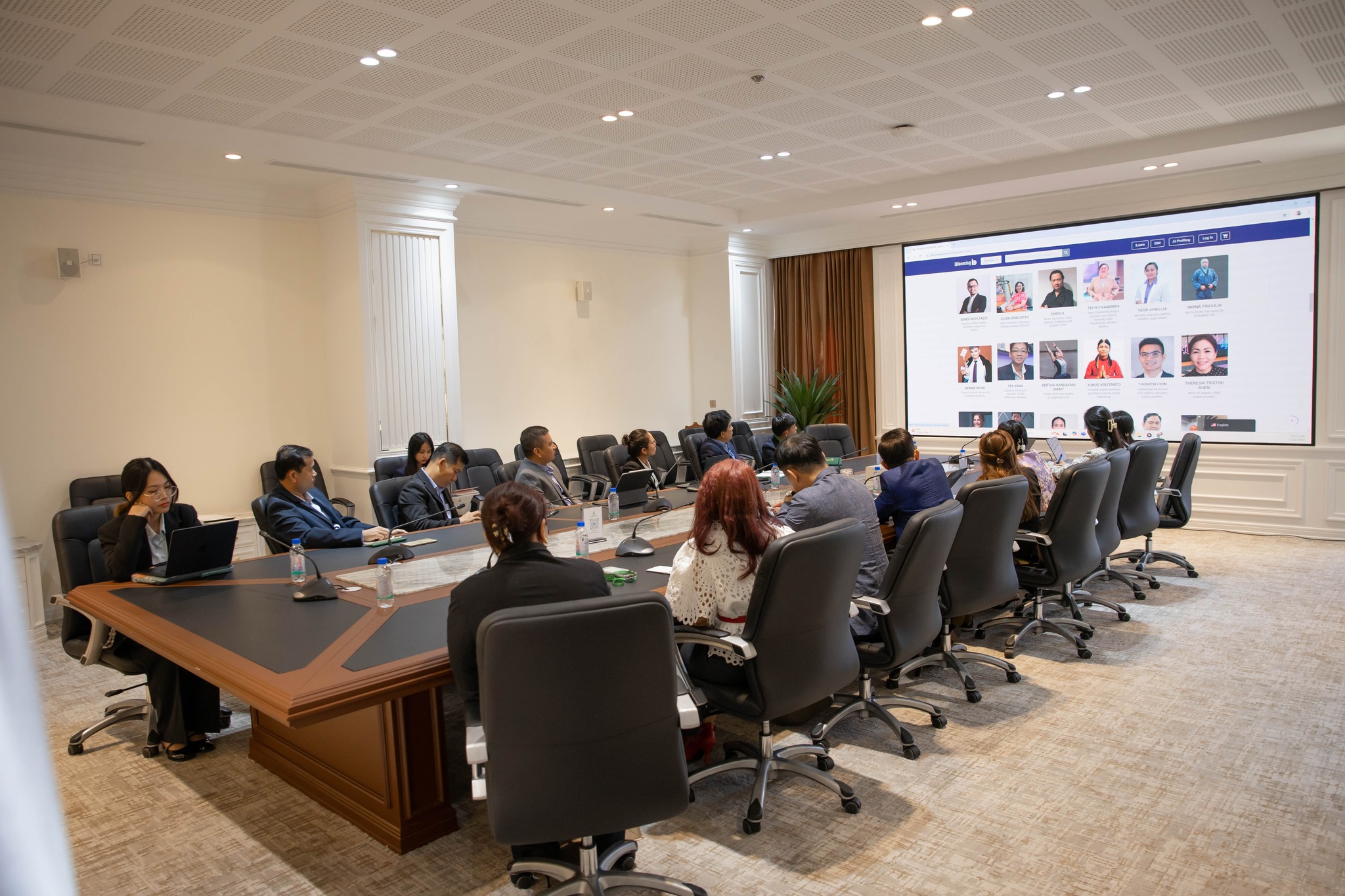 After Mr. Onggy Hianata, Founder and Global Strategist for iBlooming, and his team presented iBlooming’s learning platform and AI-powered translation technology, H.E. Ban Lim and colleagues expressed interests in iBlooming’s initiatives and noted that ARDB will explore areas of cooperation with the company. Taking this opportunity, H.E. Ban Lim also recommended iBlooming to consider including various other key training content related to green financing and banking operations, which are essential topics for the banking and finance sector.