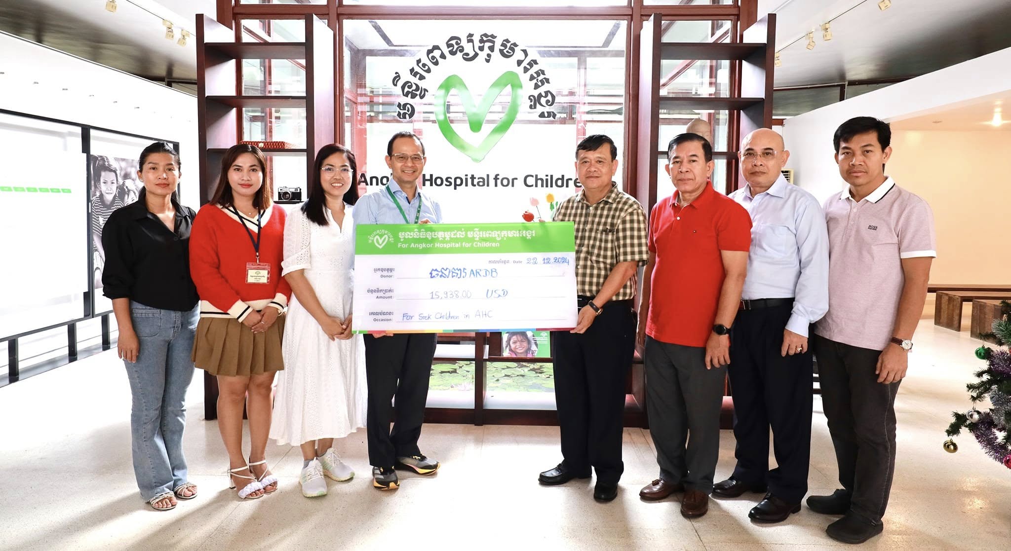 ខេត្តសៀមរាប: នាព្រឹកថ្ងៃអាទិត្យទី២២ ខែធ្នូ ឆ្នាំ២០២៤ តំណាងដ៏ខ្ពង់ខ្ពស់របស់ធនាគារARDB ឯកឧត្តម ចាន់ សីហា និងឯកឧត្តម ប៉ិច សានី អគ្គនាយករងធនាគារ អមដំណើរដោយគណៈប្រតិភូរបស់ធនាគារ ARDB បាននាំយកថវិកាសប្បុរសធម៌ ចំនួន ១៥ ៩៣៨ ដុល្លារអាម៉េរិក ជួយដល់មន្ទីរពេទ្យកុមារអង្គរ ខេត្តសៀមរាប ដែលជាថវិកាផ្តួចផ្តើមដោយ ឯកឧត្តមបណ្ឌិត កៅ ថាច ប្រតិភូរាជរដ្ឋាភិបាលទទួលបន្ទុកជាអគ្គនាយកធនាគារអភិវឌ្ឍន៍ជនបទ និងកសិកម្ម ចូលរួមដោយបុគ្គលិកធនាគារ រោងម៉ាស៊ីនកិនស្រូវ និងភ្ញៀវកិត្តិយសដែលបានចូលរួមក្នុងរាត្រីពិសារអាហារសាមគ្គីជួបជុំបុគ្គលិកធនាគារARDB ដែលប្រារព្ធកាលពីថ្ងៃទី២១ ខែធ្នូ ឆ្នាំ២០២៤ នេះ។