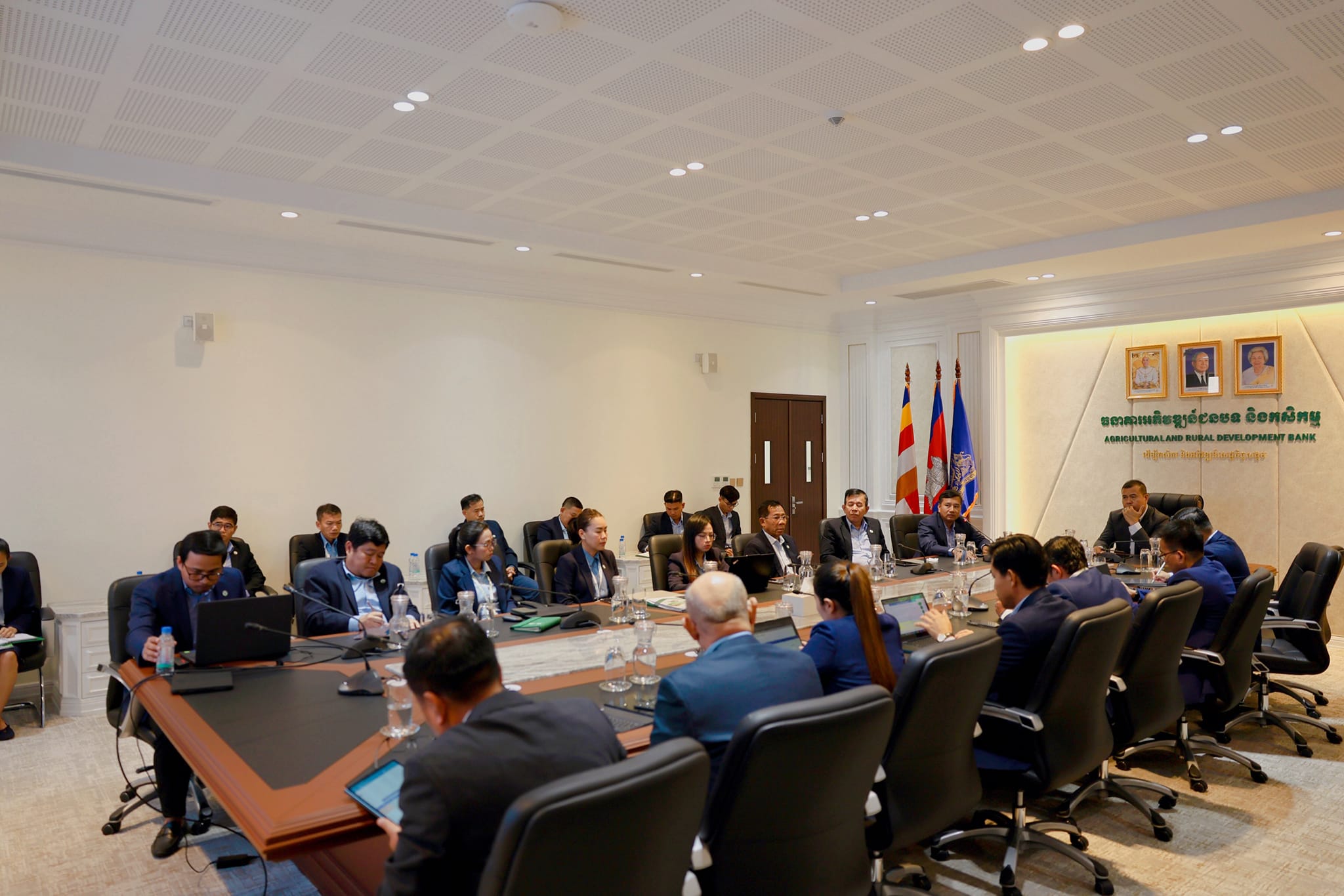នៅទីស្នាក់ការកណ្តាលរបស់ធនាគារអភិវឌ្ឍន៍ជនបទ និងកសិកម្ម (ARDB)៖ នាព្រឹកថ្ងៃអង្គារ ទី០៨ ខែមេសា ឆ្នាំ២០២៥, ឯកឧត្តមបណ្ឌិត កៅ ថាច ប្រតិភូរាជរដ្ឋាភិបាលទទួលបន្ទុកជាអគ្គនាយកធនាគារអភិវឌ្ឍន៍ជនបទ និងកសិកម្ម បានដឹកនាំកិច្ចប្រជុំថ្នាក់ដឹកនាំប្រចាំខែ ដើម្បីពិនិត្យ និងពិភាក្សាអំពី៖ វឌ្ឍនភាពការងារសំខាន់ៗប្រចាំខែរបស់ធនាគារ ARDB ដែលអនុវត្តស្របតាមផែនការសកម្មភាពប្រចាំឆ្នាំរបស់ធនាគារ ARDB និងរបៀបវារៈផ្សេងៗទៀត ។