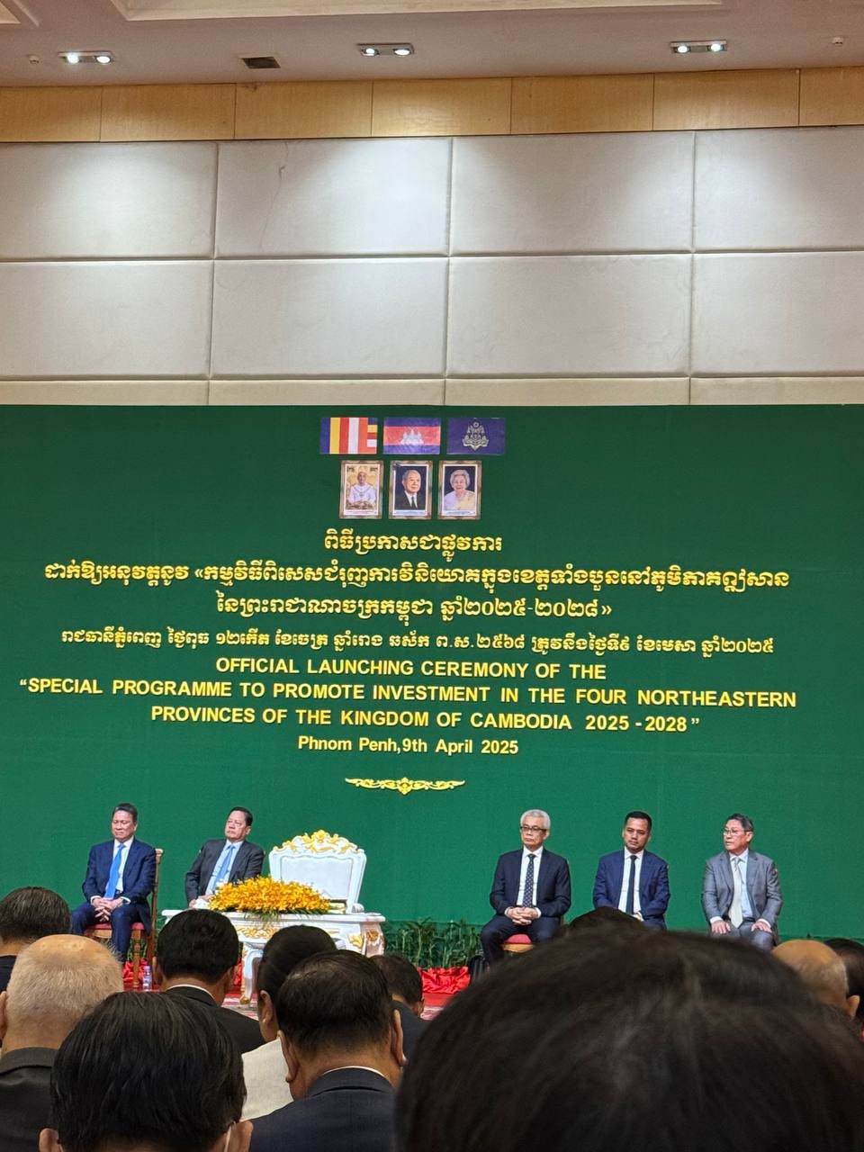 នៅក្នុងពិធីប្រកាសដាក់ឱ្យអនុវត្តជាផ្លូវការនូវ “កម្មវិធីពិសេសជំរុញការវិនិយោគក្នុងខេត្តទាំងបួននៅភូមិភាគឦសាននេះ ក្រោមអធិបតីភាពដ៏ខ្ពង់ខ្ពស់បំផុត សម្តេចមហាបវរធិបតី ហ៊ុន ម៉ាណែត នាយករដ្ឋមន្ត្រីនៃព្រះរាជាណាចក្រកម្ពុជា។