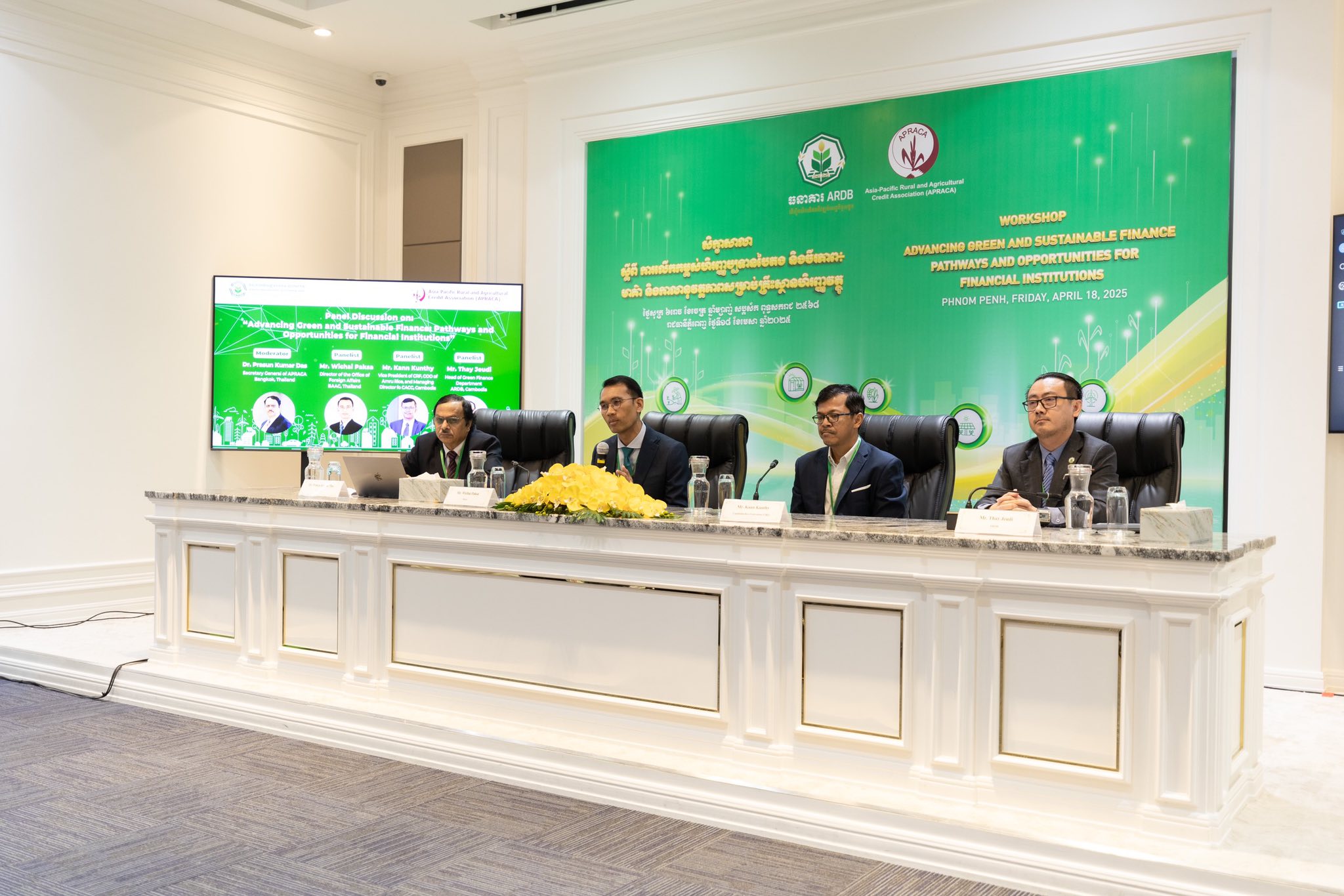 ភ្នំពេញ៖ឯកឧត្តមបណ្ឌិត កៅ ថាច ប្រតិភូរាជរដ្ឋាភិបាលទទួលបន្ទុកជា អគ្គនាយកធនាគារអភិវឌ្ឍន៍ជនបទ និងកសិកម្ម ARDB នៅថ្ងៃទី១៨ខែមេសាឆ្នាំ២០២៥នេះ បានអញ្ជើញប្រកាសបើកសិក្ខាសាលាស្តីអំពីការលើកកម្ពស់ហិរញ្ញប្បទានបៃតង និងចីរភាព មាគ៌ា និងកាលានុវត្តភាពសម្រាប់គ្រឹះស្ថានហិរញ្ញវត្ថុដែលរៀបចំឡើងនៅទីស្នាក់ការកណ្តាលរបស់ធនាគារ ARDB ស្ថិតនៅសង្កាត់ព្រែកលៀប ខណ្ឌជ្រោយចង្វាររាជធានីភ្នំពេញ។