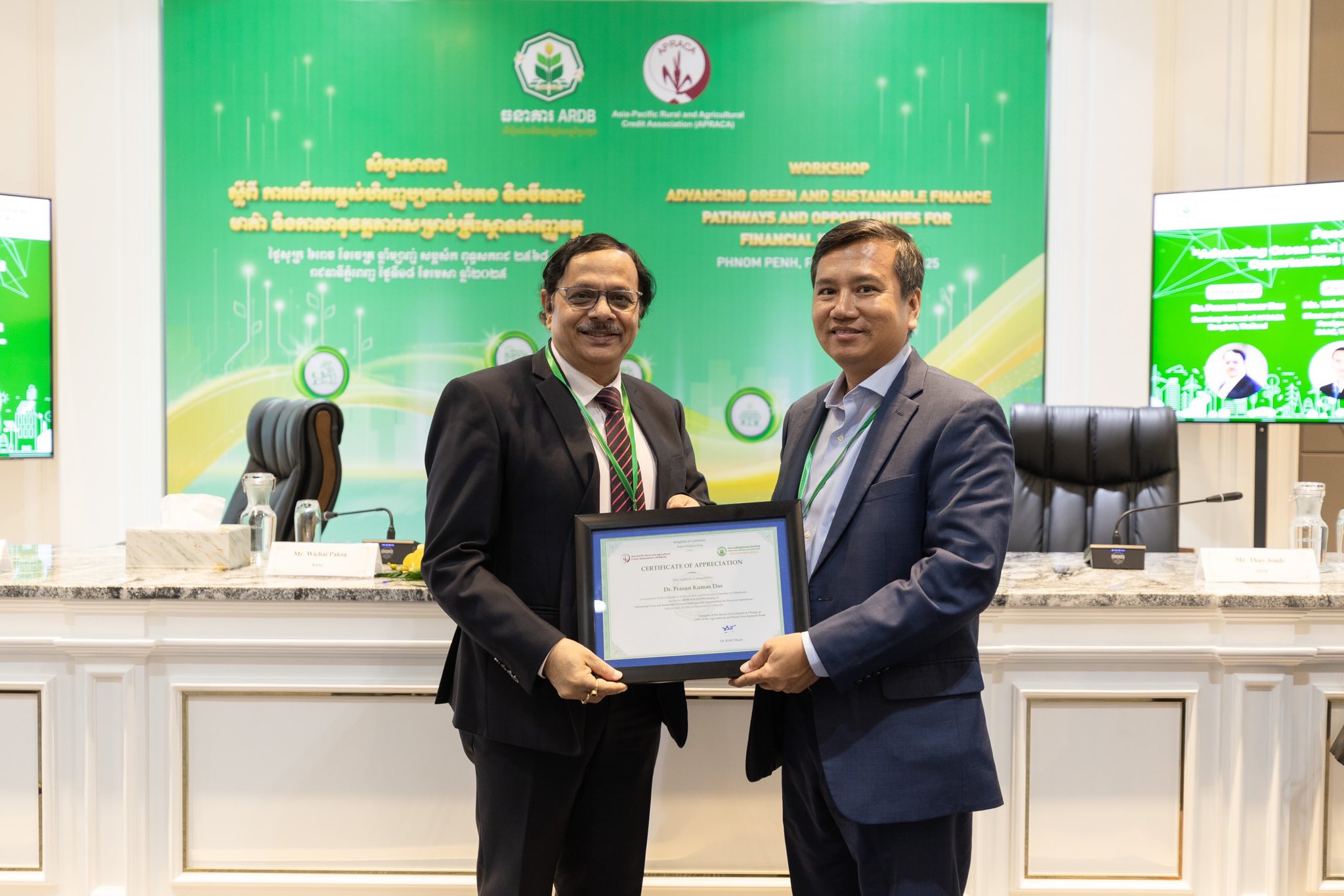 សម្រាប់ លោកបណ្ឌិត Prasun Kumar Das អគ្គលេខាធិការ APRACA ក៏បានបង្ហាញពីហិរញ្ញវត្ថុបៃតង និងនិរន្តរភាព បញ្ហាប្រឈមនៃការប្រែប្រួលអាកាសធាតុ ដែលបញ្ជាក់ពីការវិនិយោគបៃតងក៏ដូចជាឱកាសសម្រាប់ស្ថាប័នហិរញ្ញវត្ថុ រួមទាំងបទពិសោធន៍ពីគ្រឹះស្ថានហិរញ្ញវត្ថុអាកាសធាតុកម្ពុជា (CCFF) ក្រោមមូលនិធិអាកាសធាតុបៃតង (GCF) ។